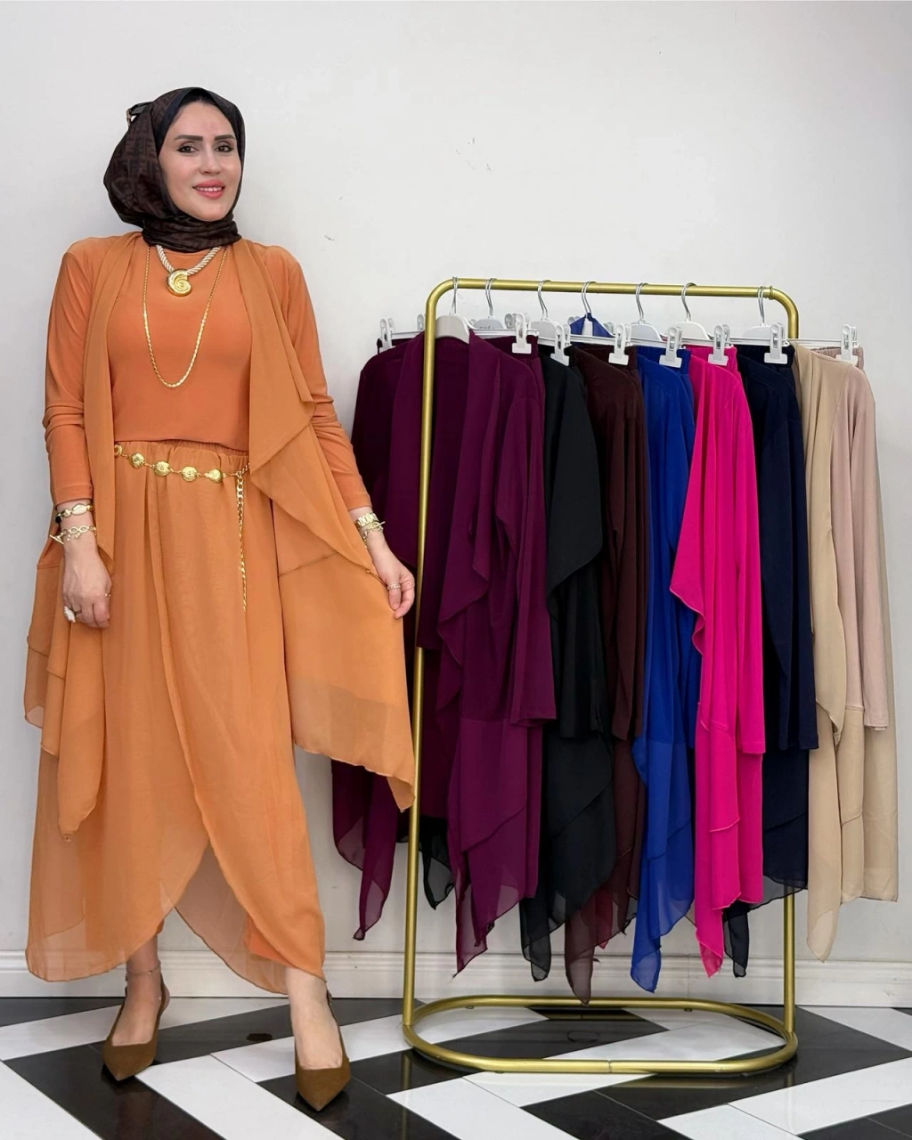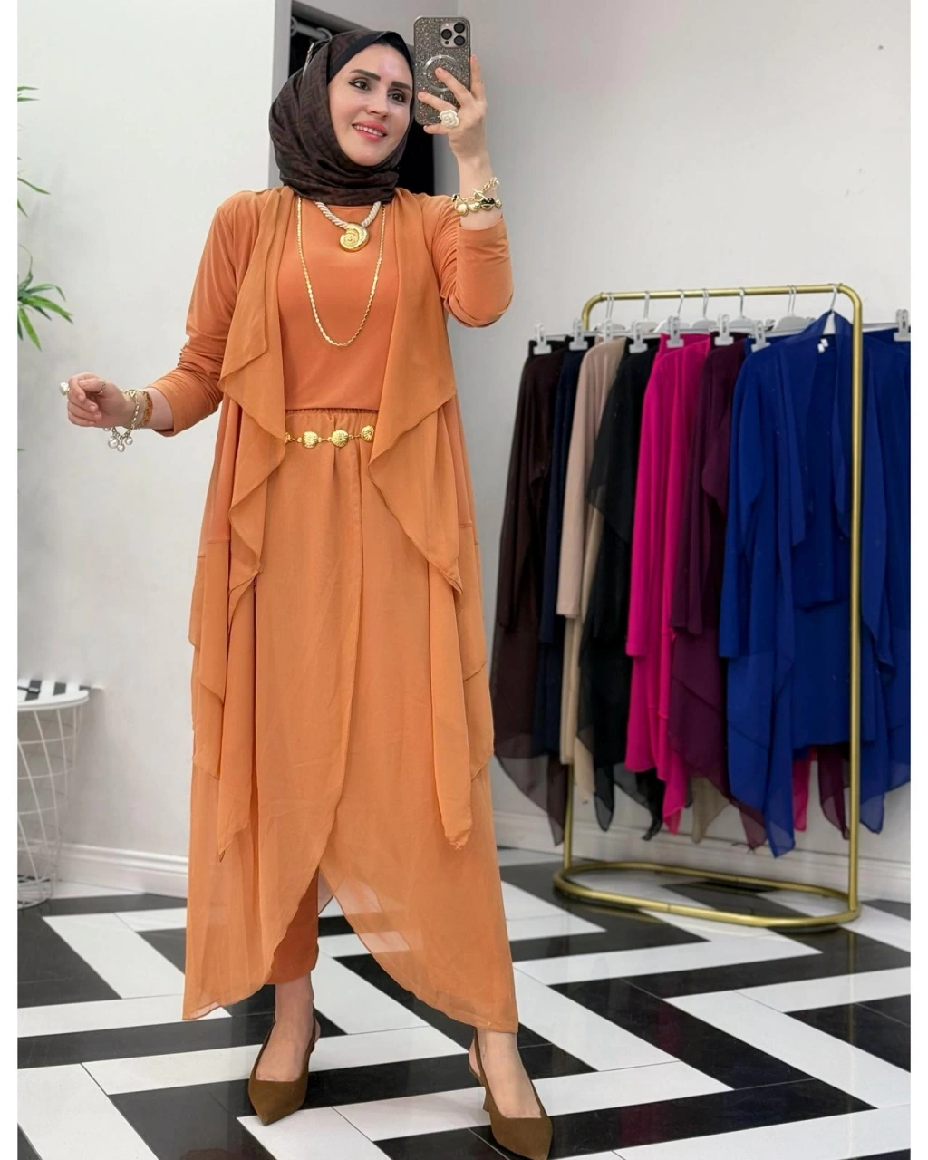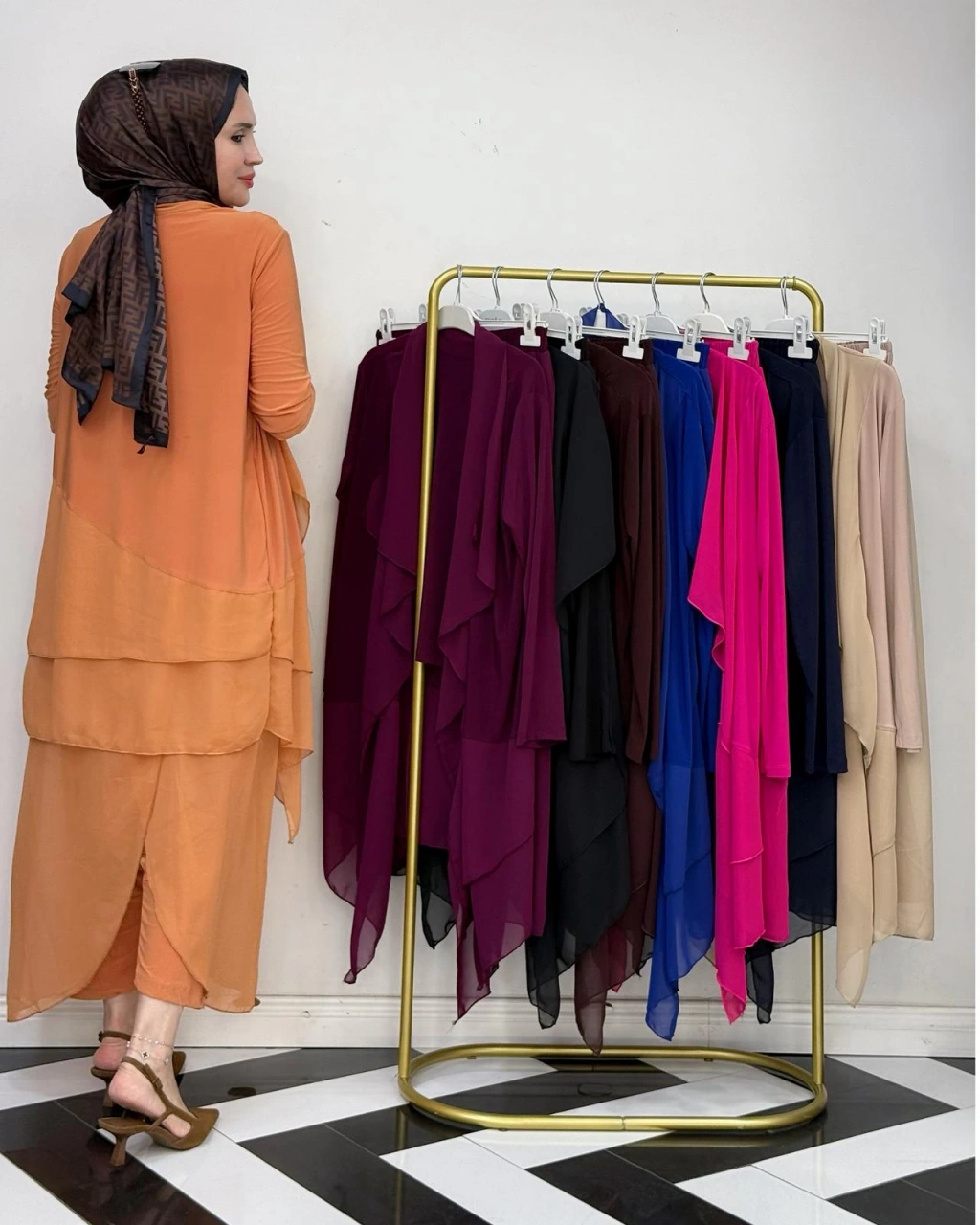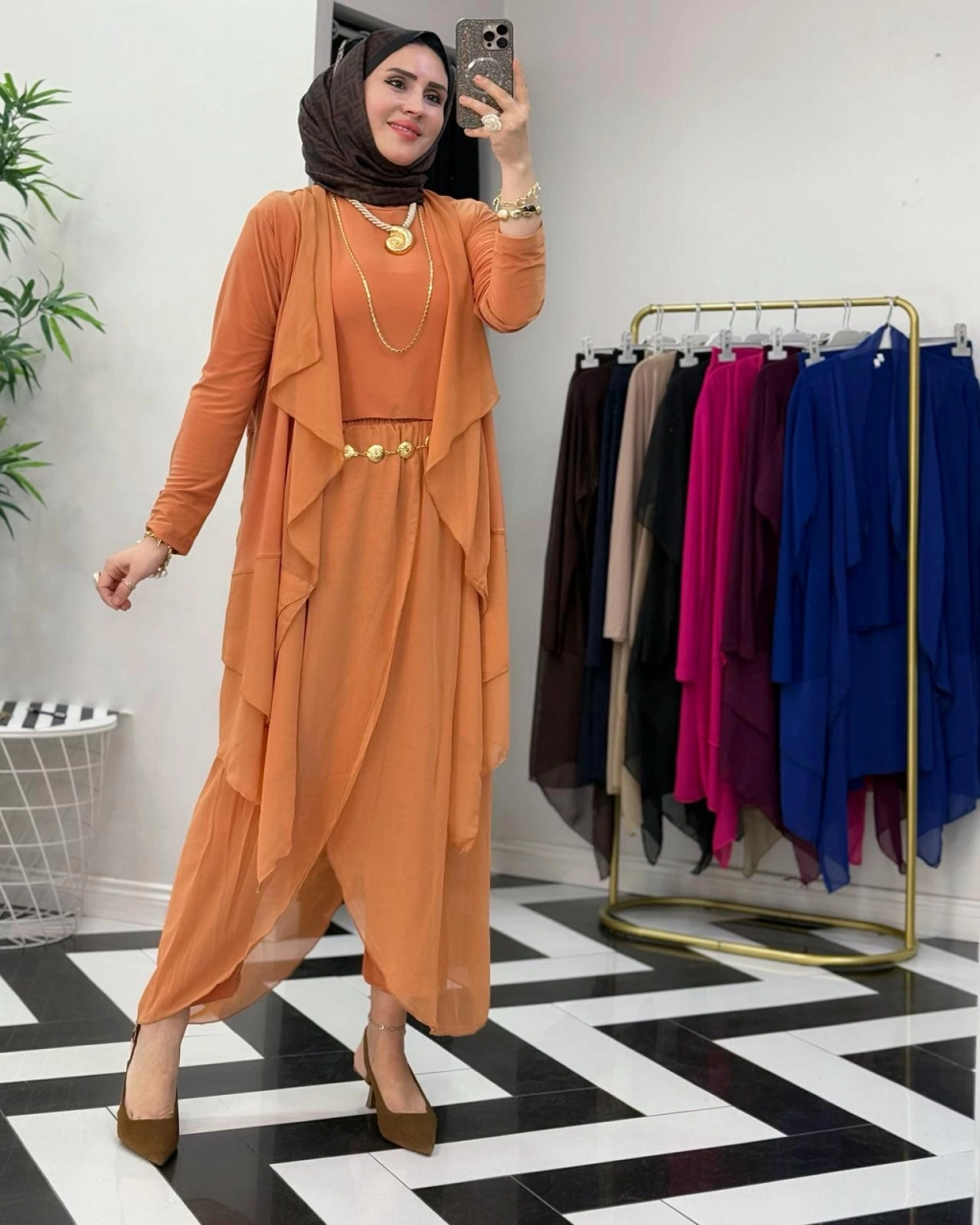 3’lü Takım Şık Tesettür Elbise – Candy Kumaş Somon