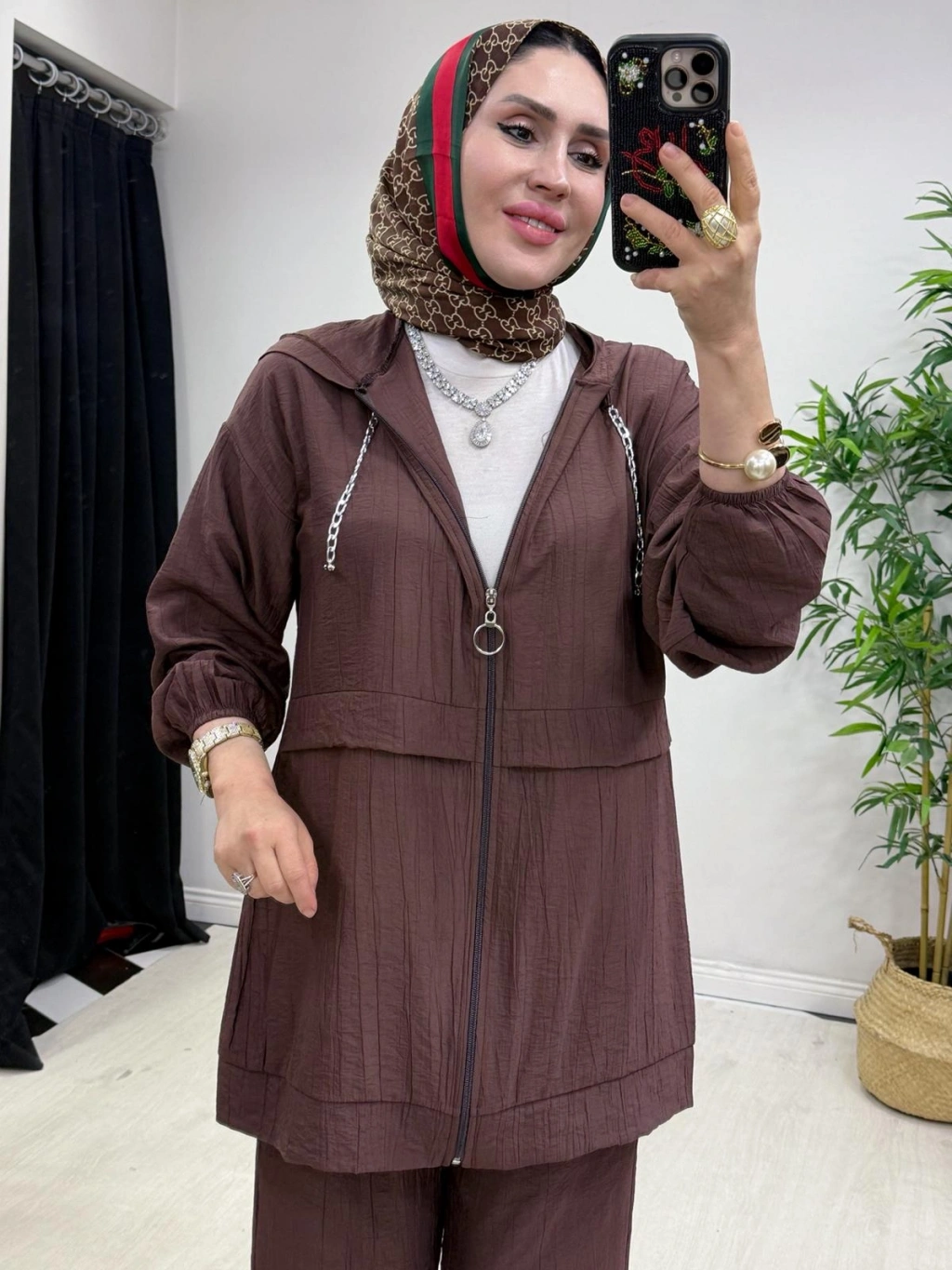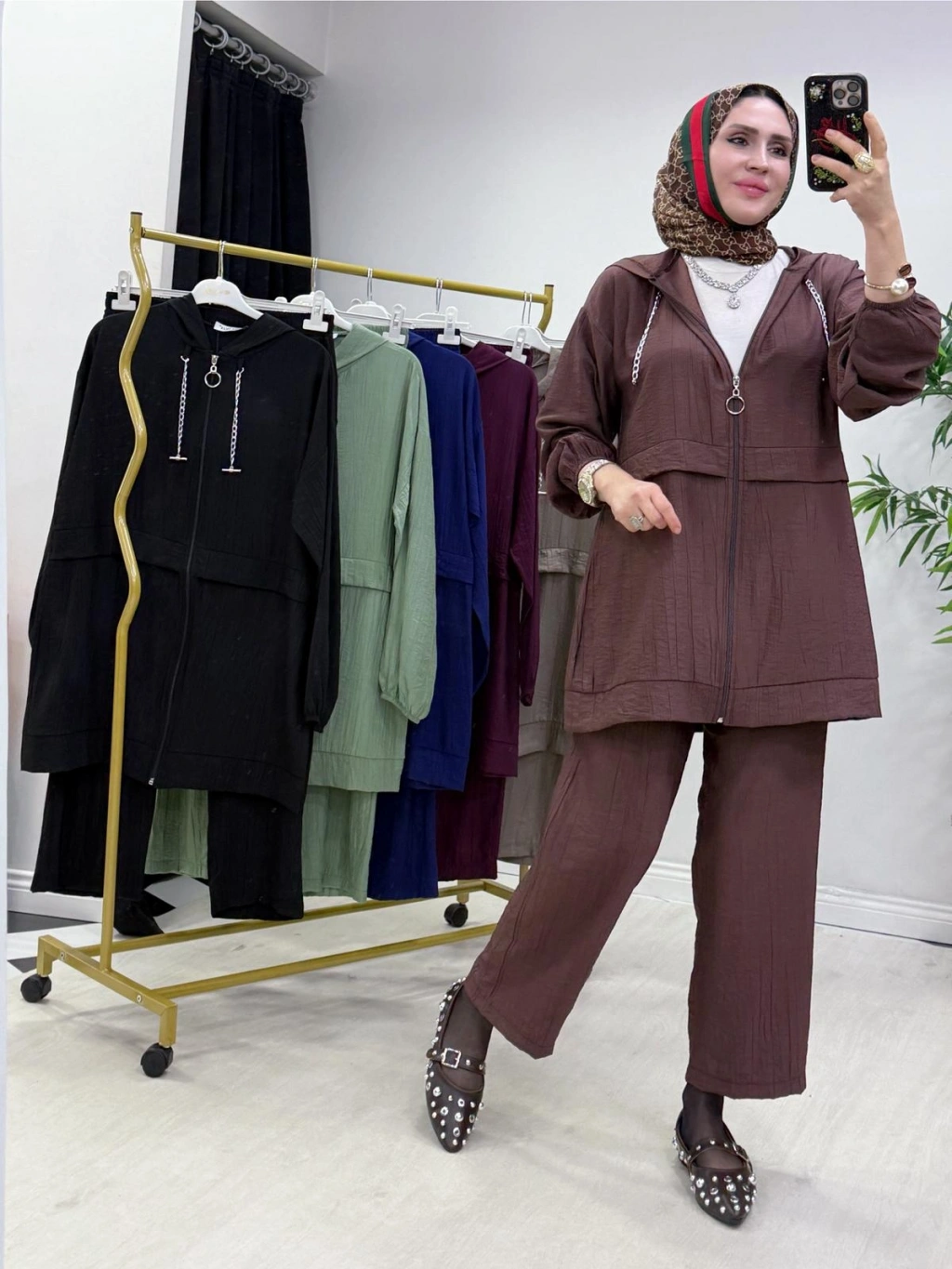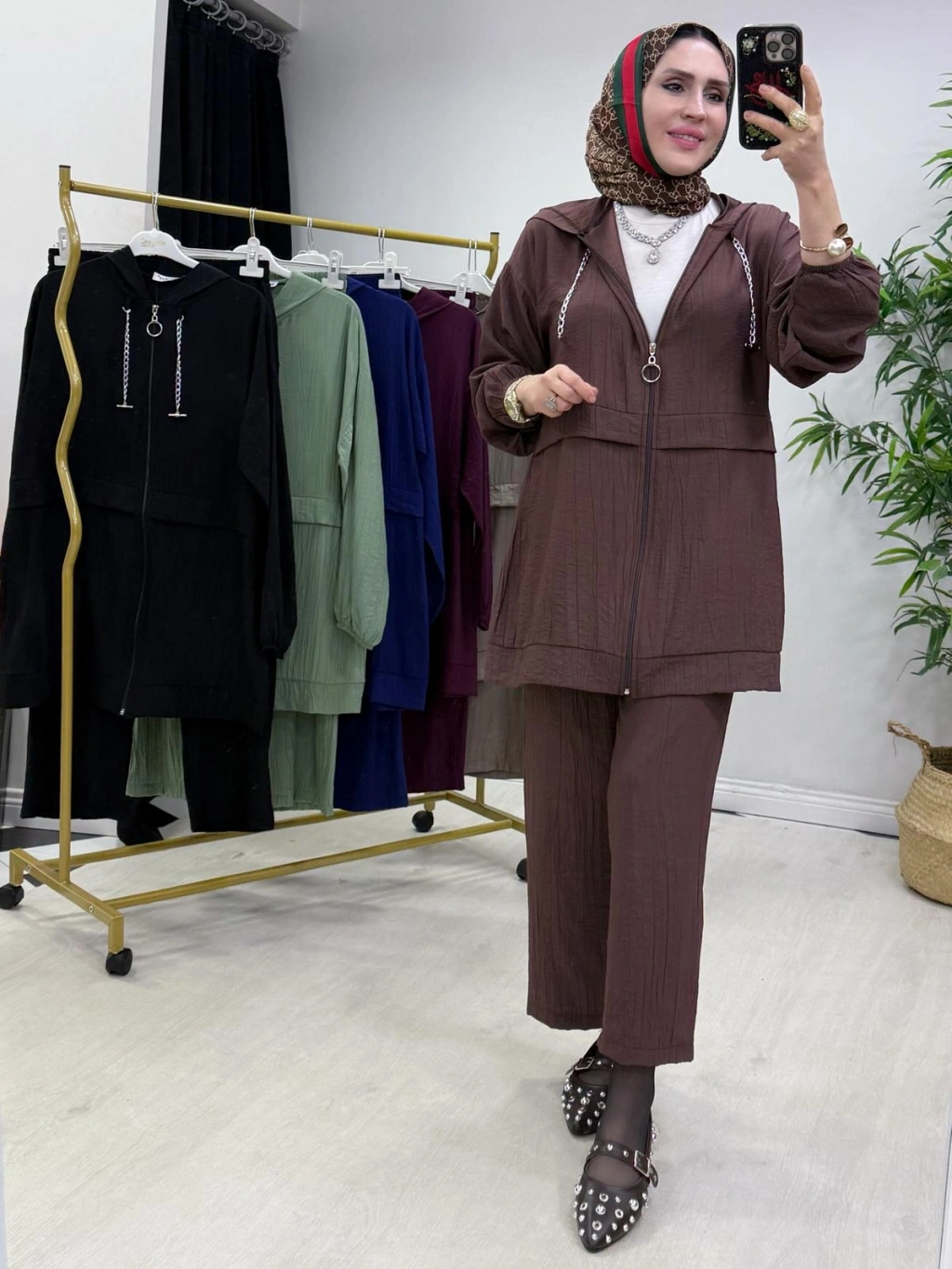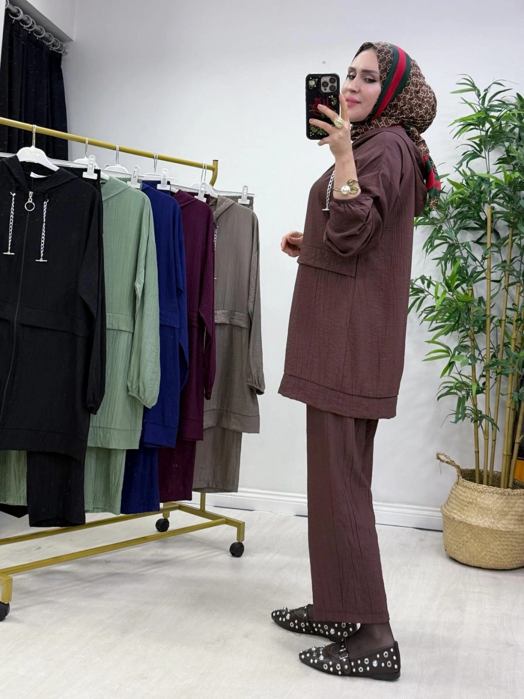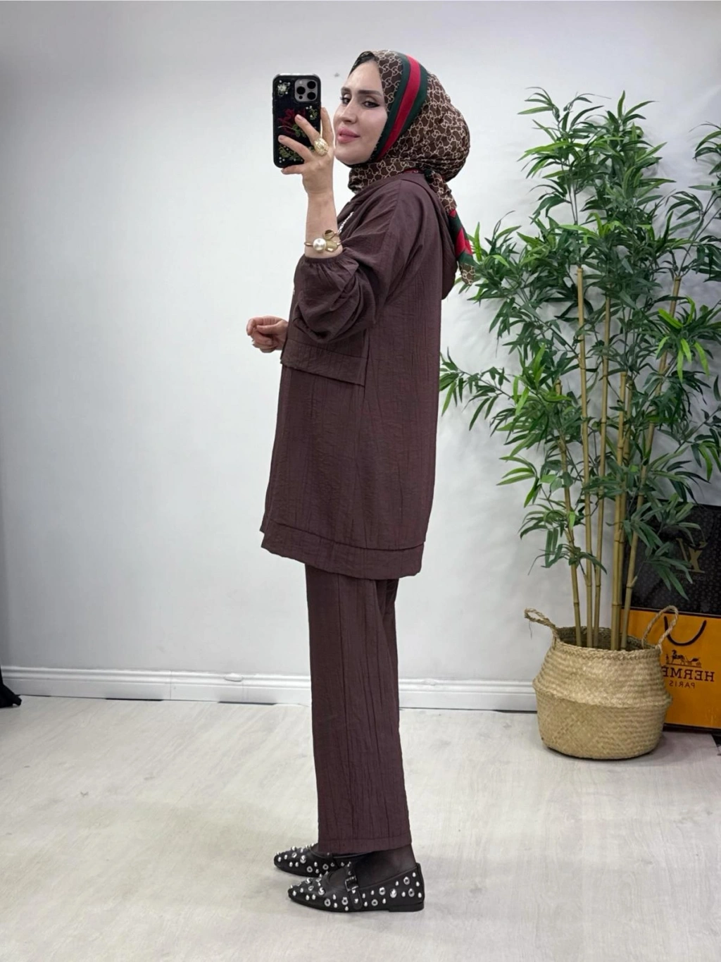 Ağaçkabuğu Kumaş Rahat Kalıp Takım Gül Kurusu