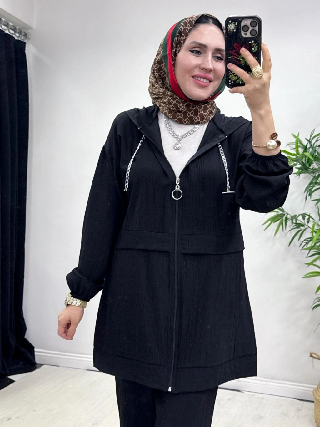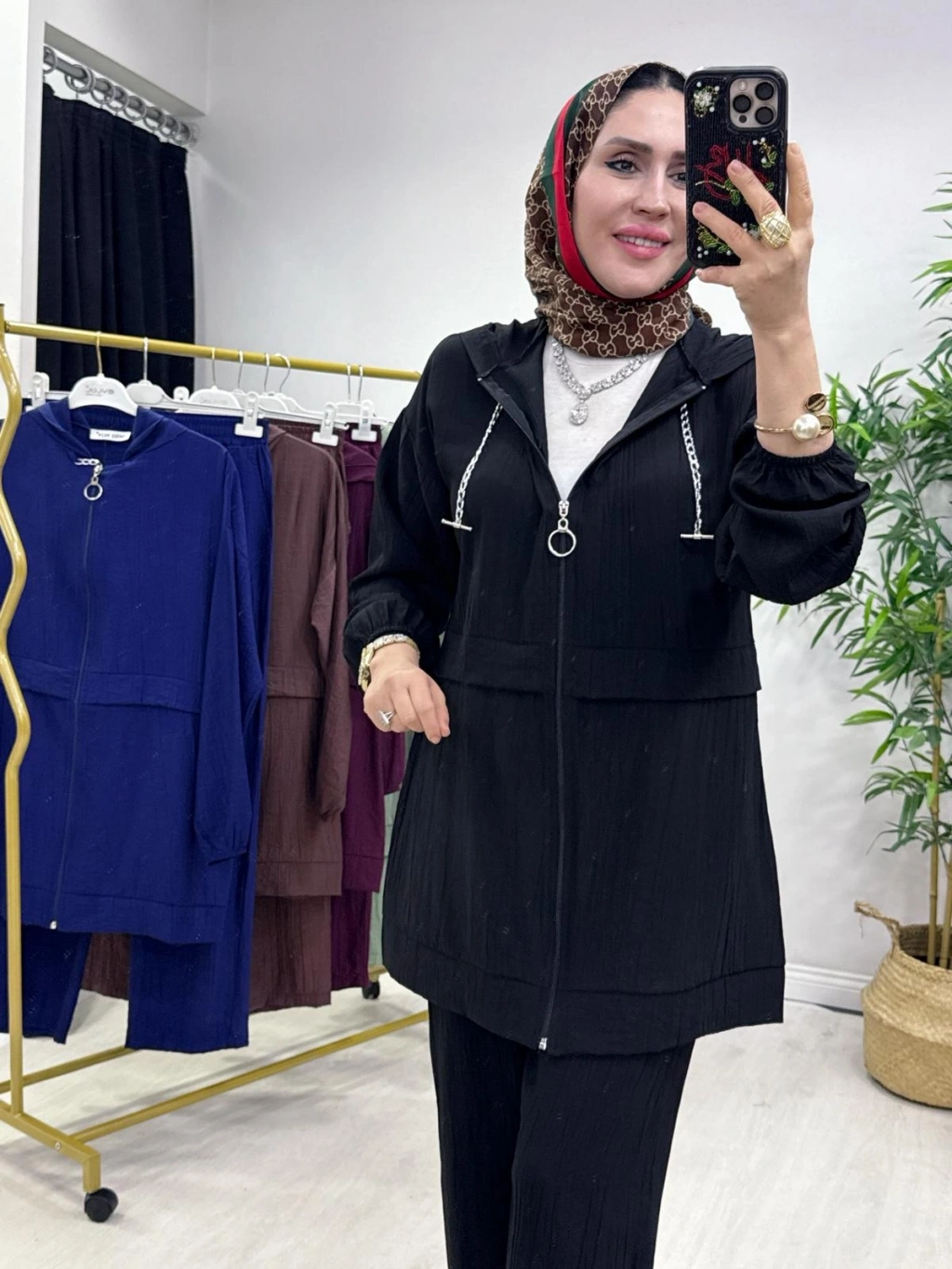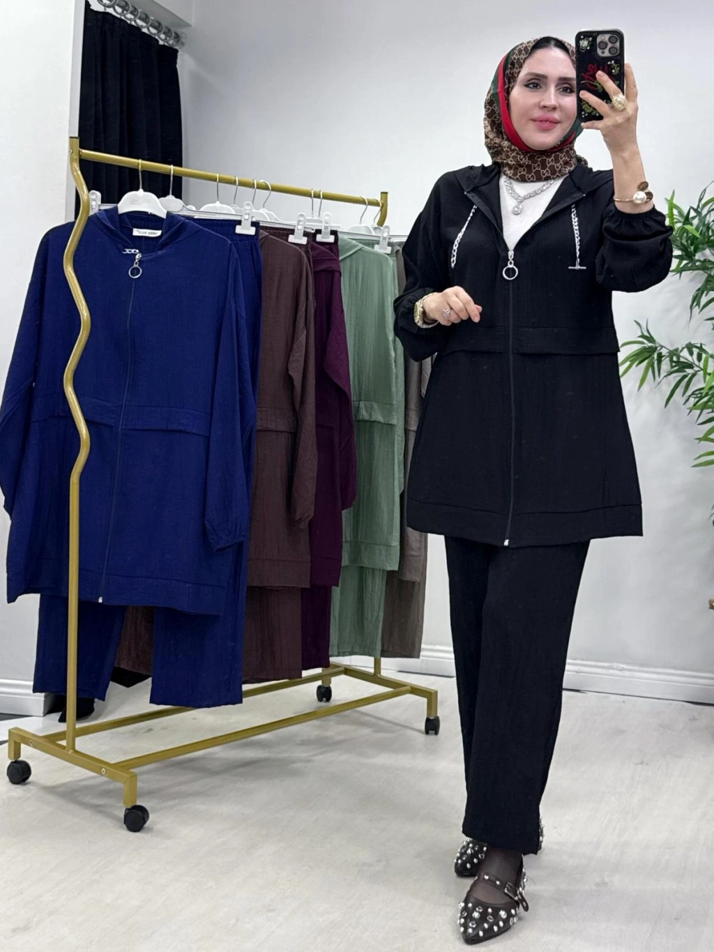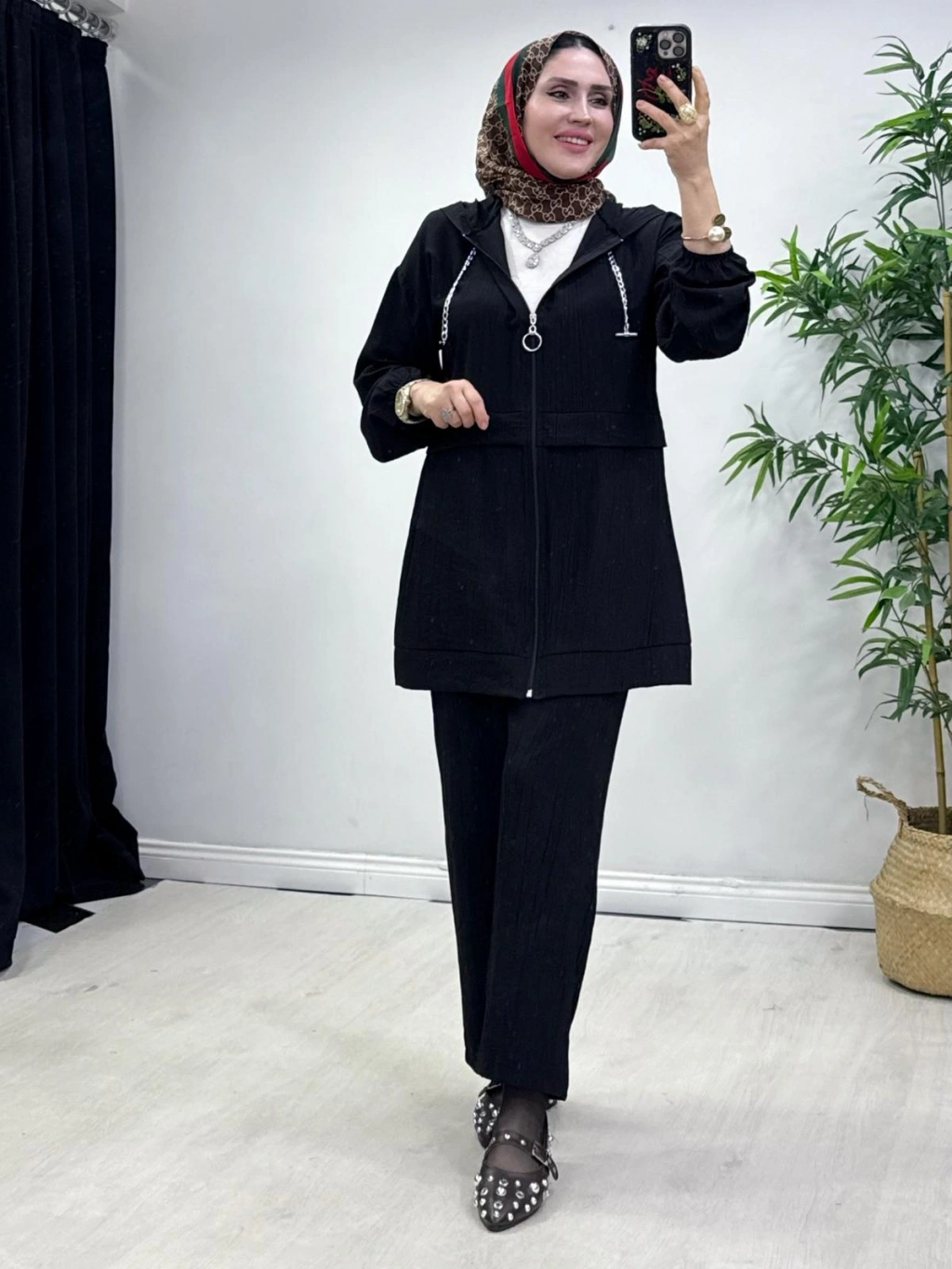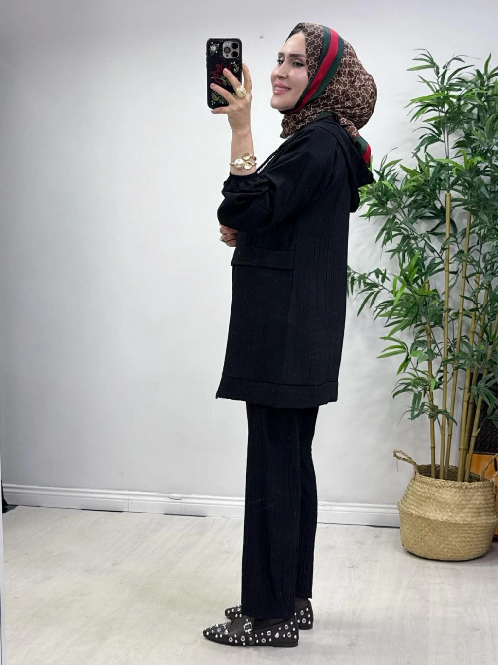 Ağaçkabuğu Kumaş Rahat Kalıp Takım Siyah