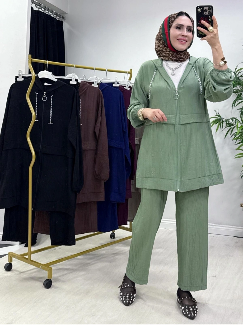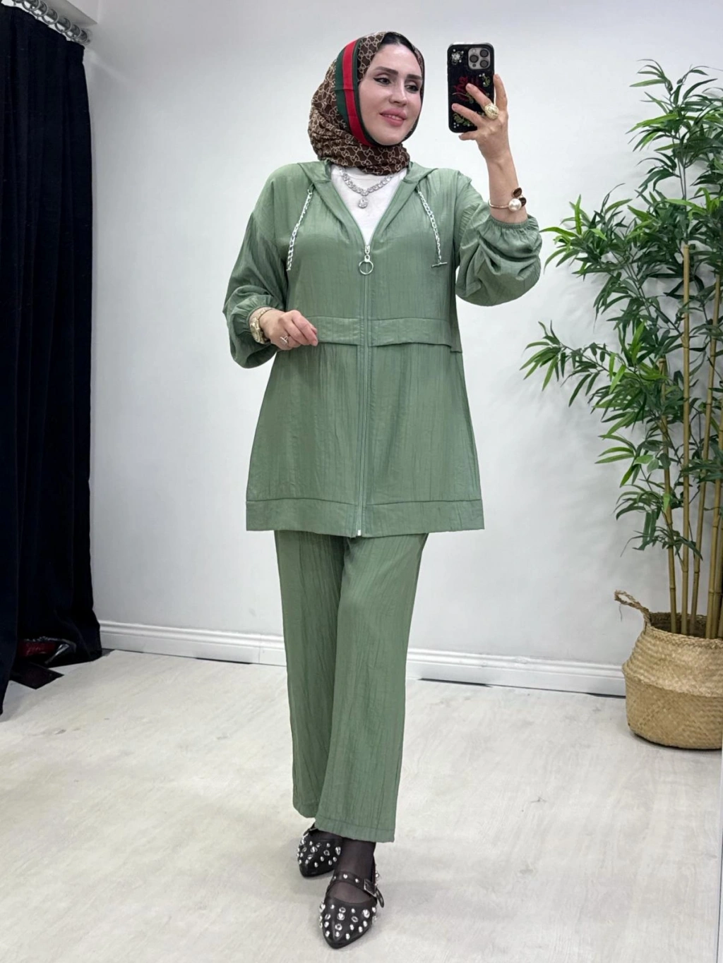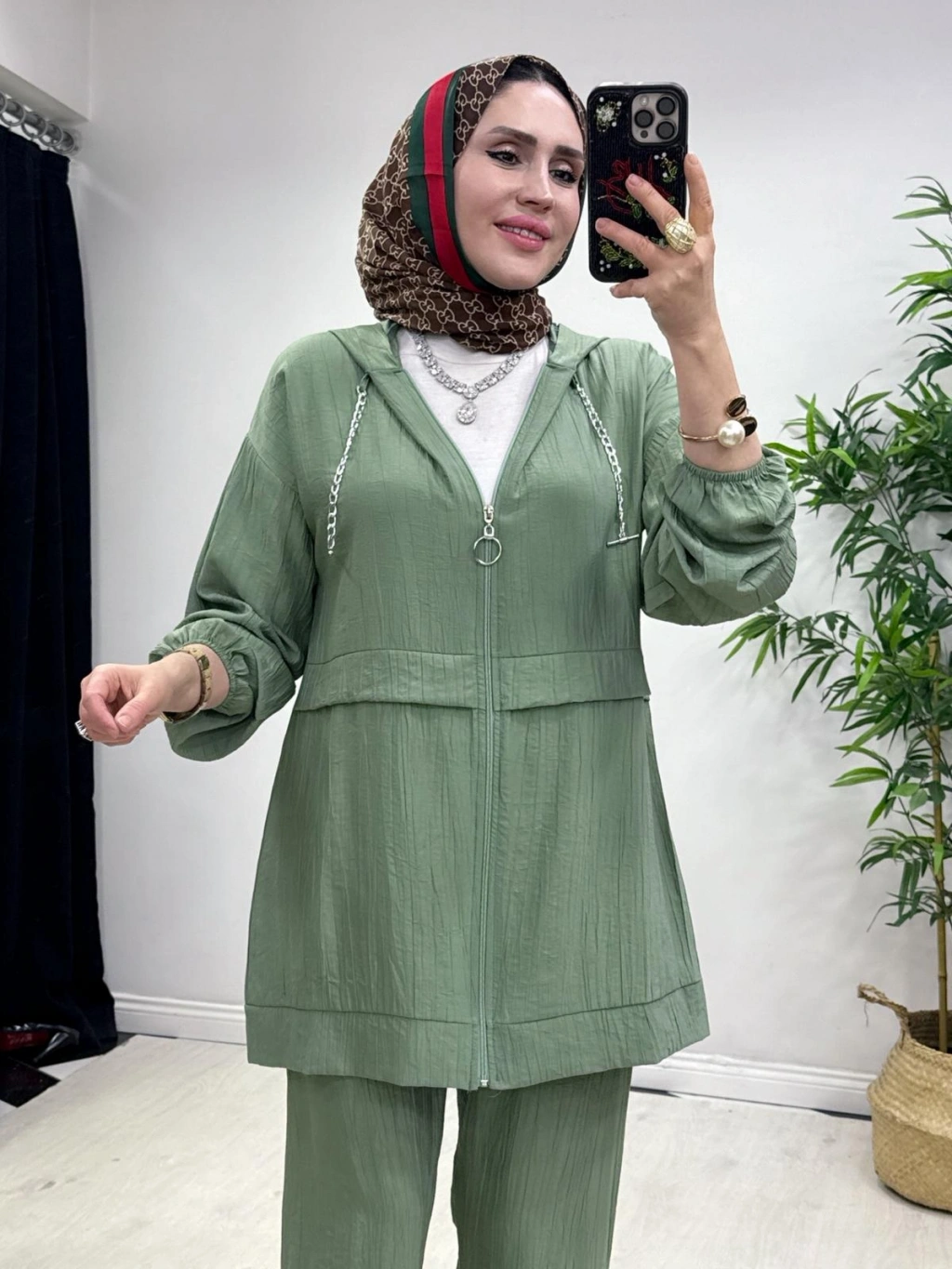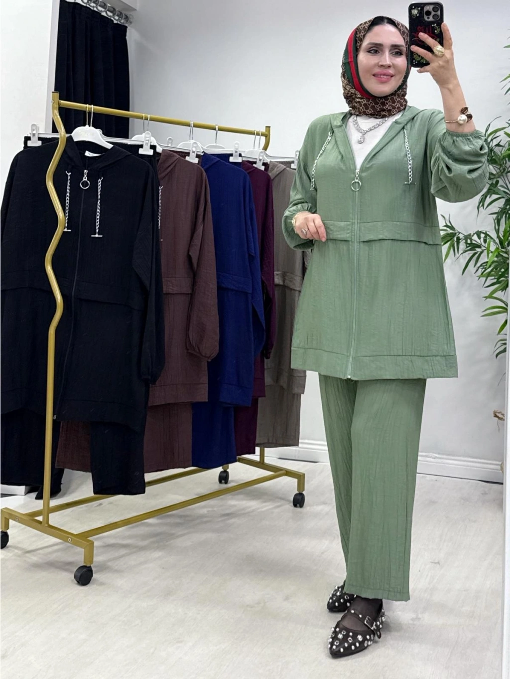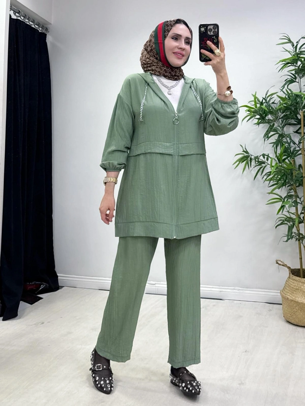 Ağaçkabuğu Kumaş Rahat Kalıp Takım Yeşil