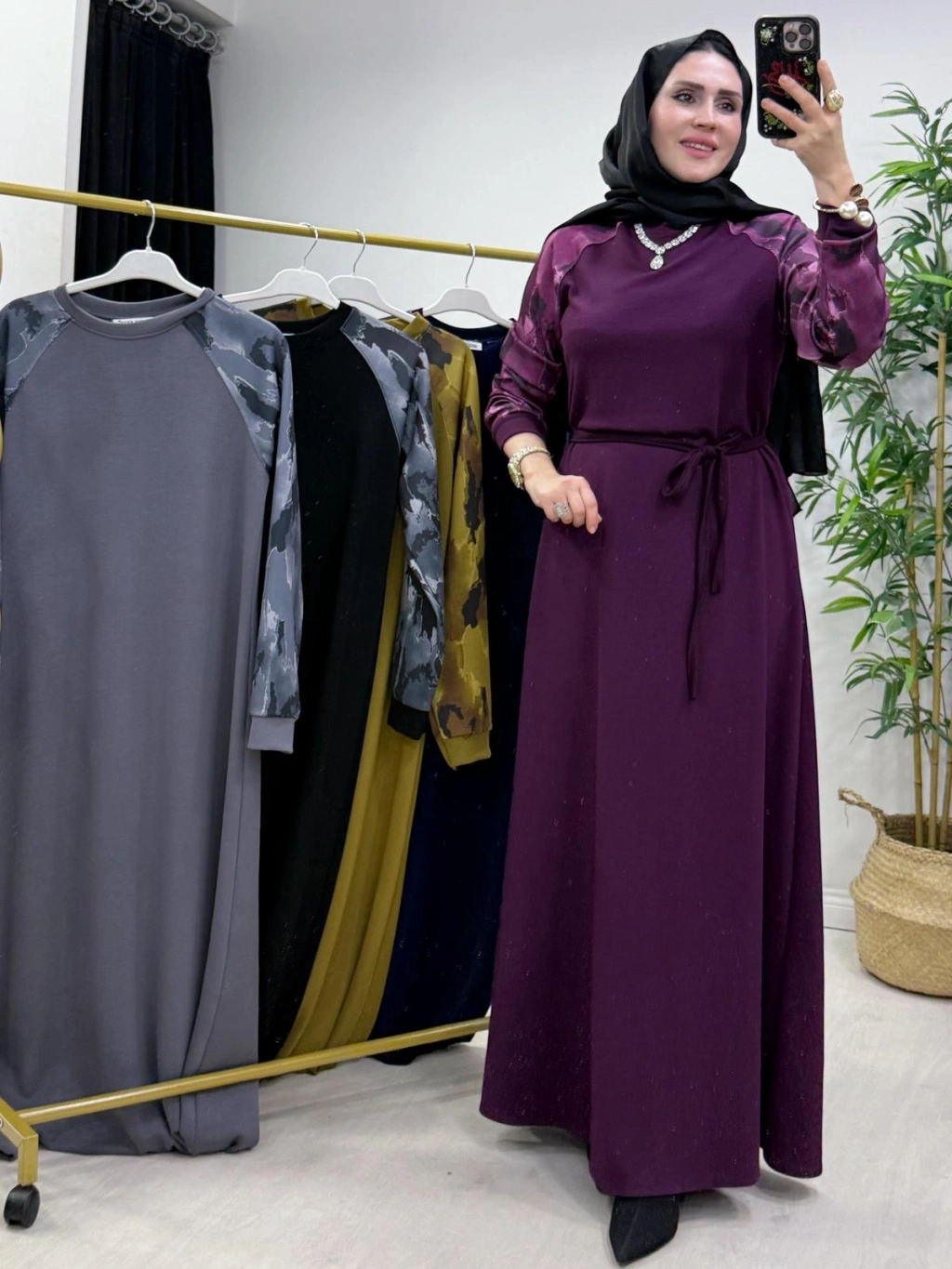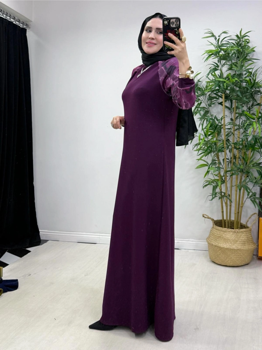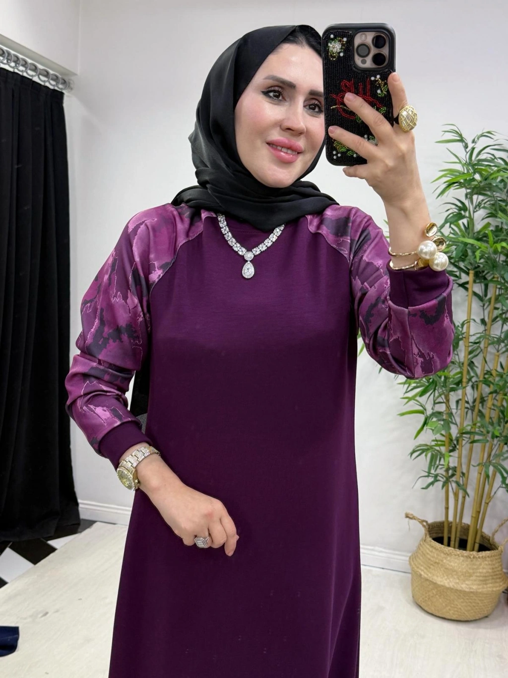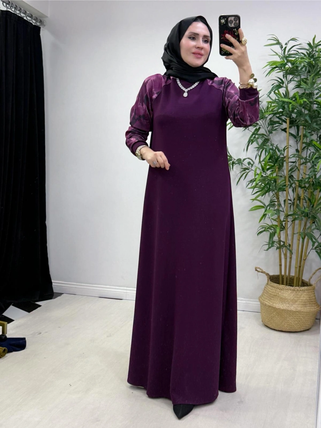 Batik Desenli Oysho Kumaş Elbise Mürdüm