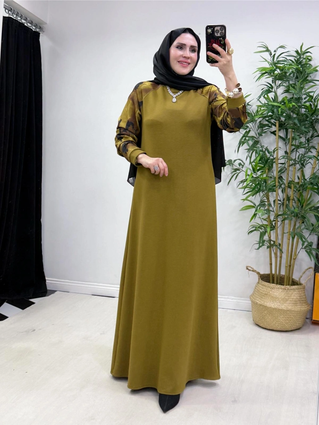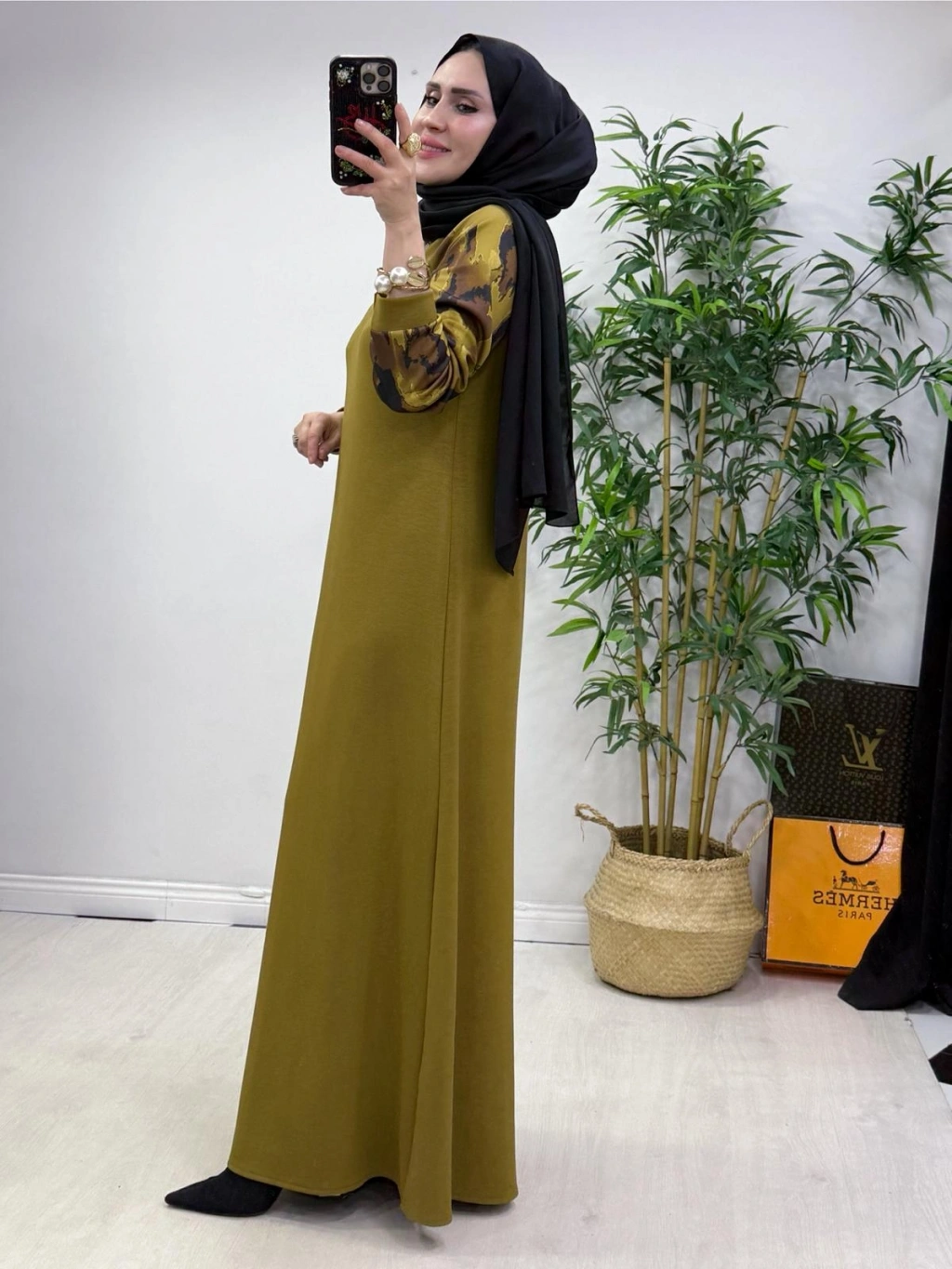 Batik Desenli Oysho Kumaş Elbise Yağ Yeşili