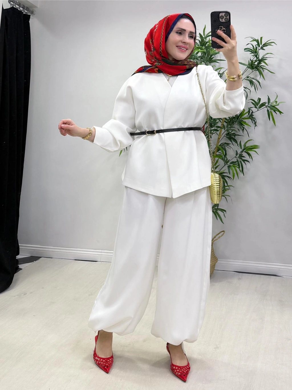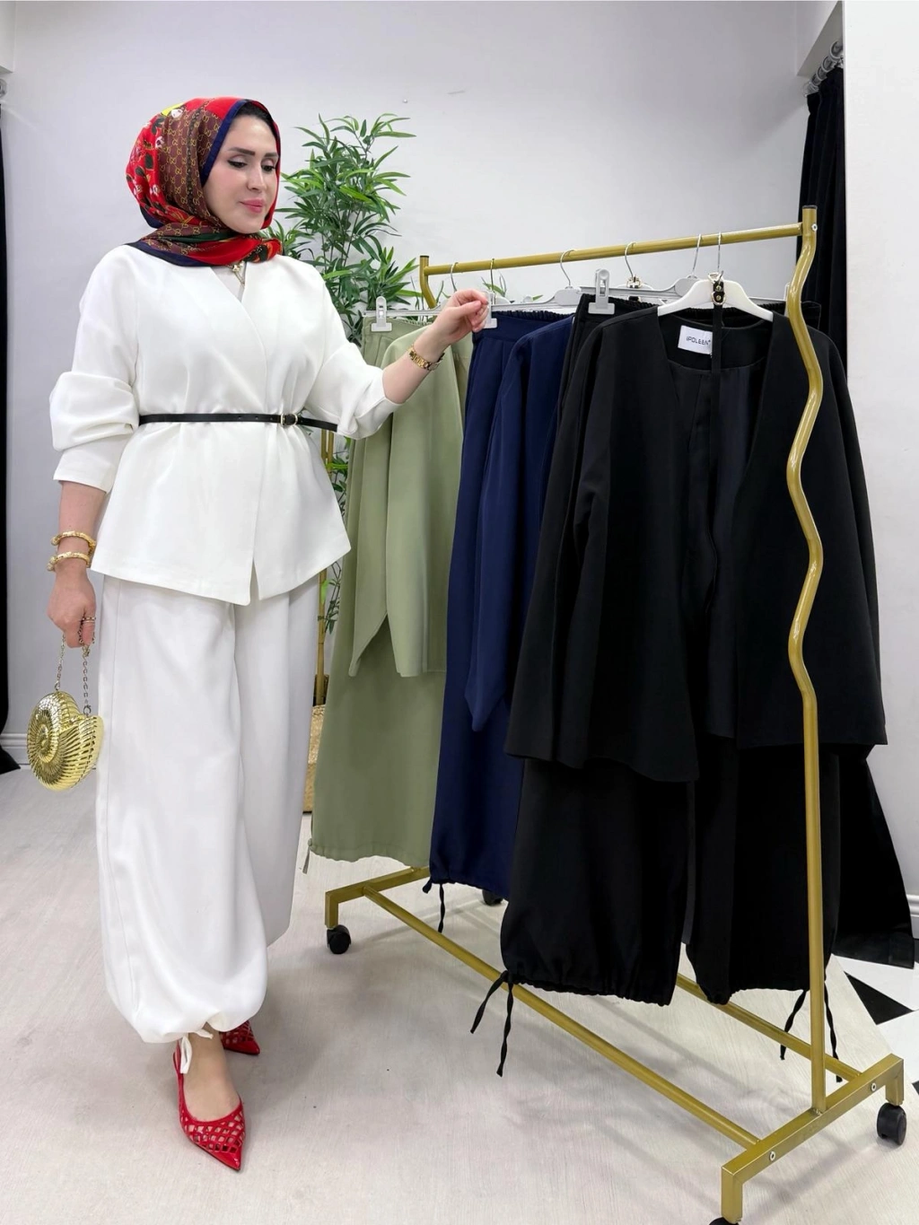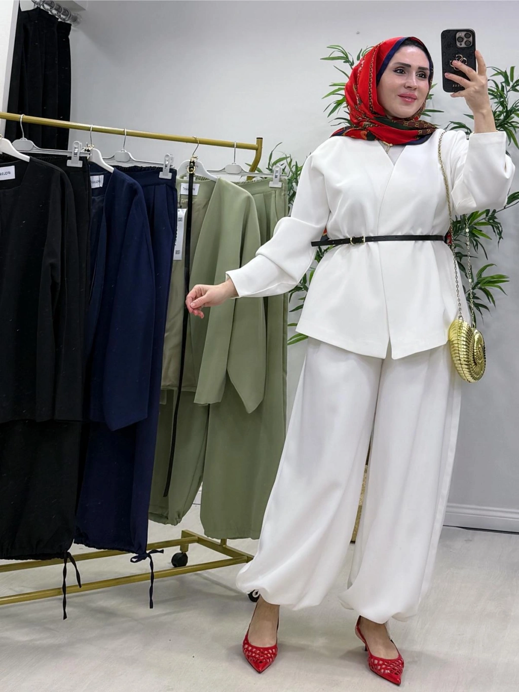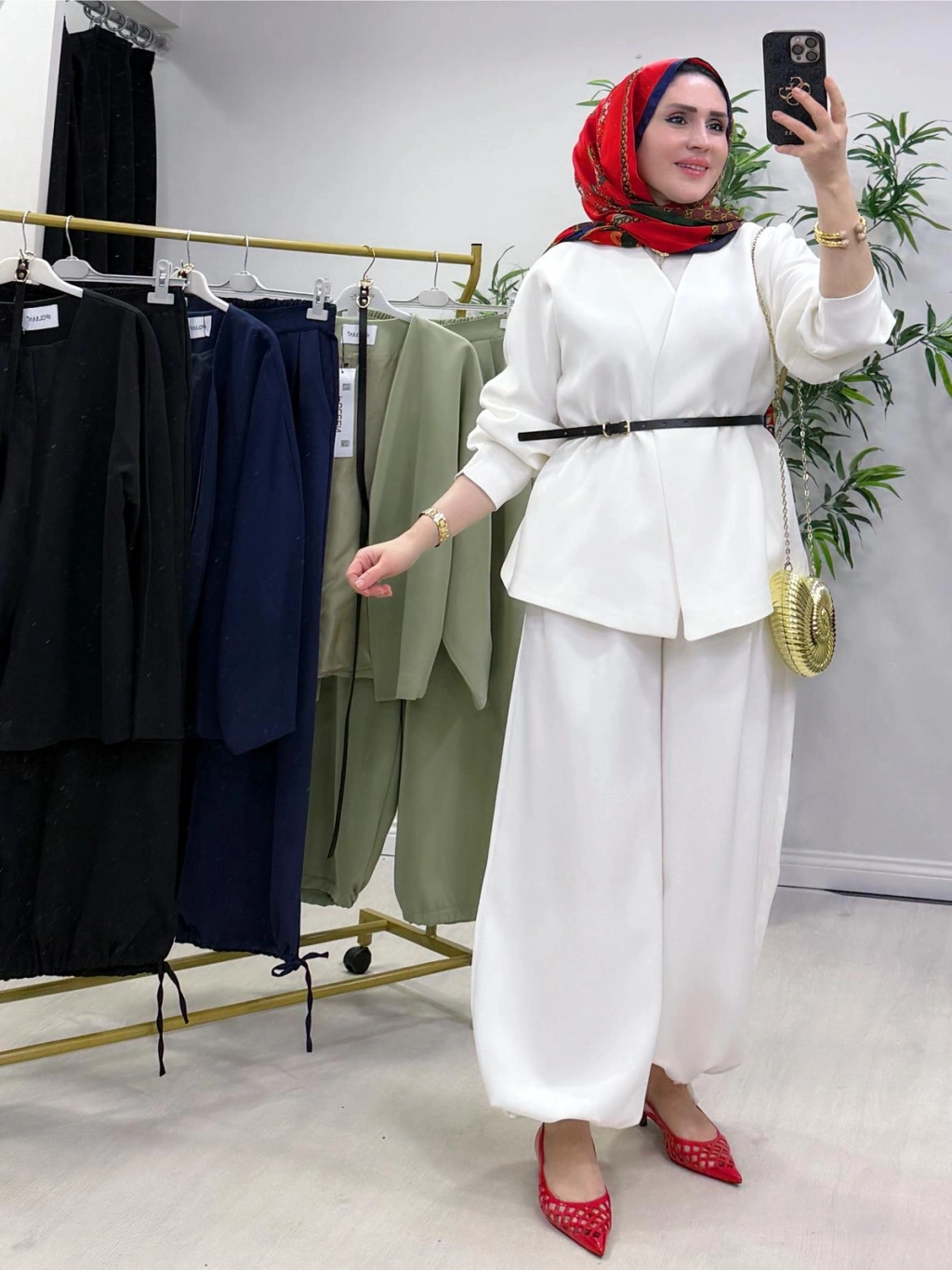 Yeni sezon ceketli şalvar takım rahat ve şık tasarımıyla günlük kullanıma uygundur. Astarlı ceketi ve beli lastikli pantolonu sayesinde gün boyu konfor sağlar.