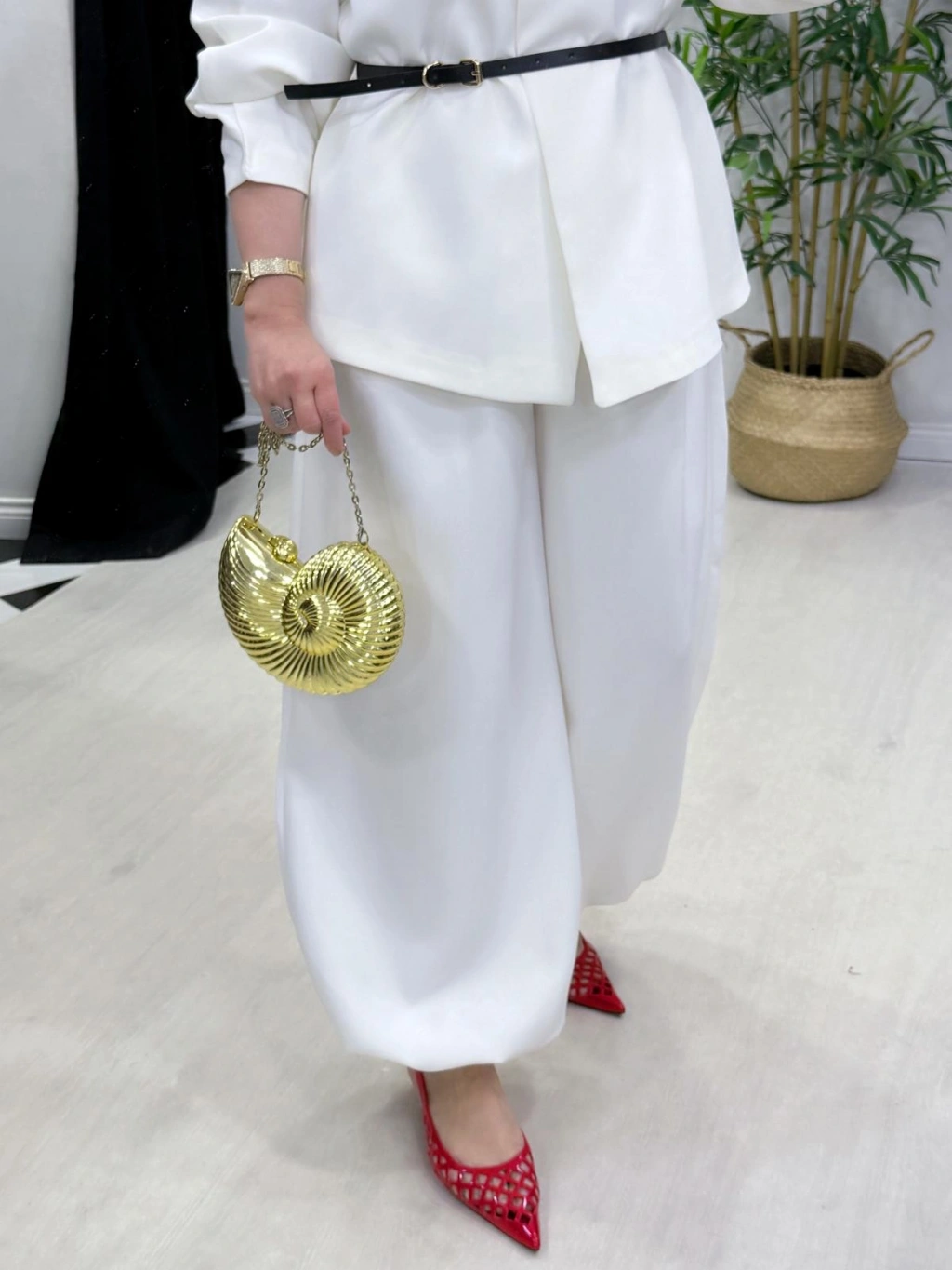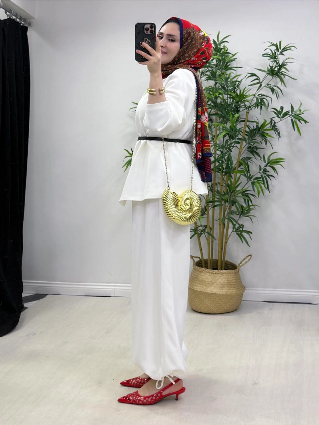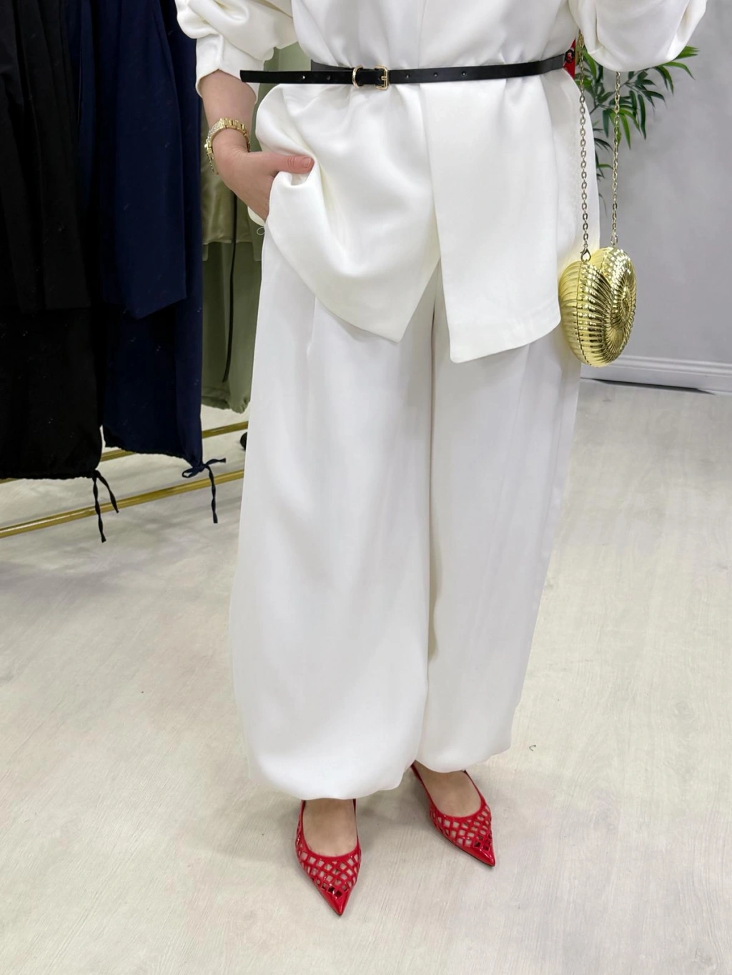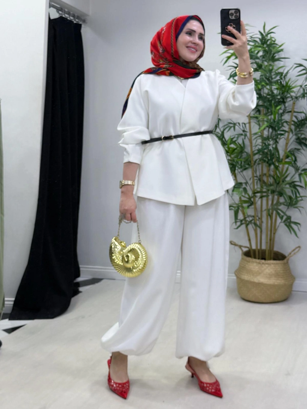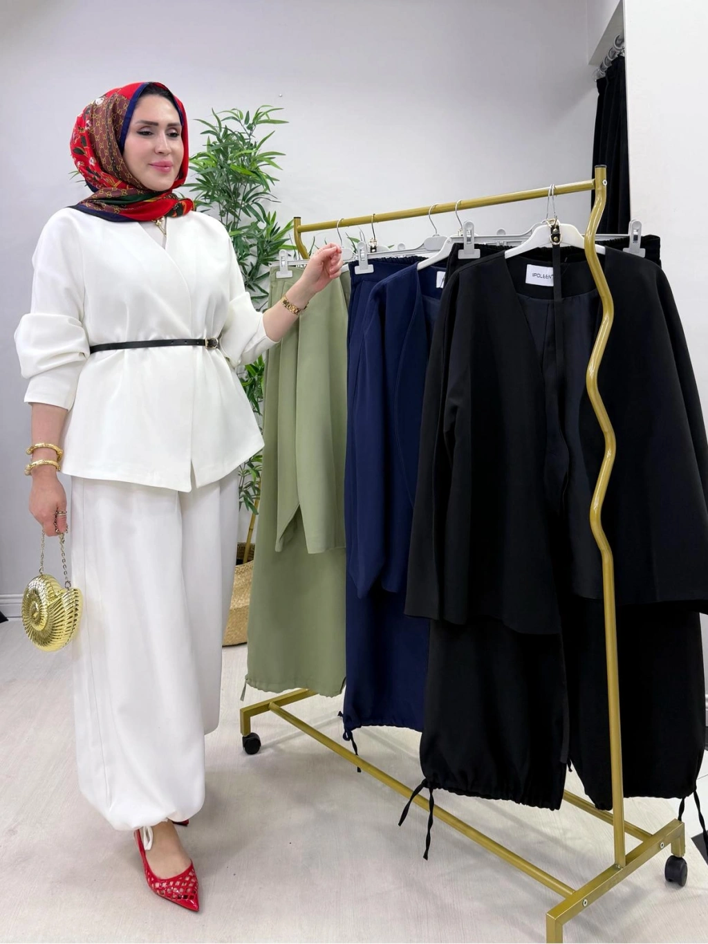 Yeni sezon ceketli şalvar takım rahat ve şık tasarımıyla günlük kullanıma uygundur. Astarlı ceketi ve beli lastikli pantolonu sayesinde gün boyu konfor sağlar.