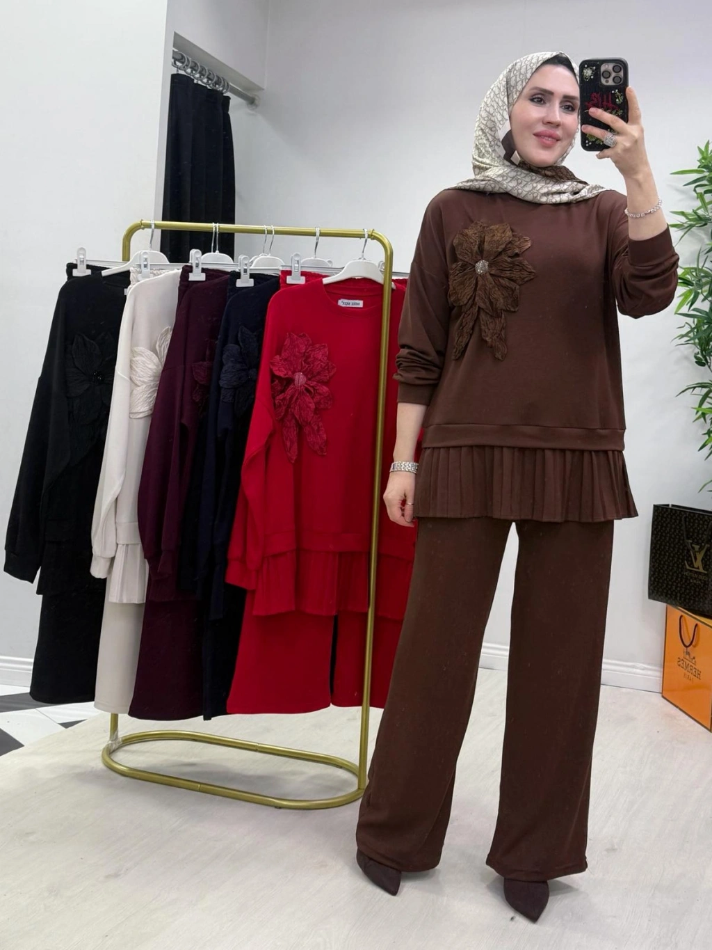 Gül broş detaylı şık takım