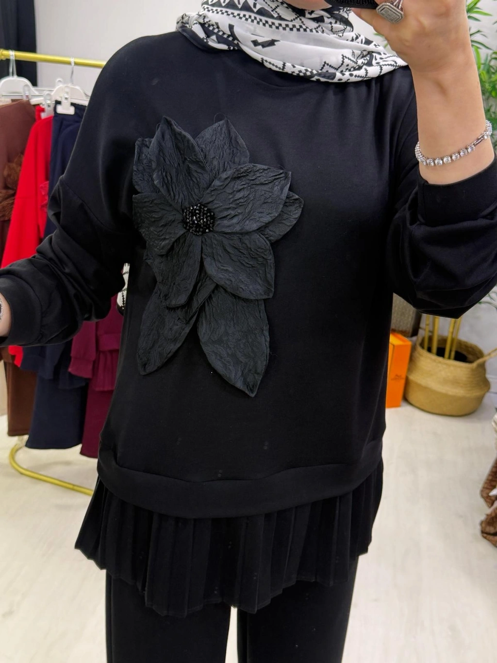 Gül Broş Detaylı Oysho Kumaş Takım Siyah