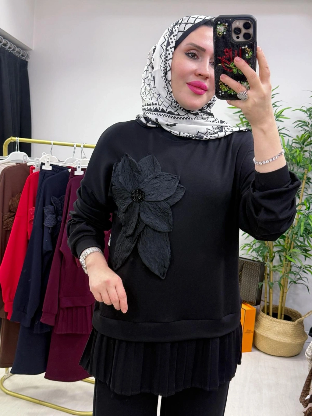 Gül broş detaylı şık takım