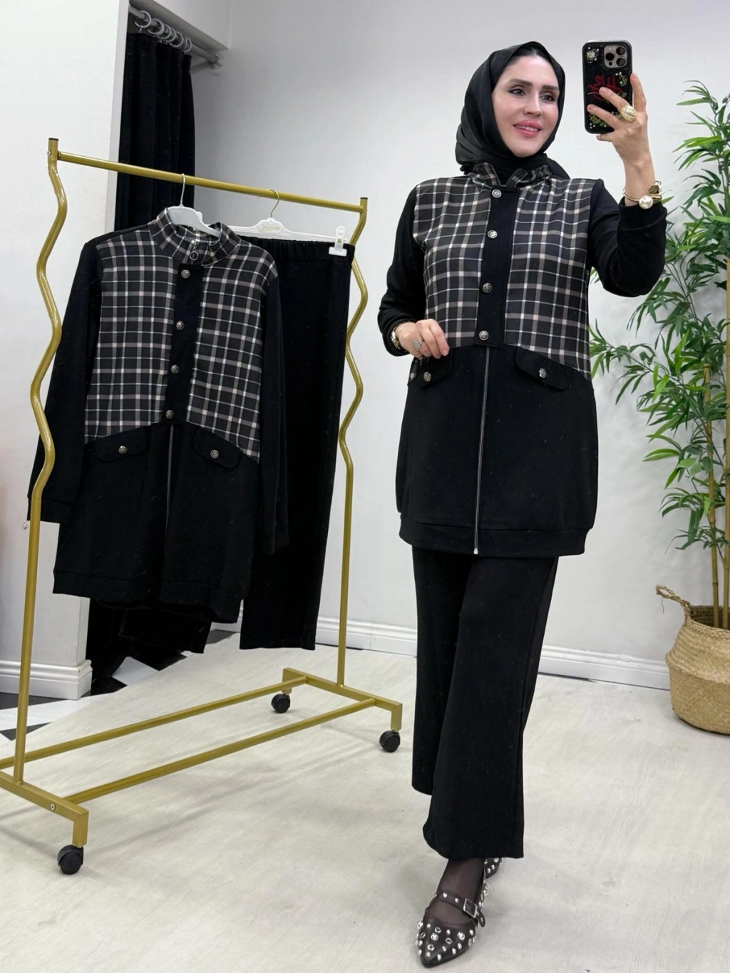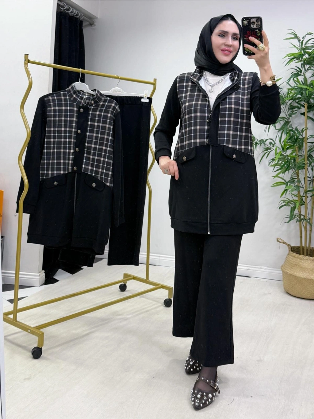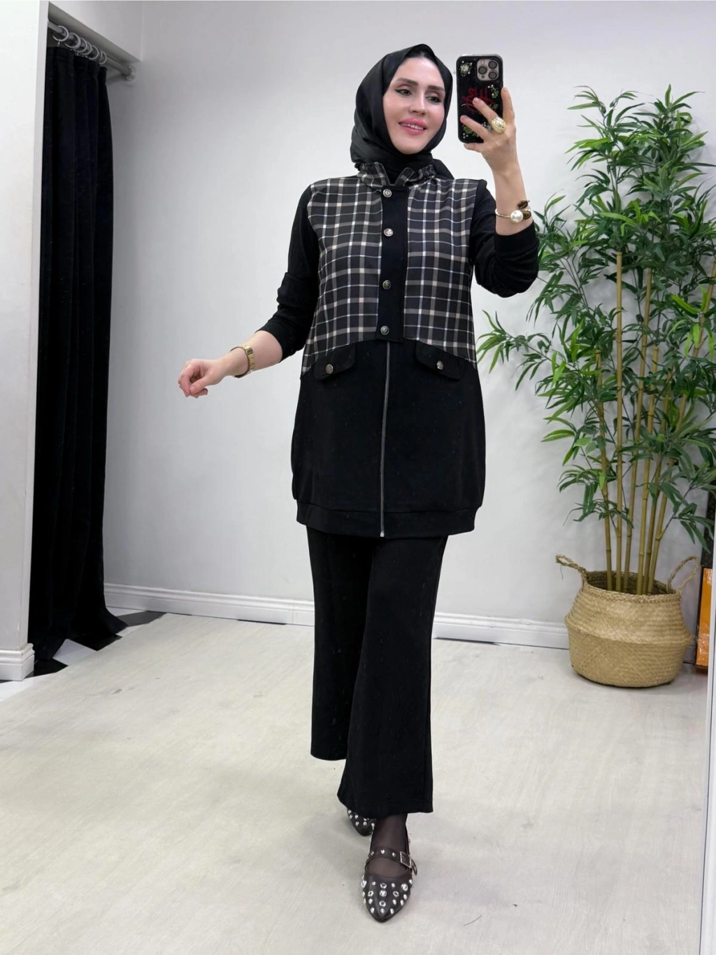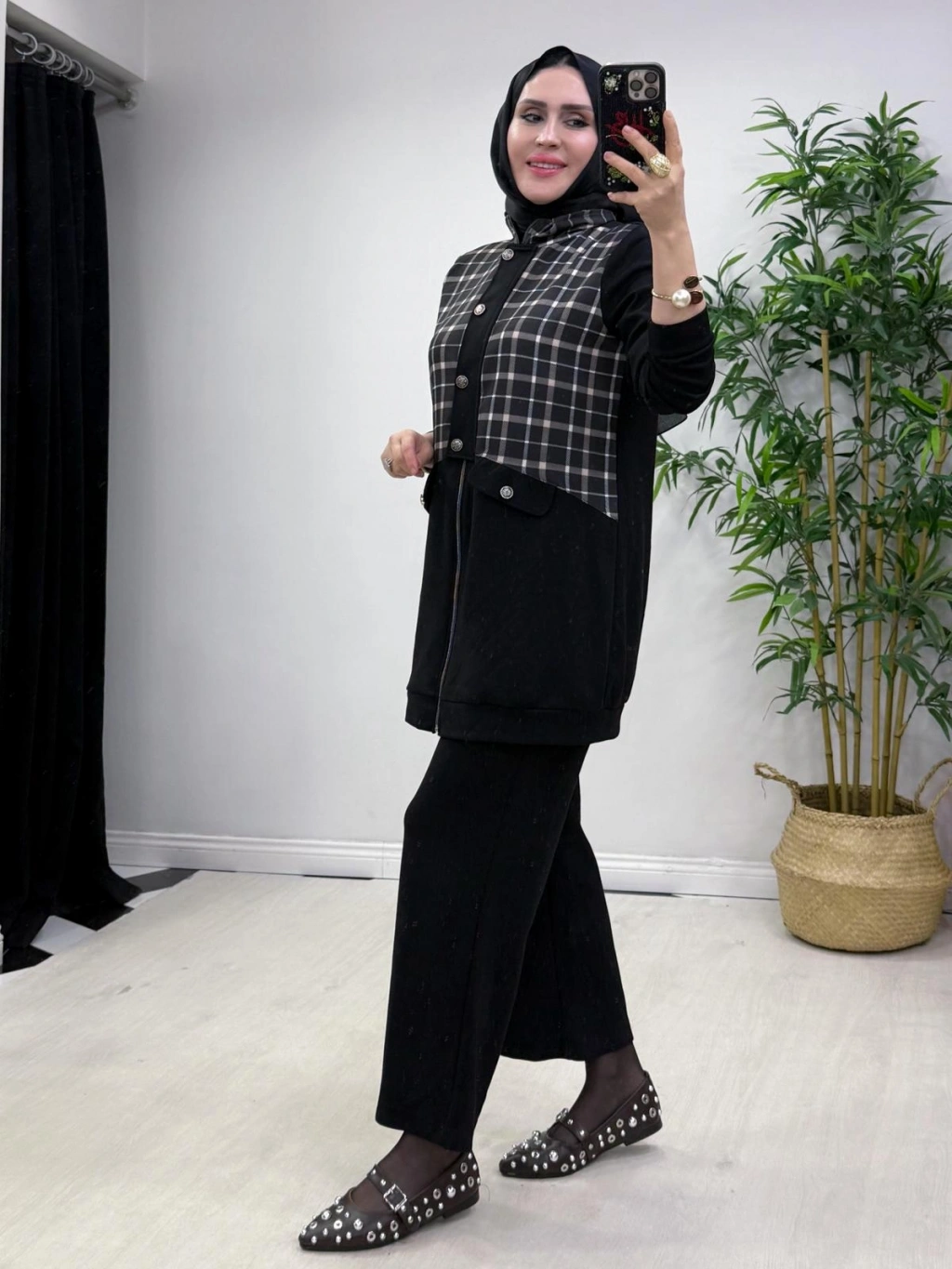 38-40-42-44 beden seçenekleri Üst boy: 85 cm Pantolon boy: 100 cm Beli lastikli pantolon Oysho kumaş Tek renk: Siyah