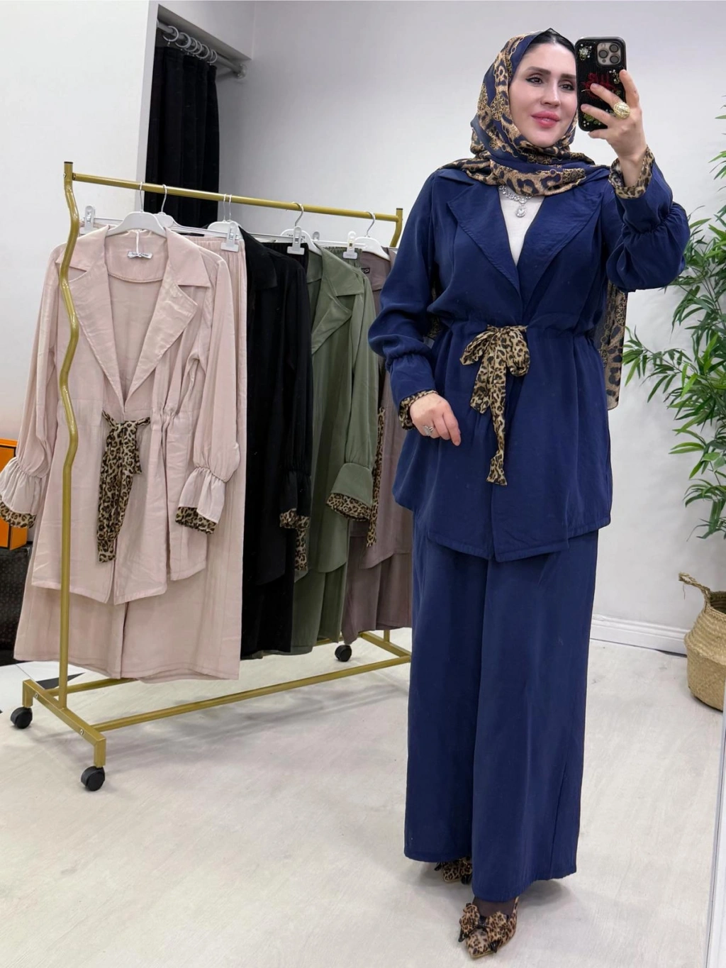 Kurdele Detaylı Modal Takım Haki Yeşil