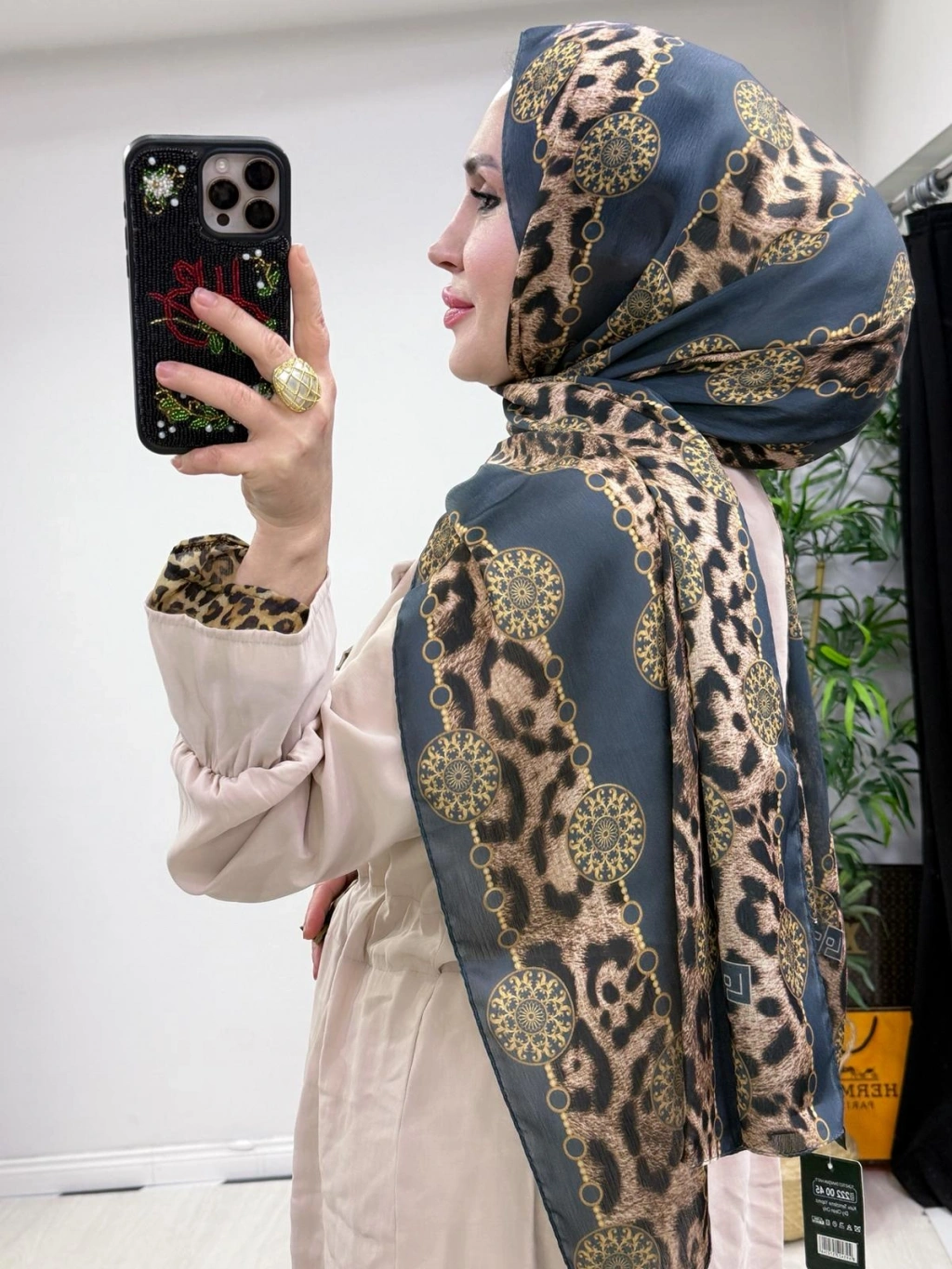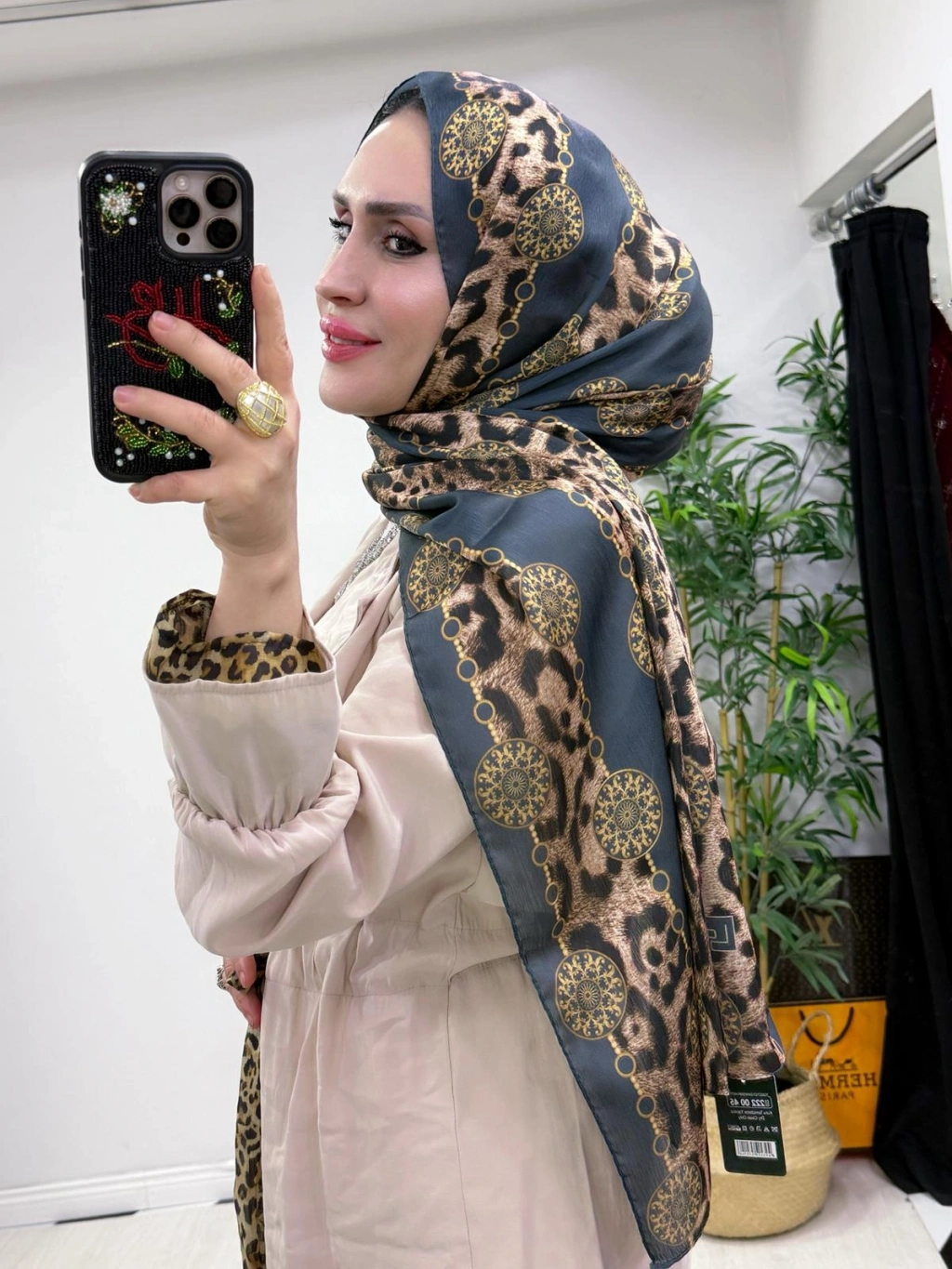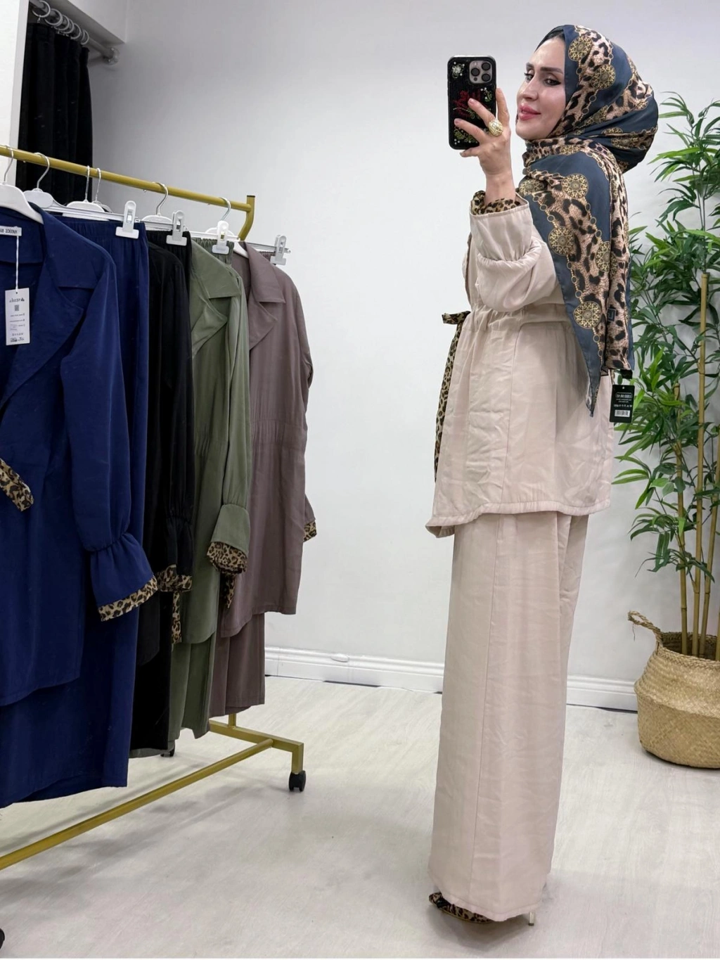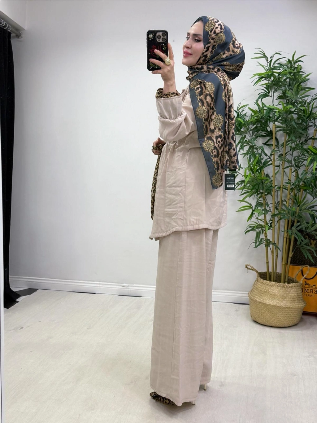 Leopar Detaylı Qupra Takım Krem