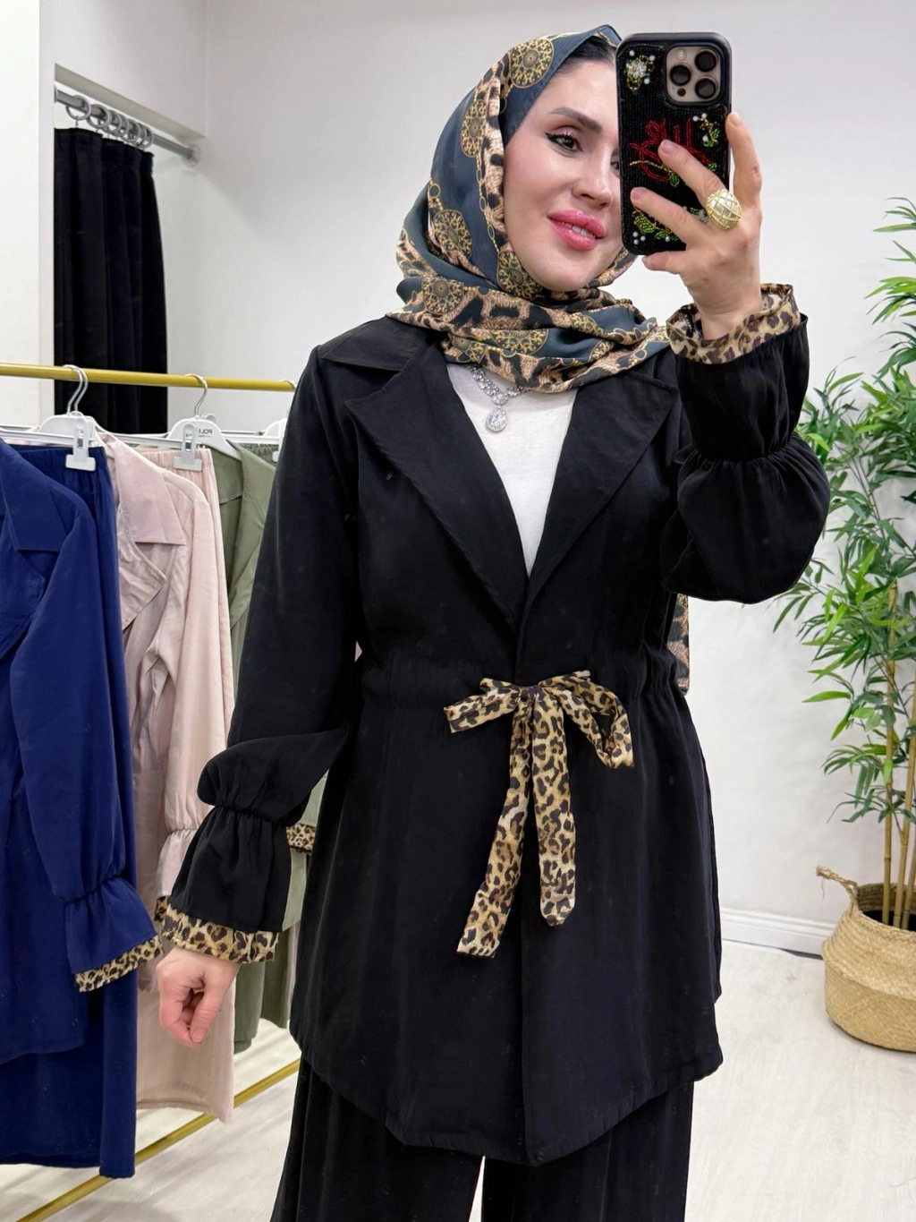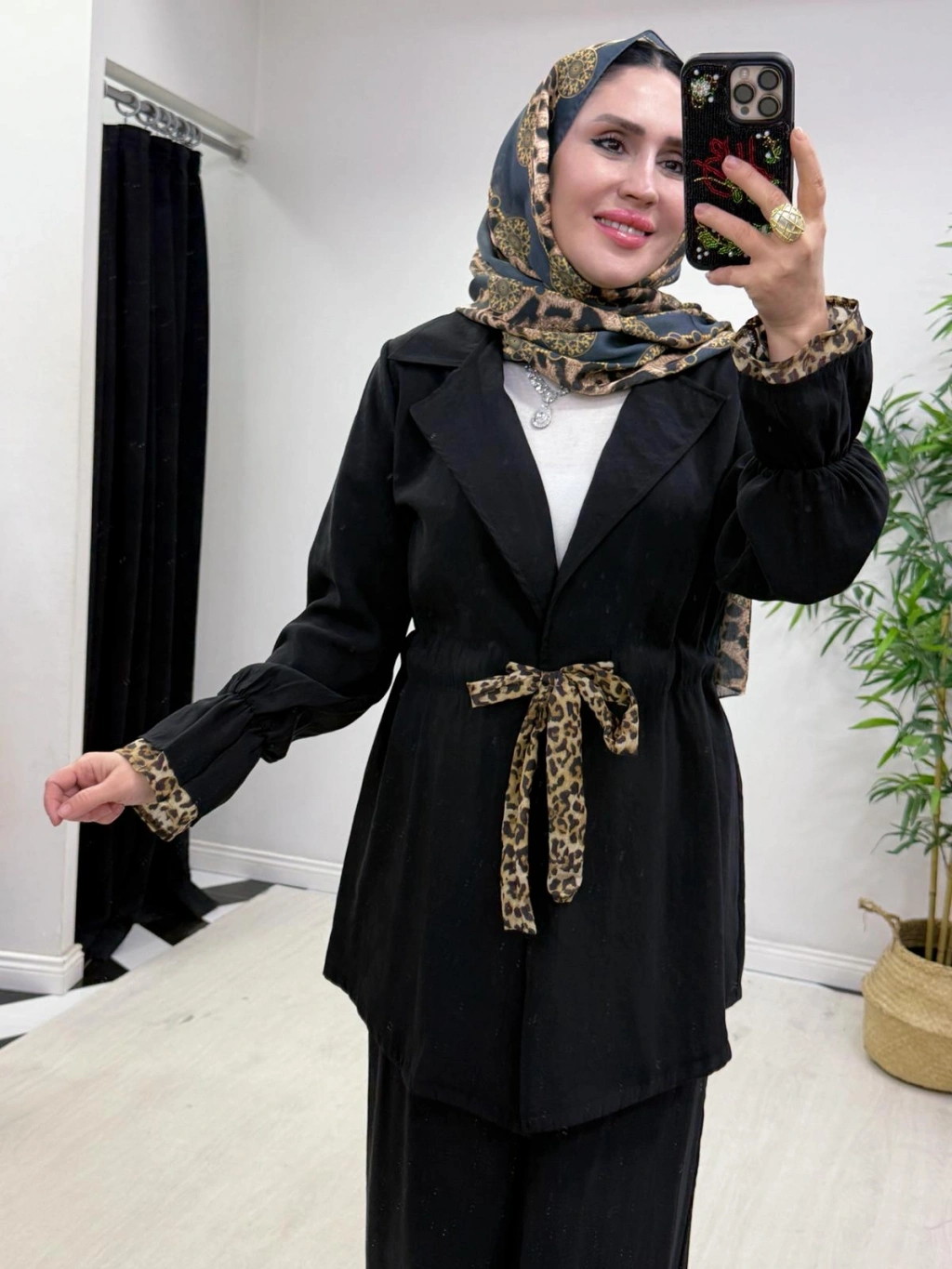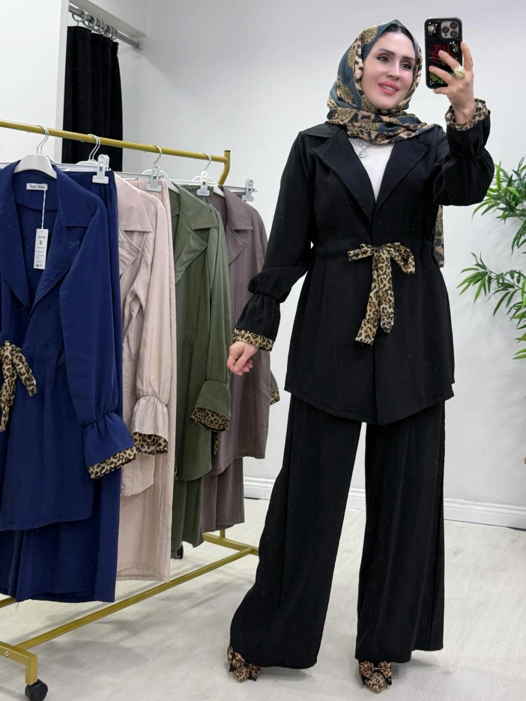 Kurdele Detaylı Modal Takım Haki Yeşil