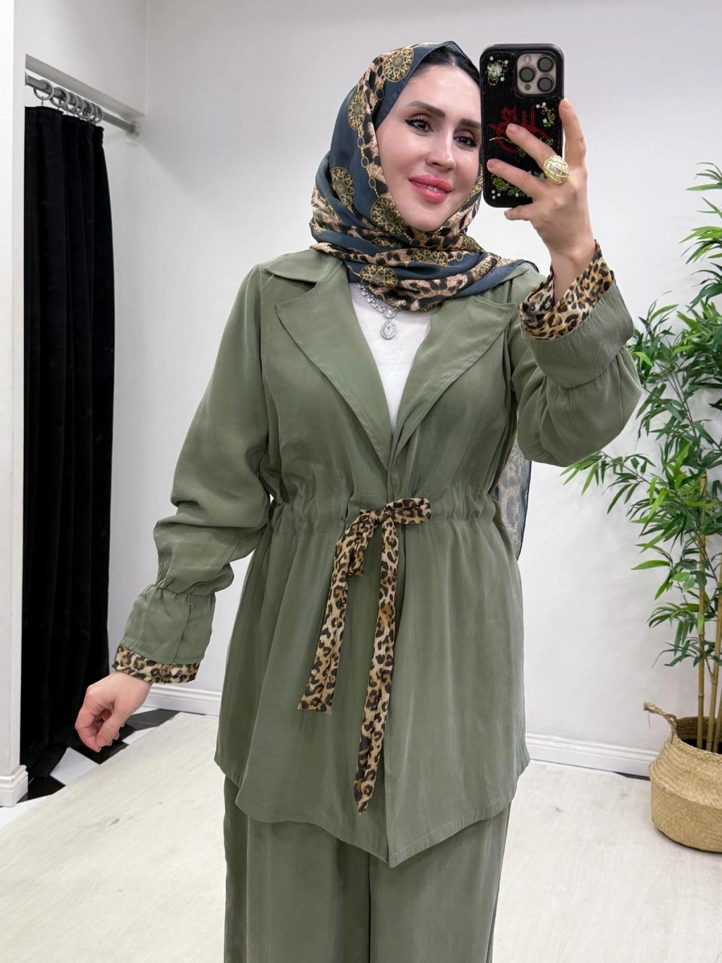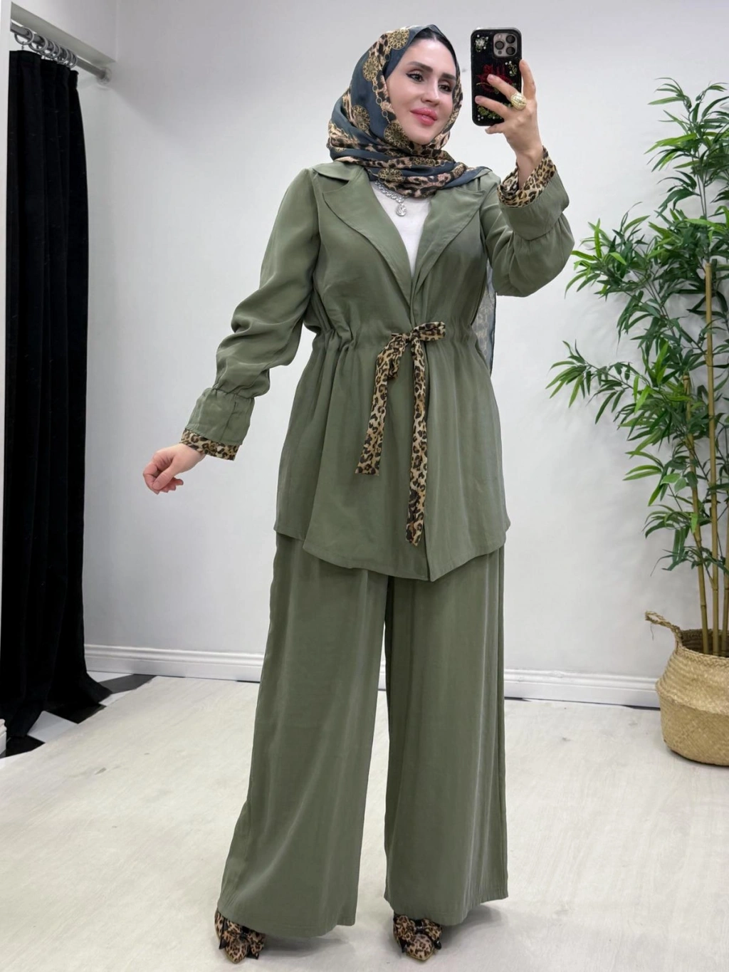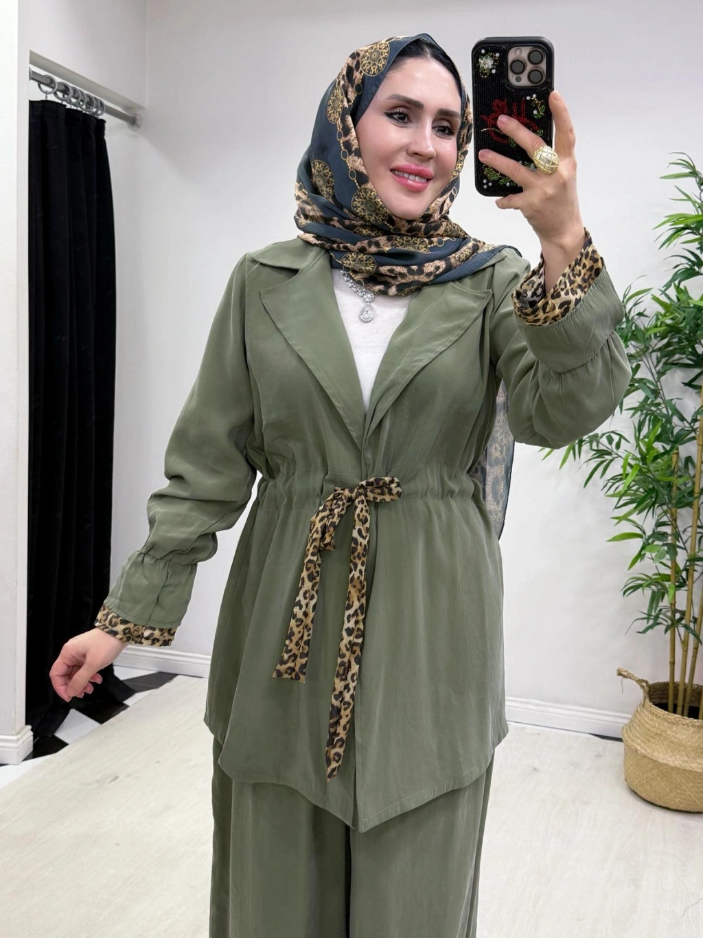 Kurdele Detaylı Modal Takım Haki Yeşil