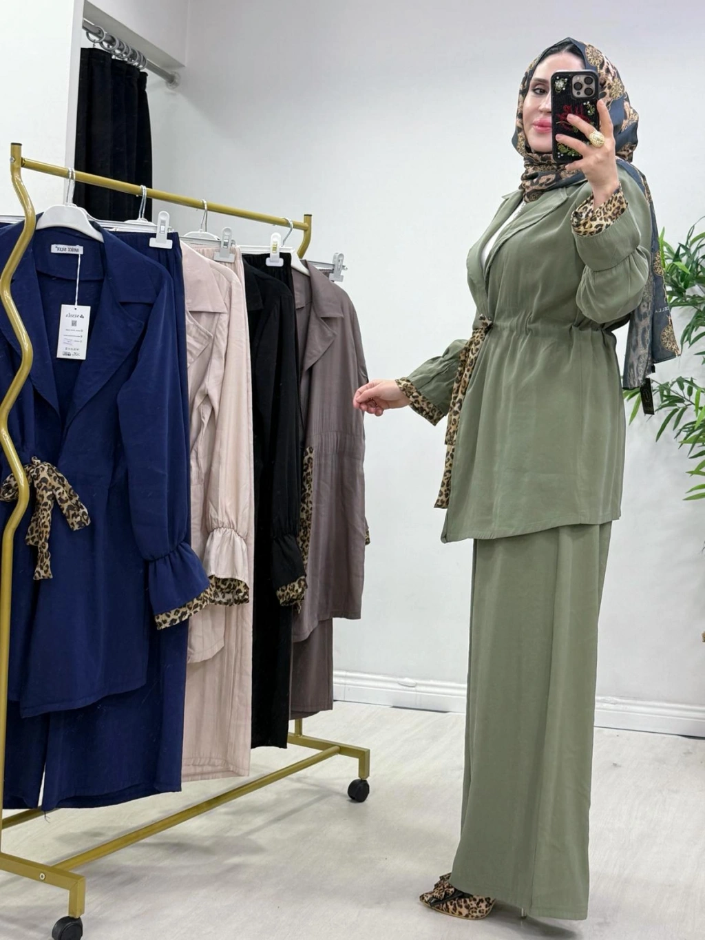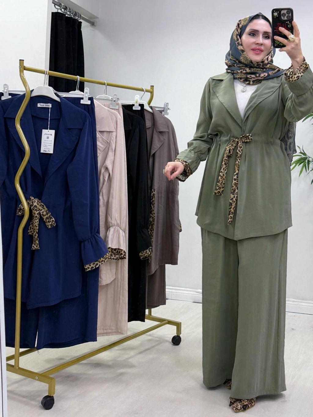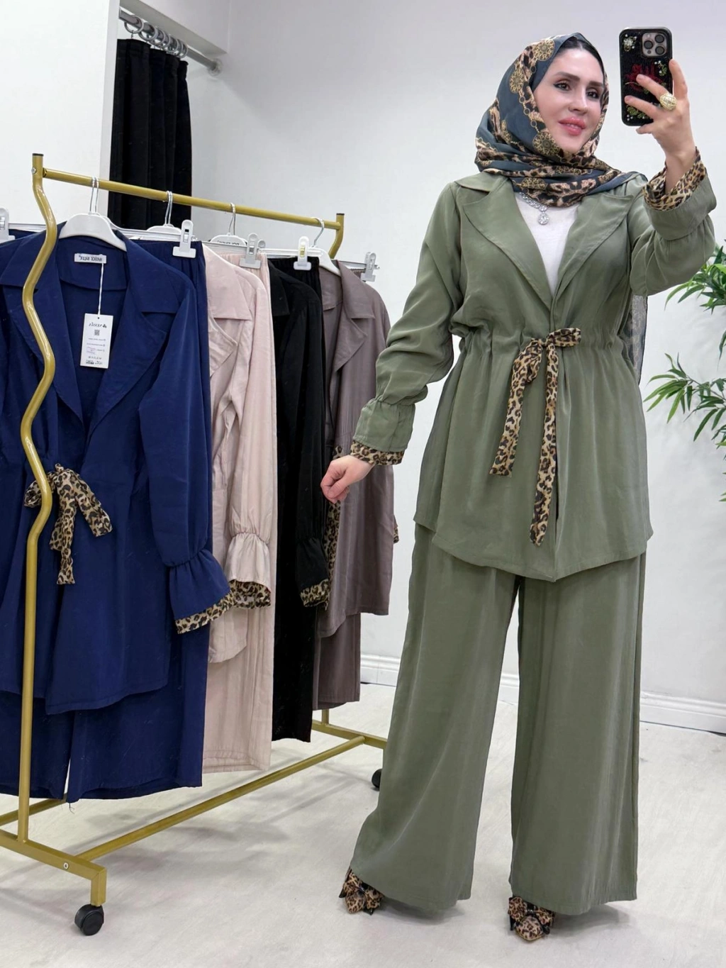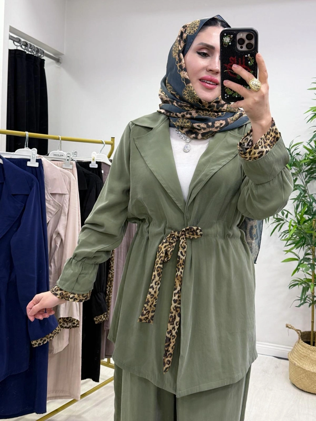 Kurdele Detaylı Modal Takım Haki Yeşil