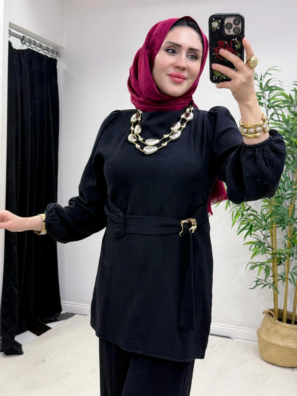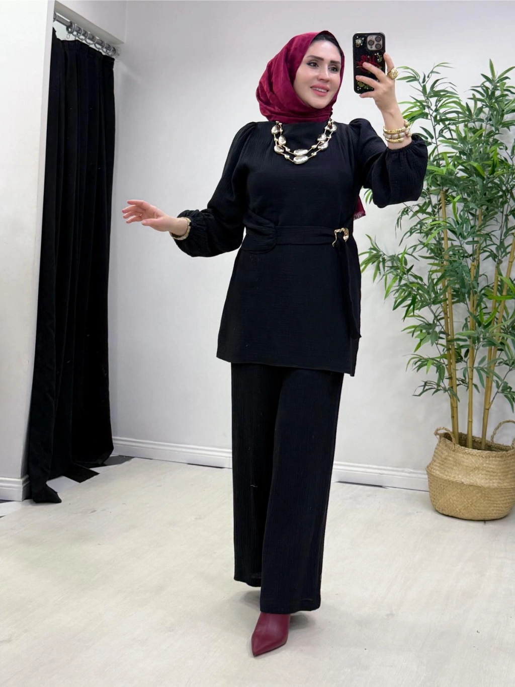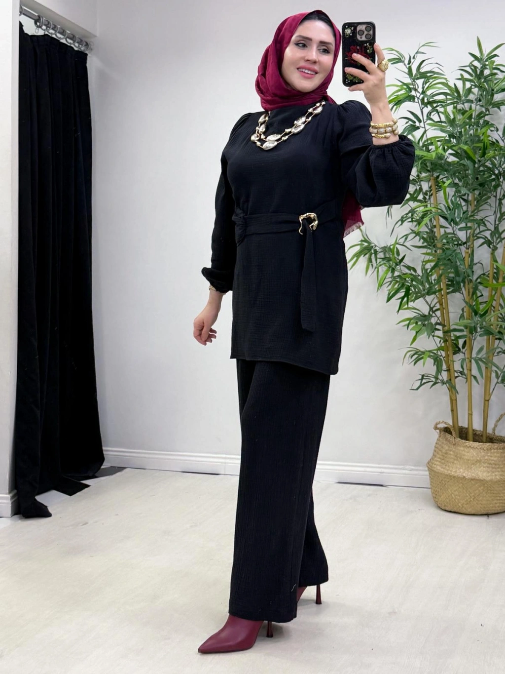 Yeni Sezon Müslin Kumaş Yazlık Takım Siyah