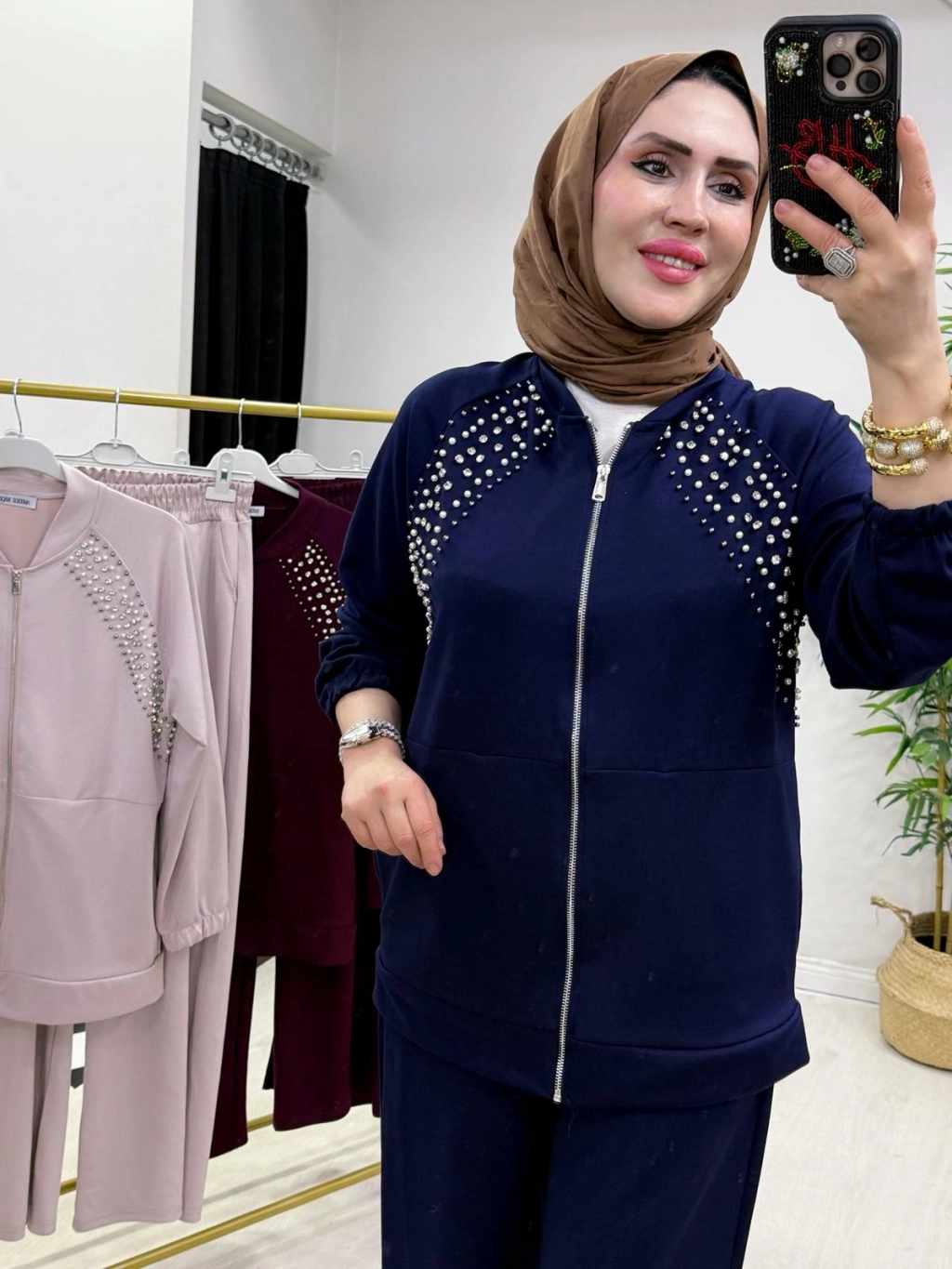 Zımba Detaylı Takım Mürdüm