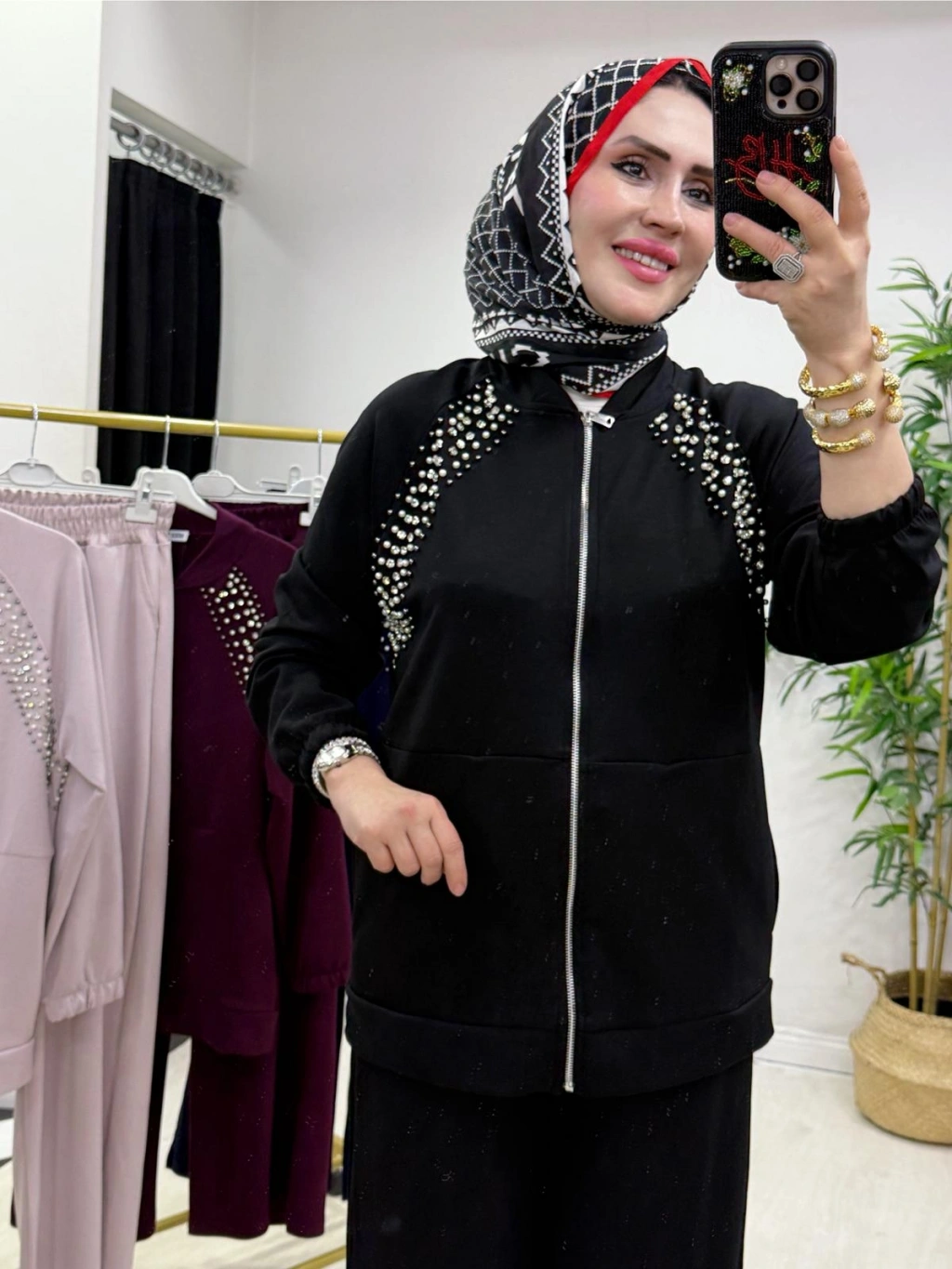 Zımba Detaylı Takım Siyah