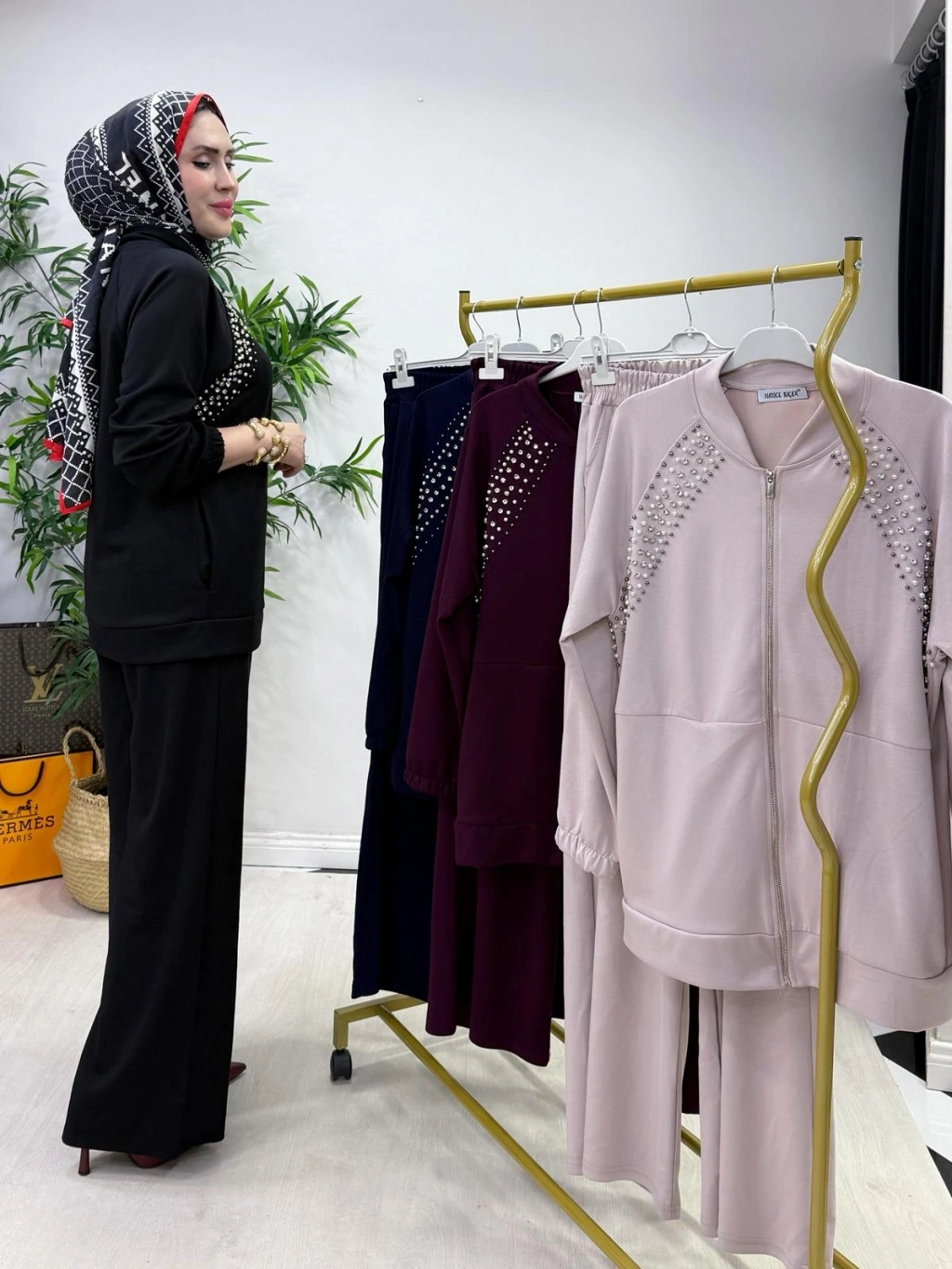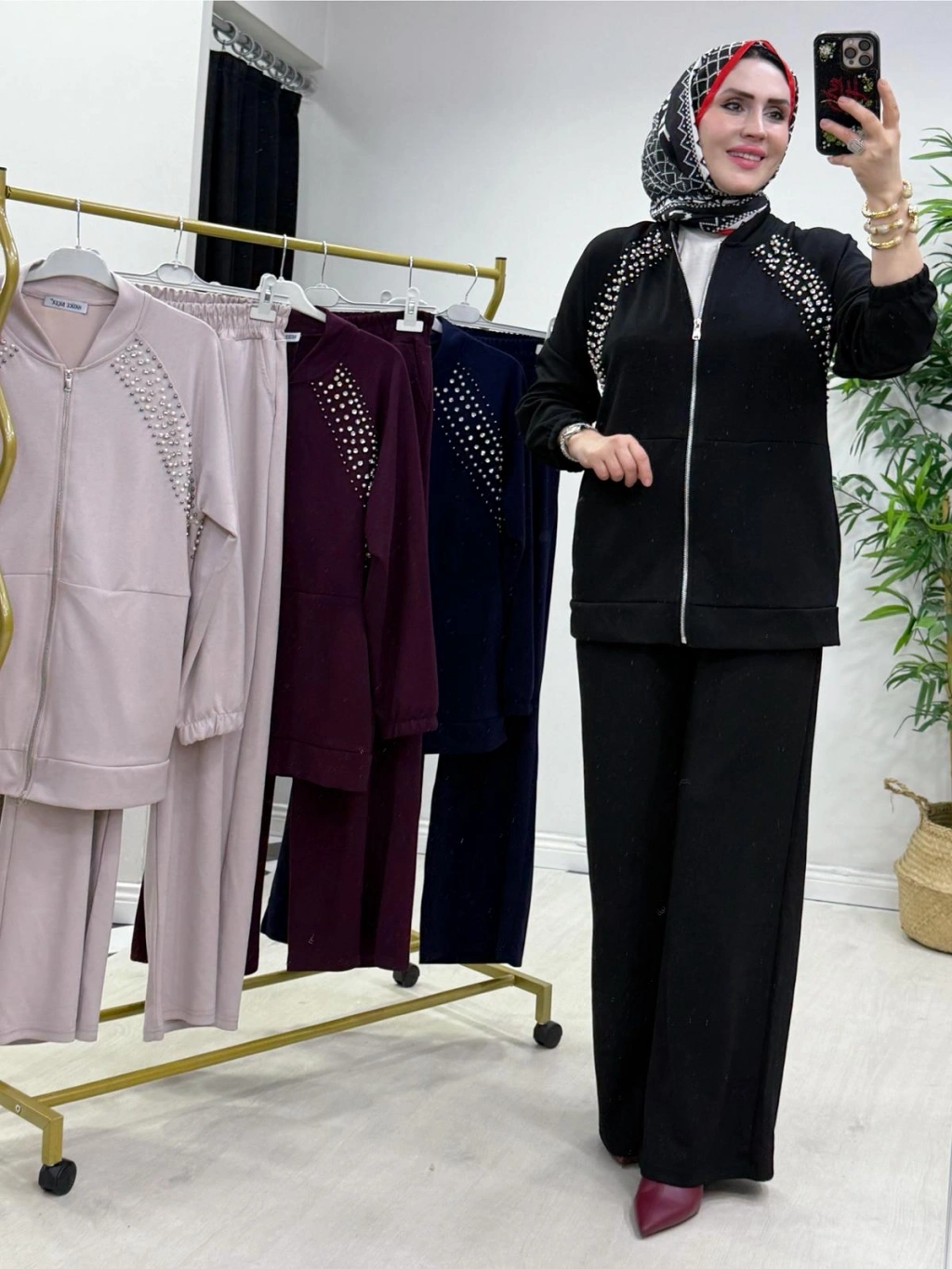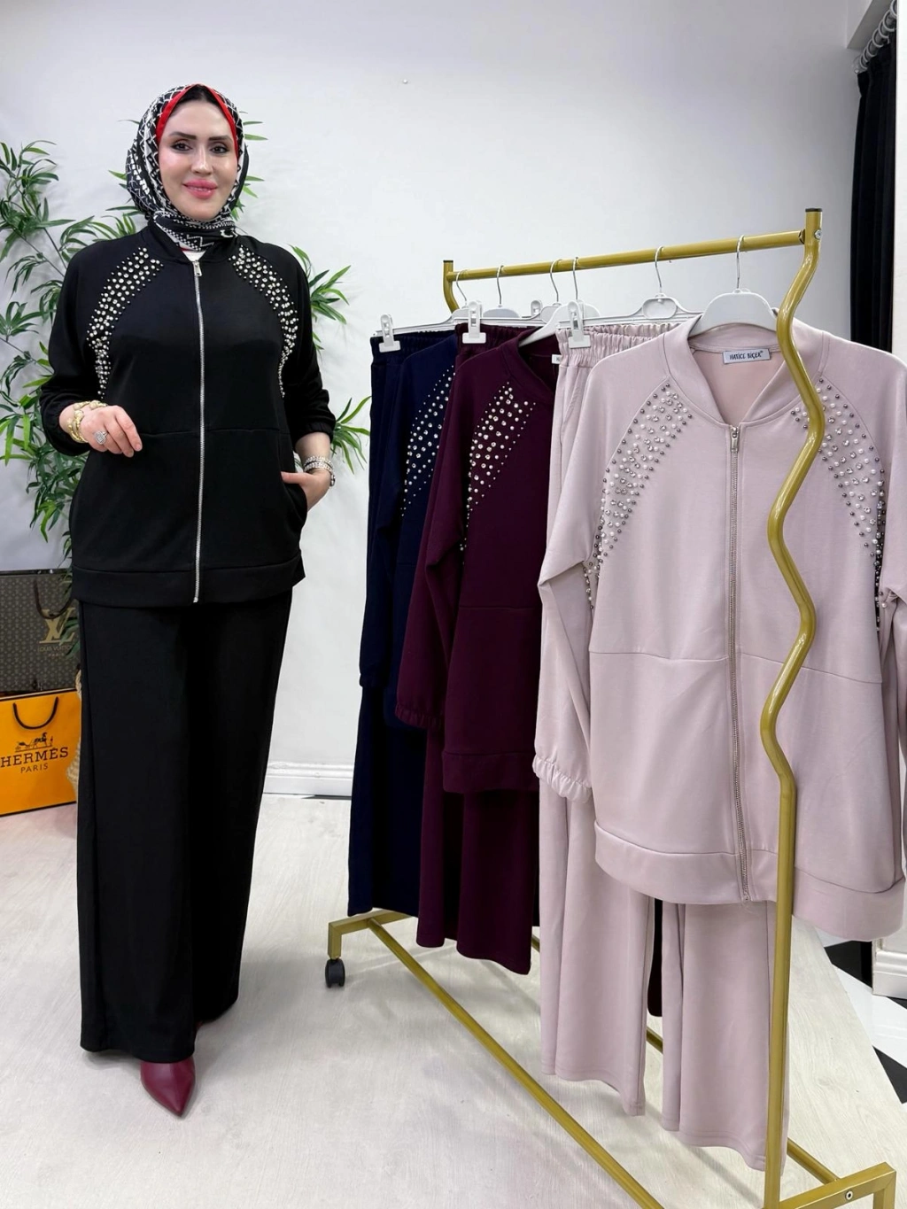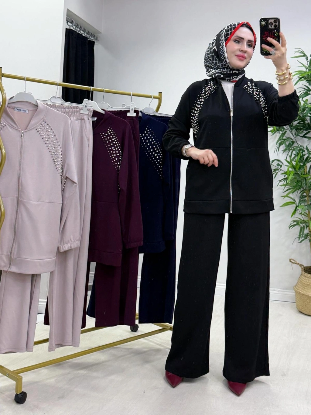 Zımba Detaylı Takım Mürdüm
