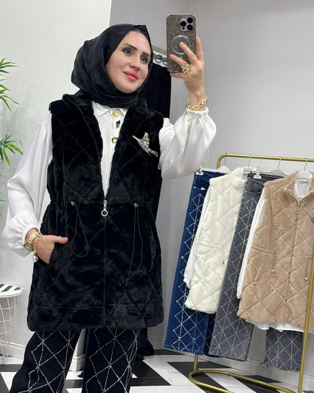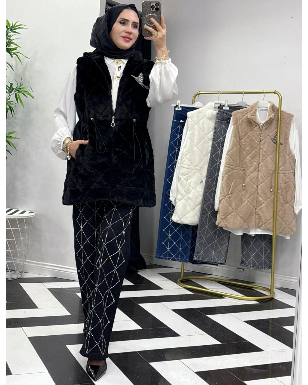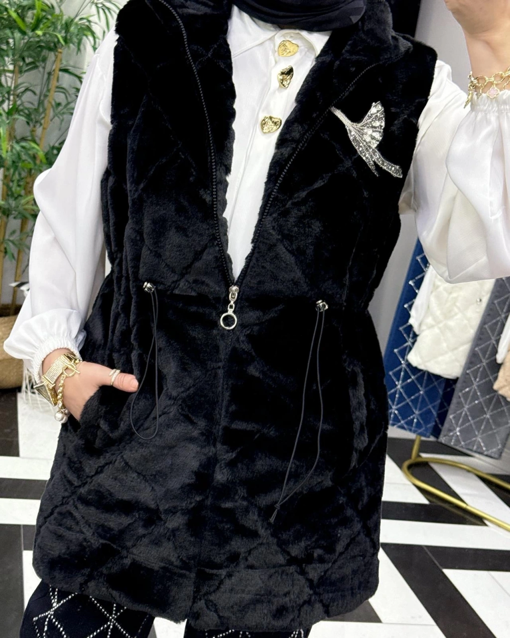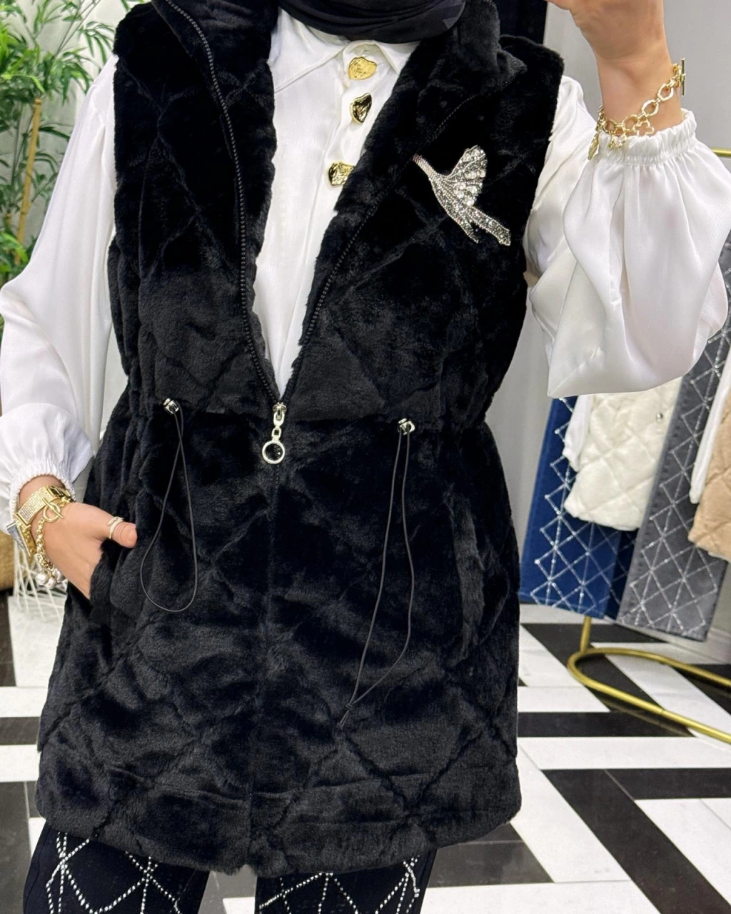 Peluş Yelek – İç Astarlı Siyah
