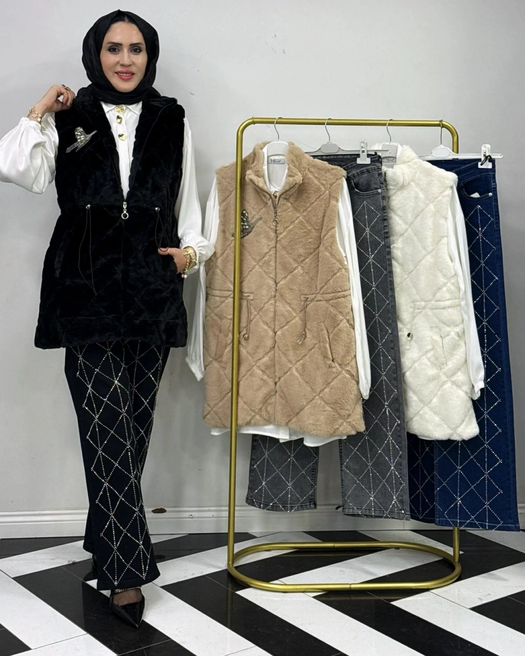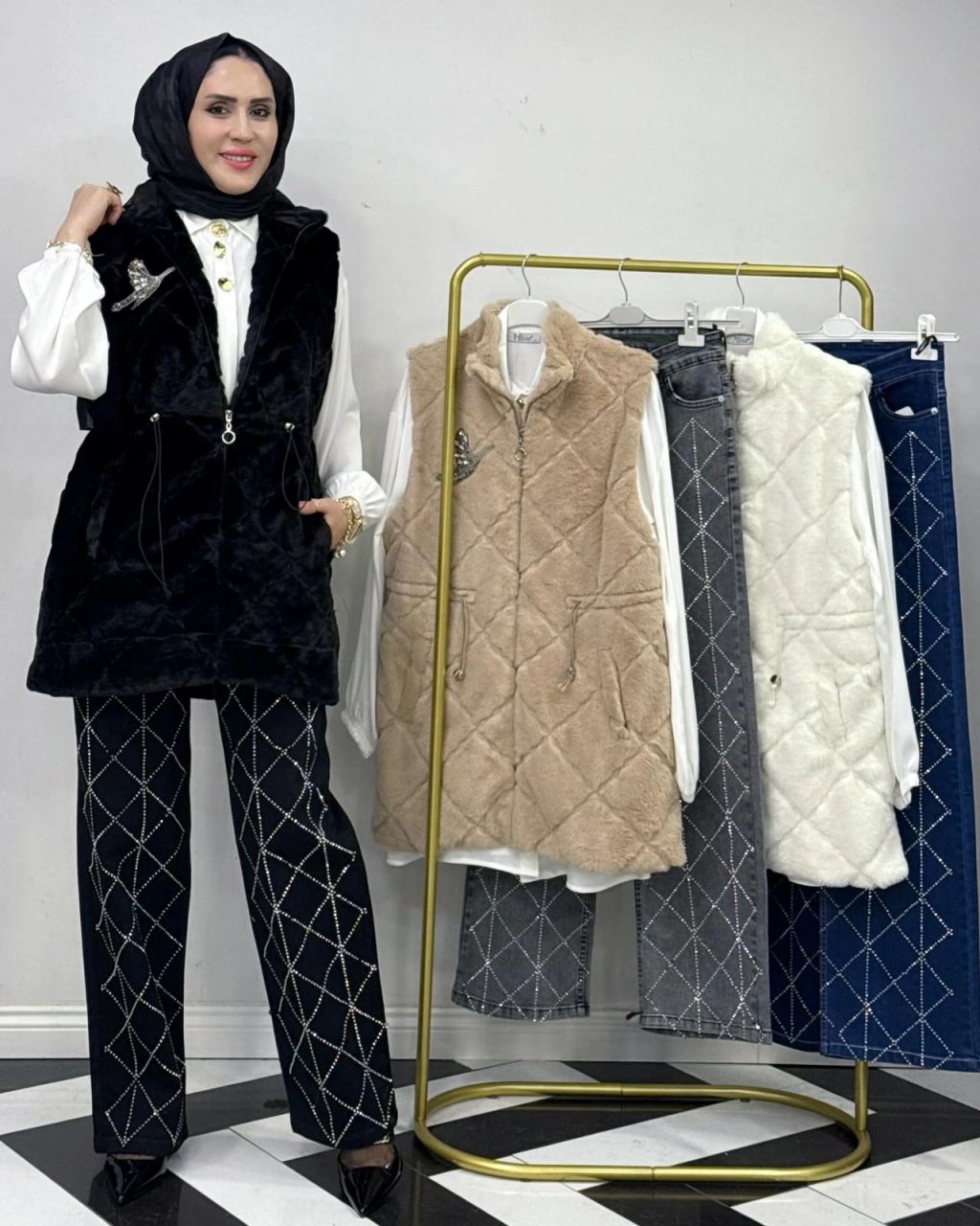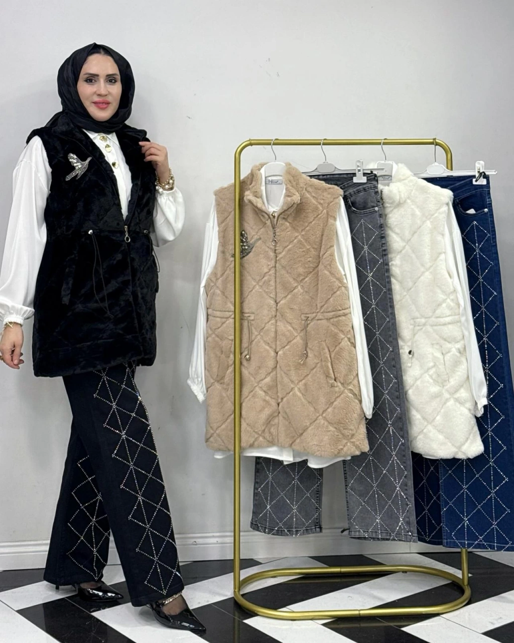 Peluş Yelek – İç Astarlı Beyaz