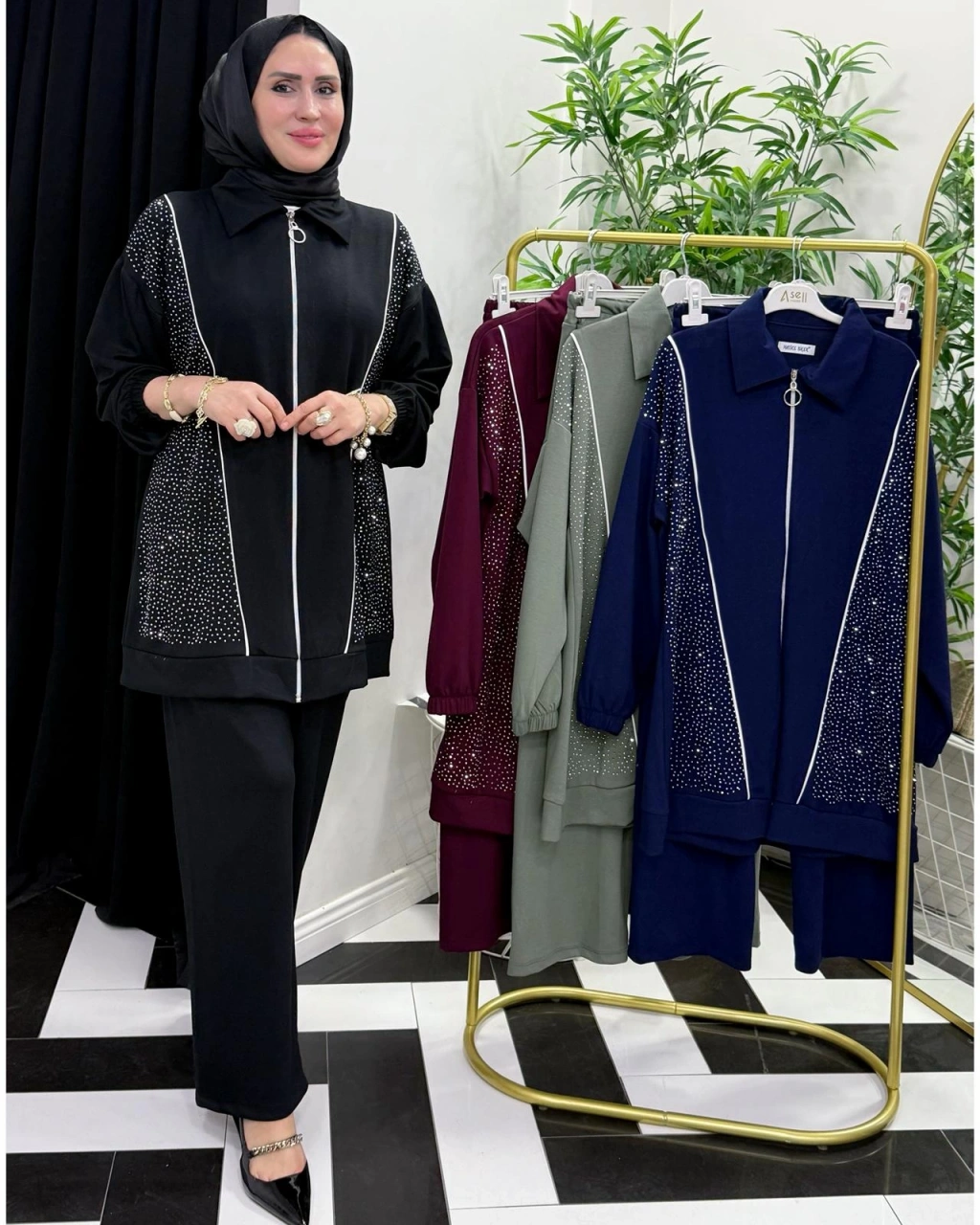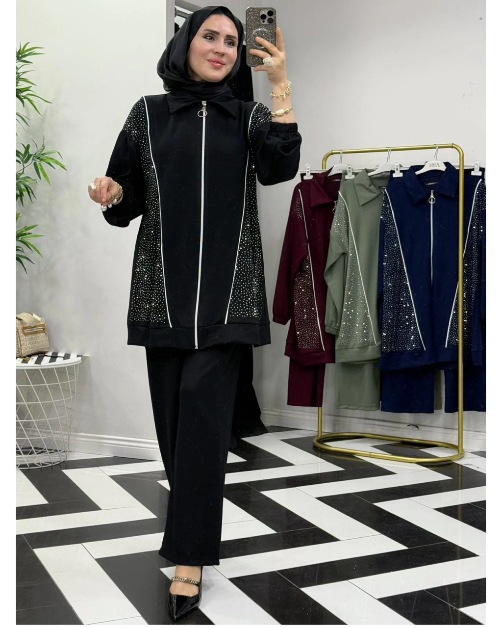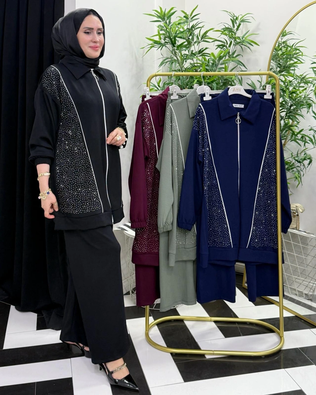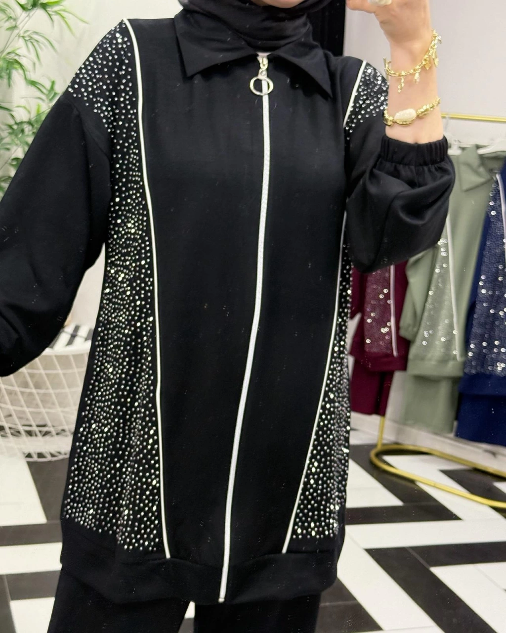Taşlı Takım – Oysho Kumaş Siyah