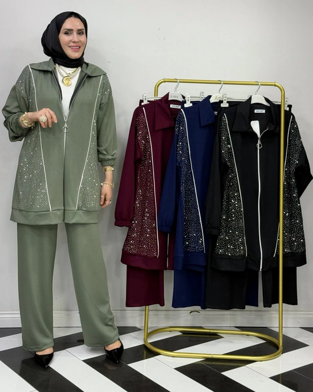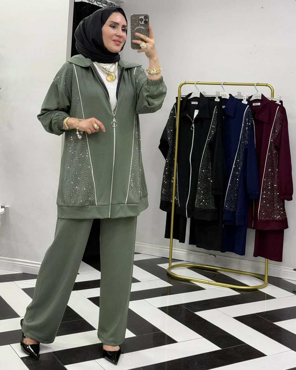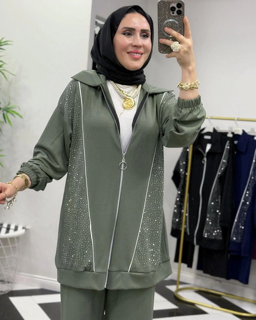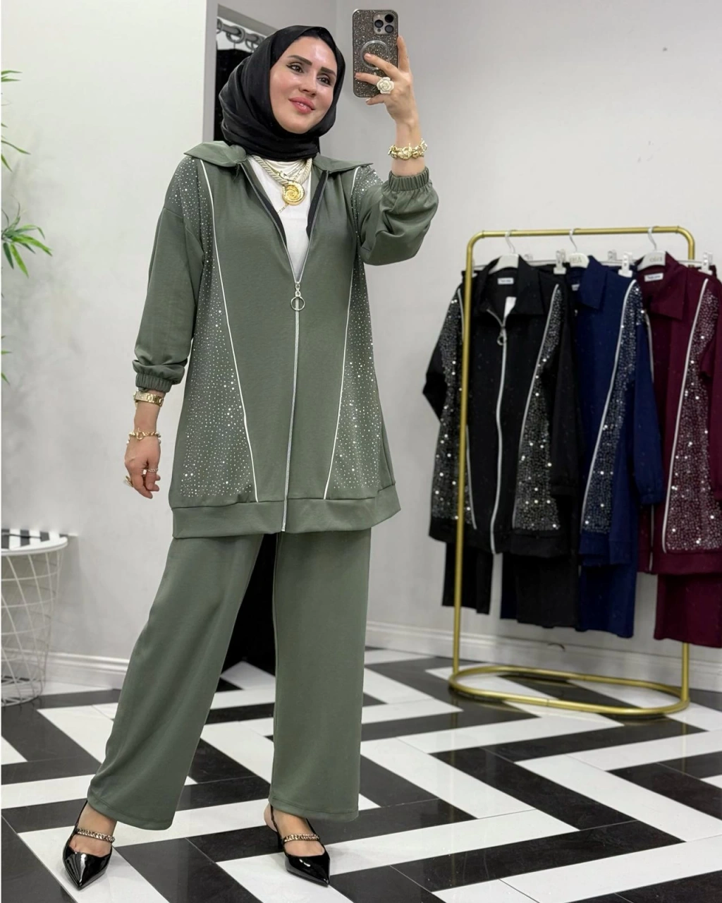 Yılan Desen Scuba Tunik & Pamuk Saten Pantolon Takım