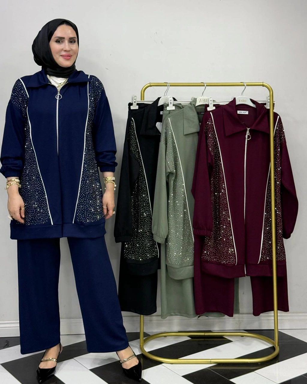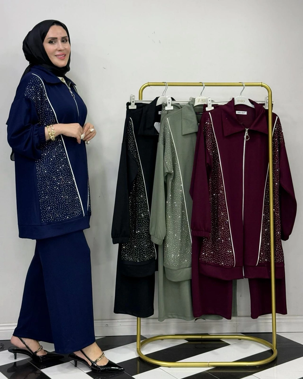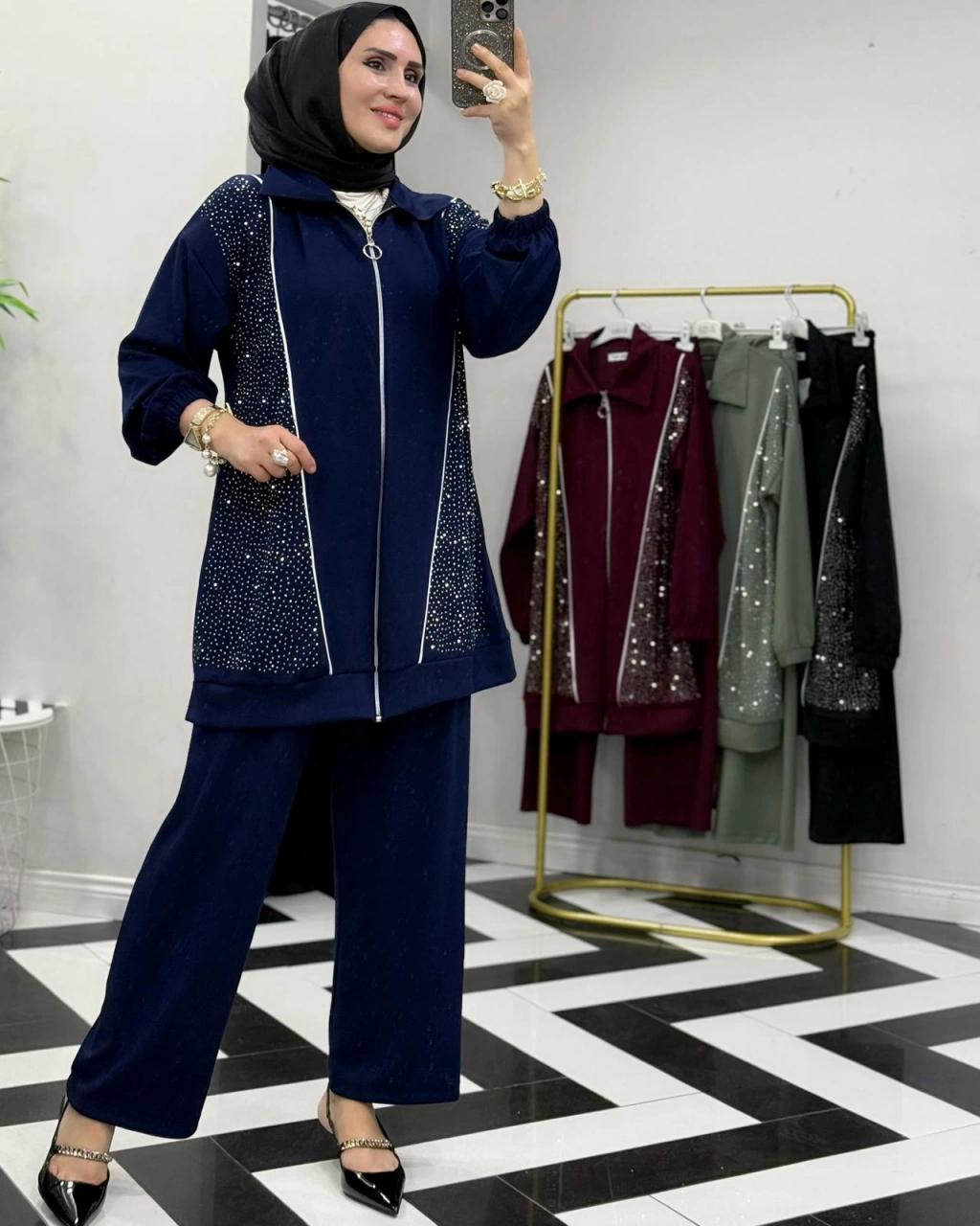 Yılan Desen Scuba Tunik & Pamuk Saten Pantolon Takım