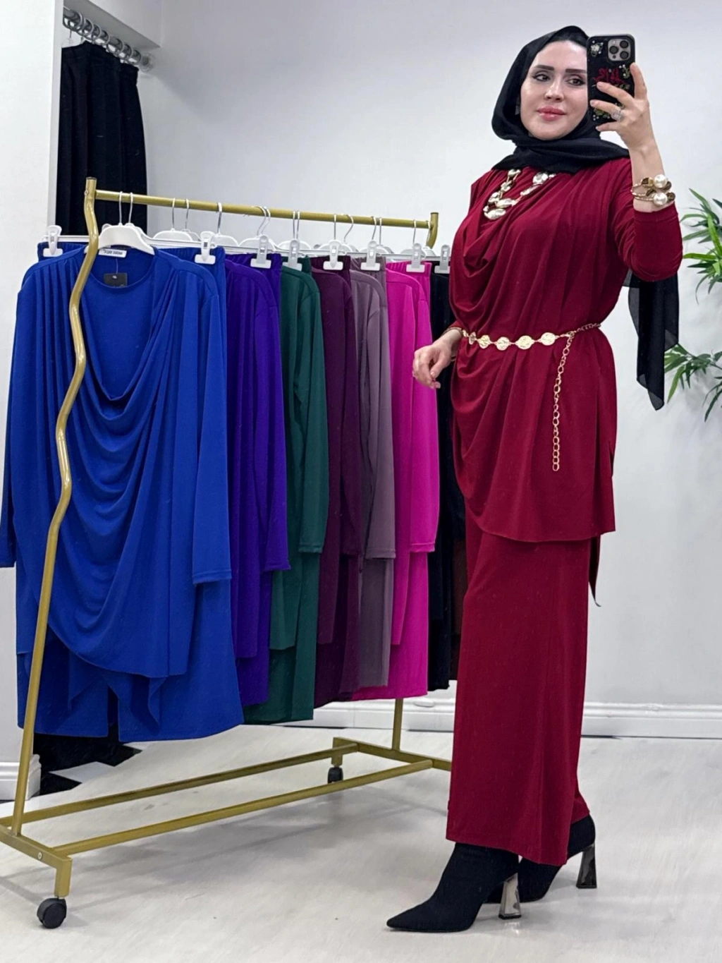 Yeni Sezon Giyçık Tasarım Candy Kumaş Takım Bordo