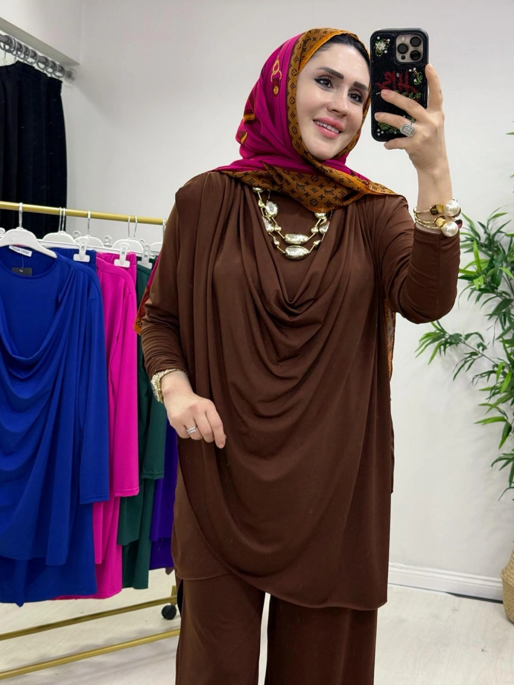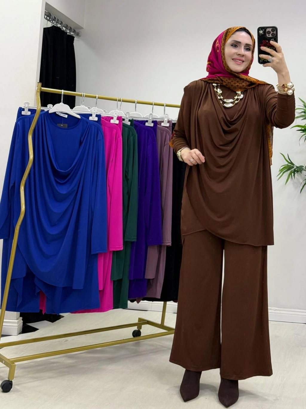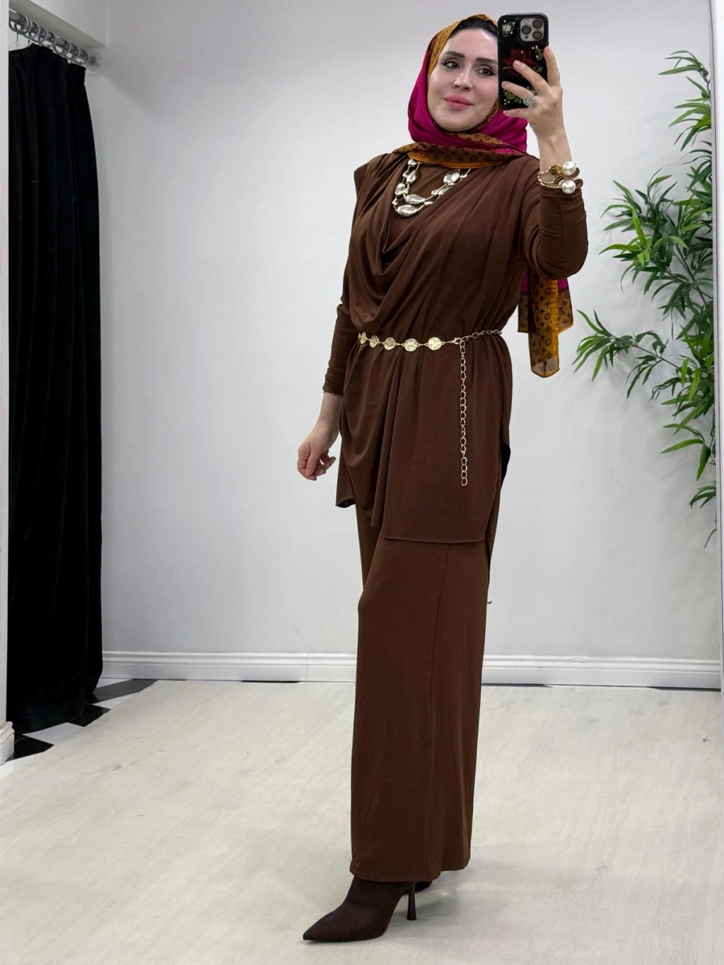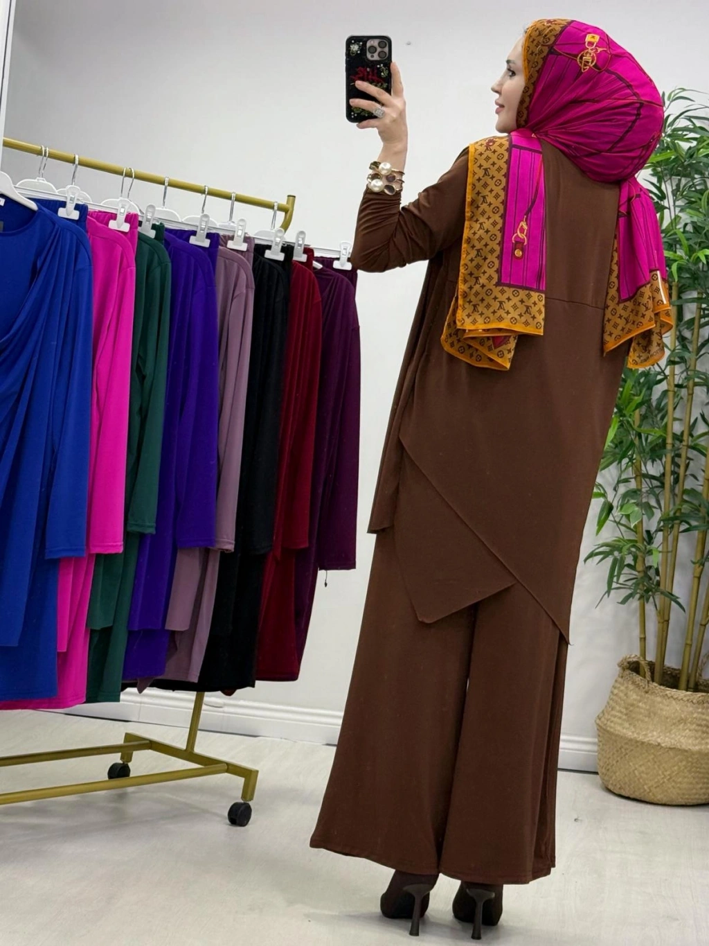 Yeni Sezon Giyçık Tasarım Candy Kumaş Takım Kahverengi