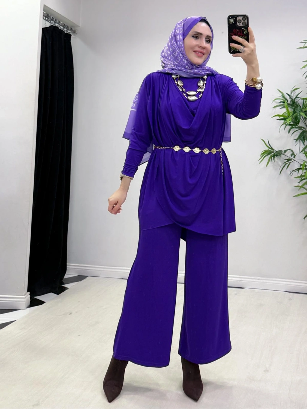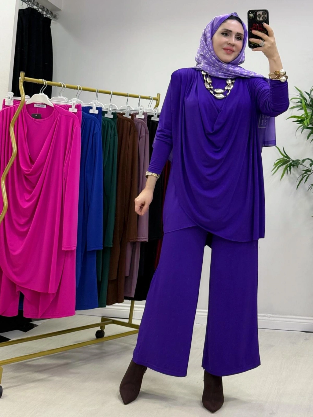 Yeni Sezon Giyçık Tasarım Candy Kumaş Takım Mor
