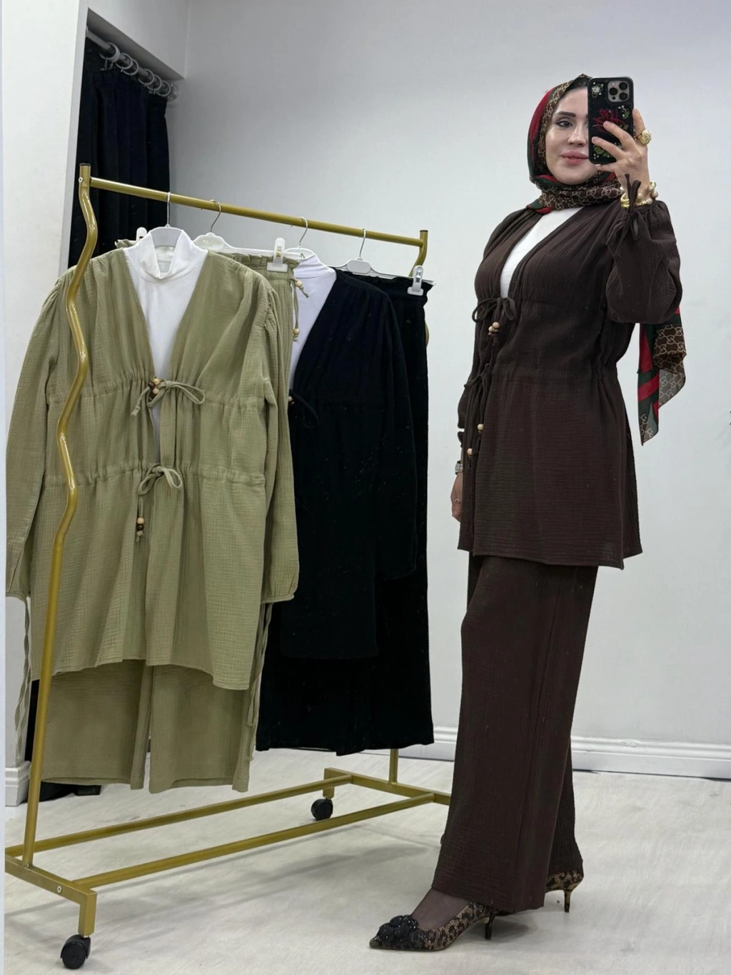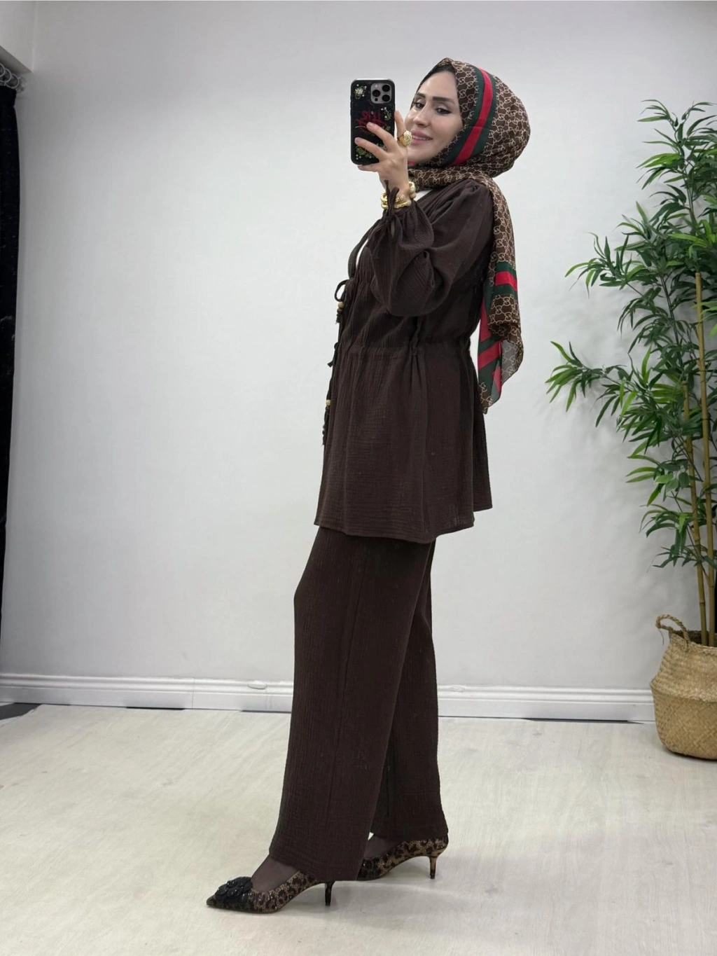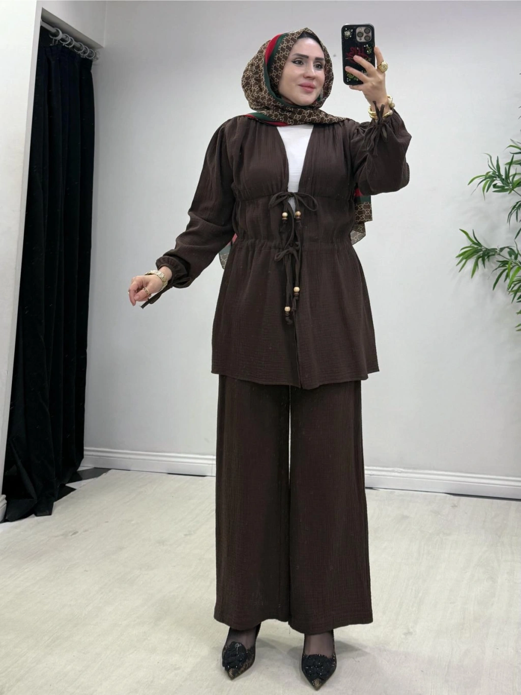 Yeni Sezon Müslin Kumaş Yazlık Takım Kahverengi