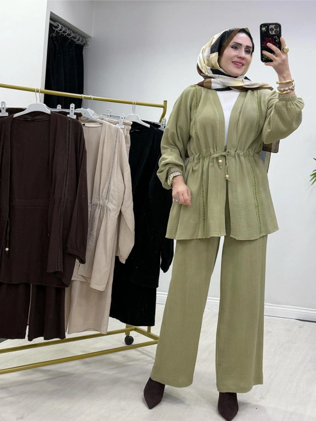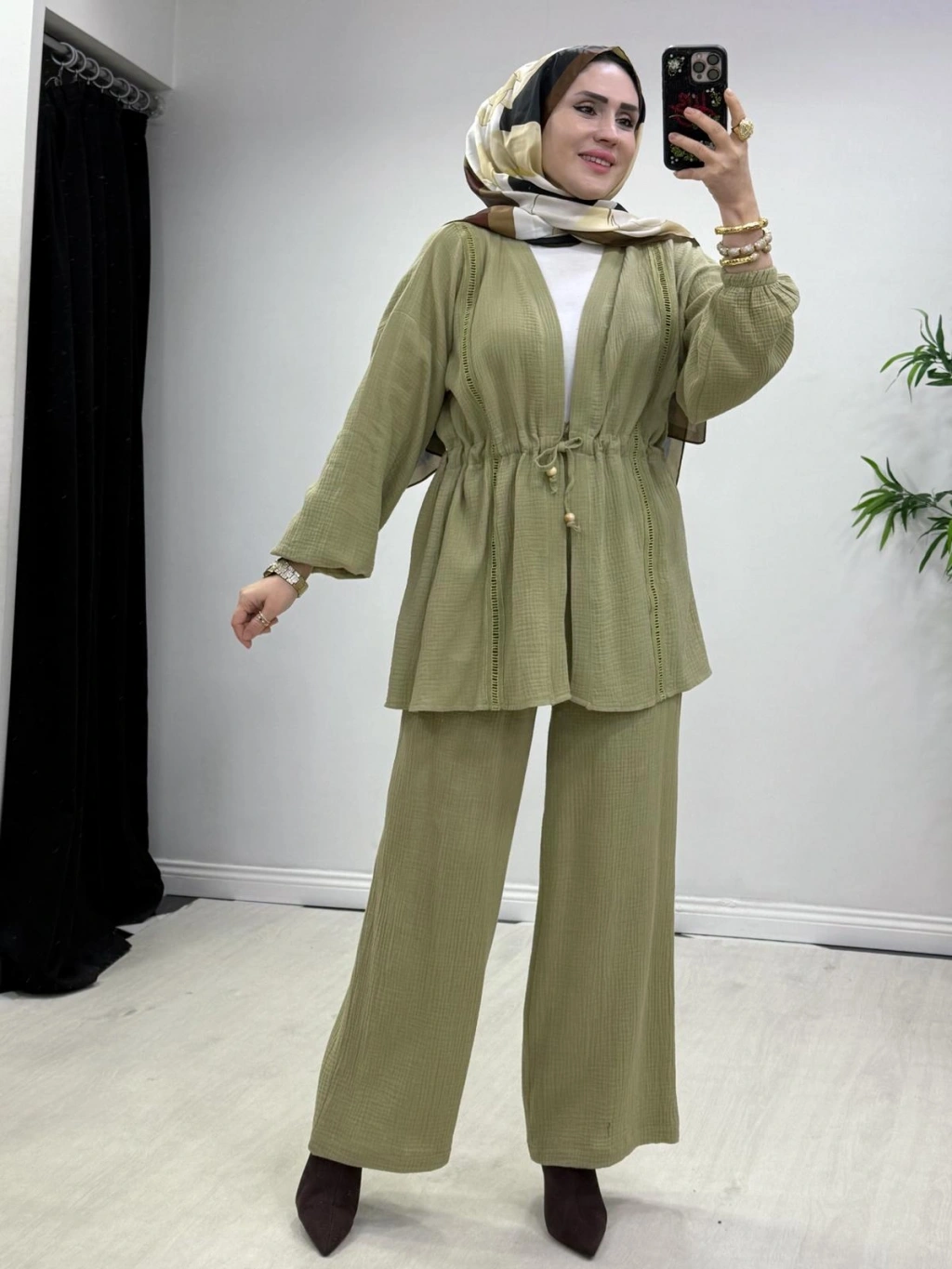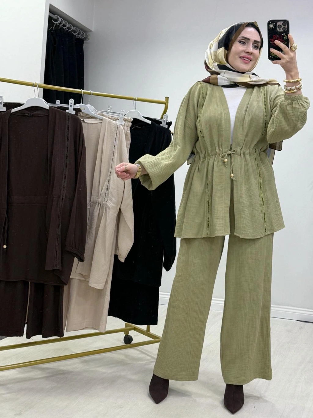 Yeni Sezon Müslin Kumaş Yazlık Takım Yeşil