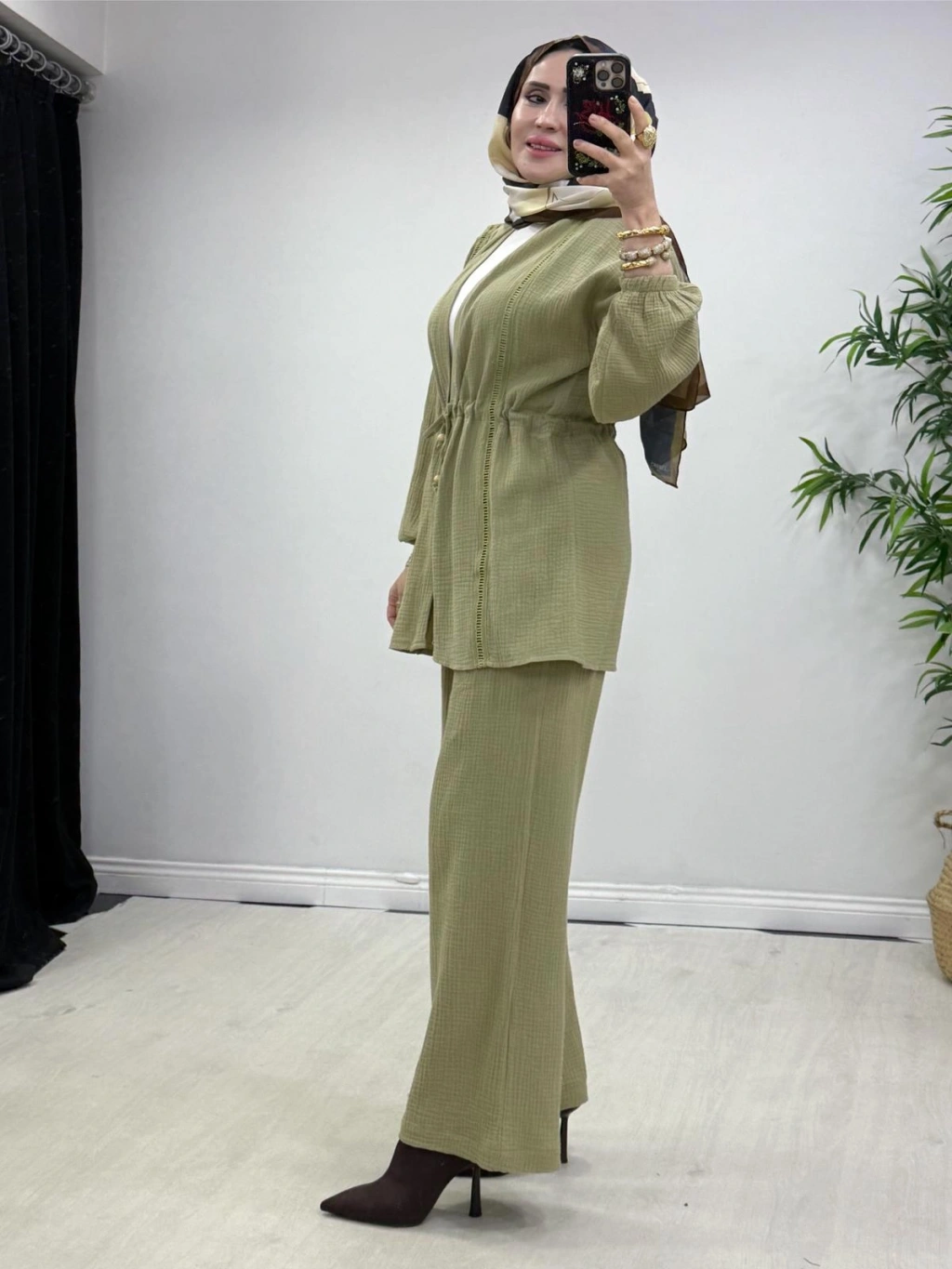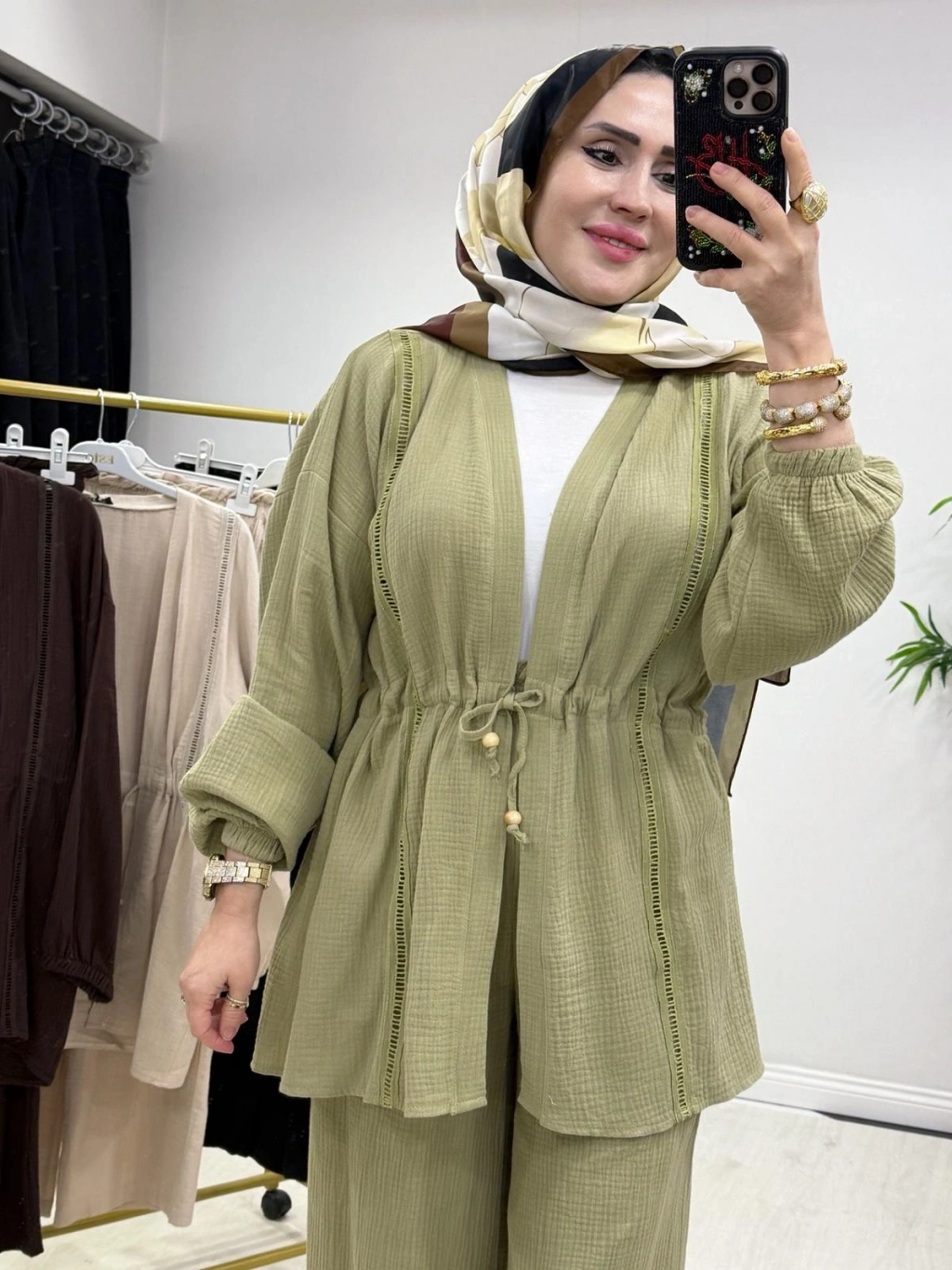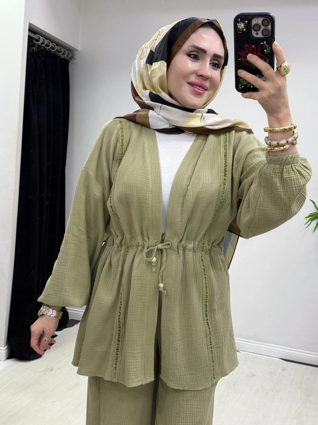 Yeni Sezon Müslin Kumaş Yazlık Takım Yeşil