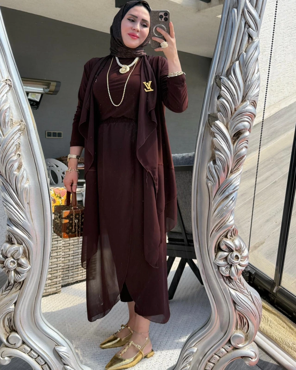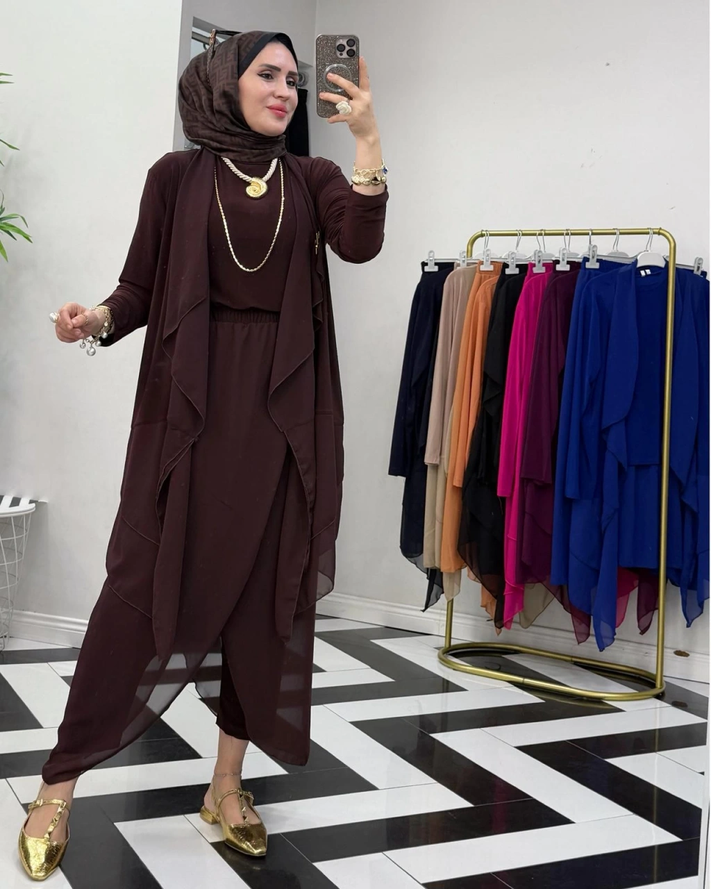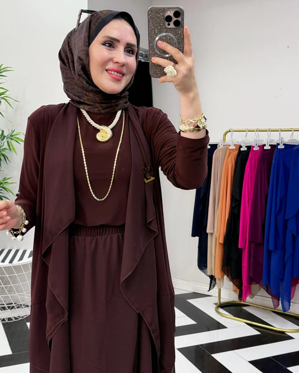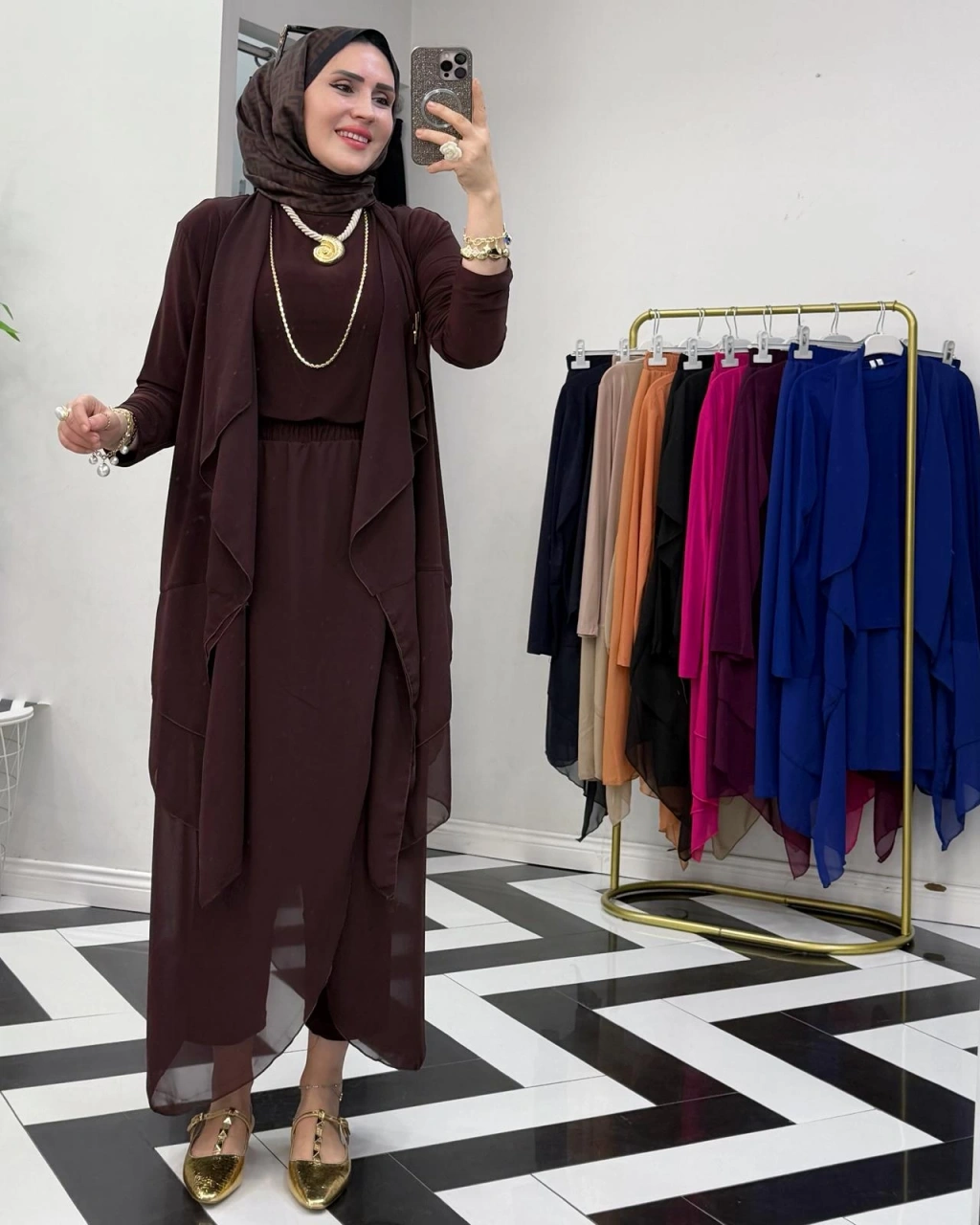 3’lü Takım Şık Tesettür Elbise – Candy Kumaş Kahverengi