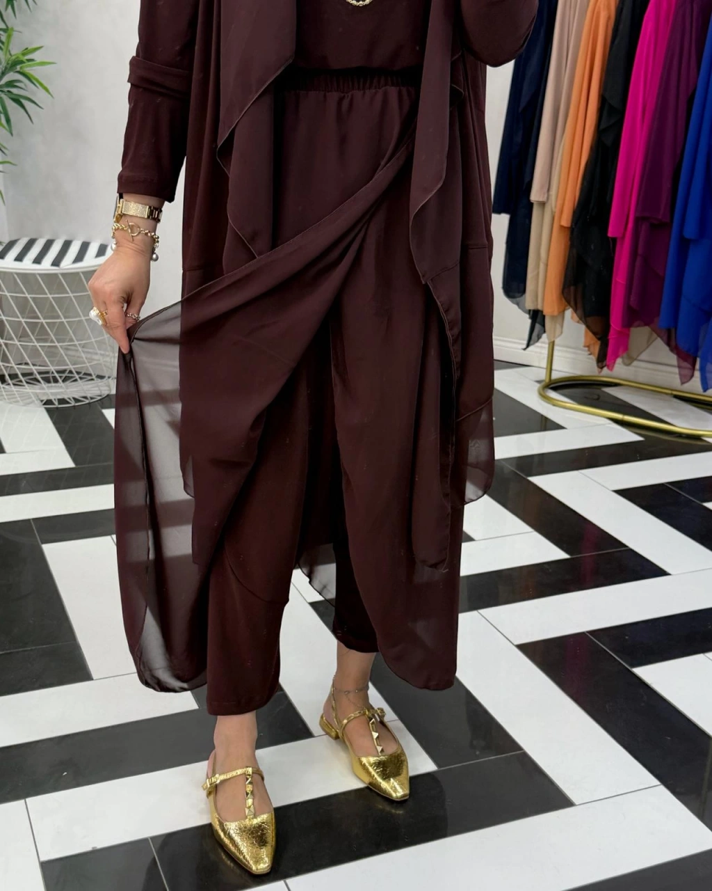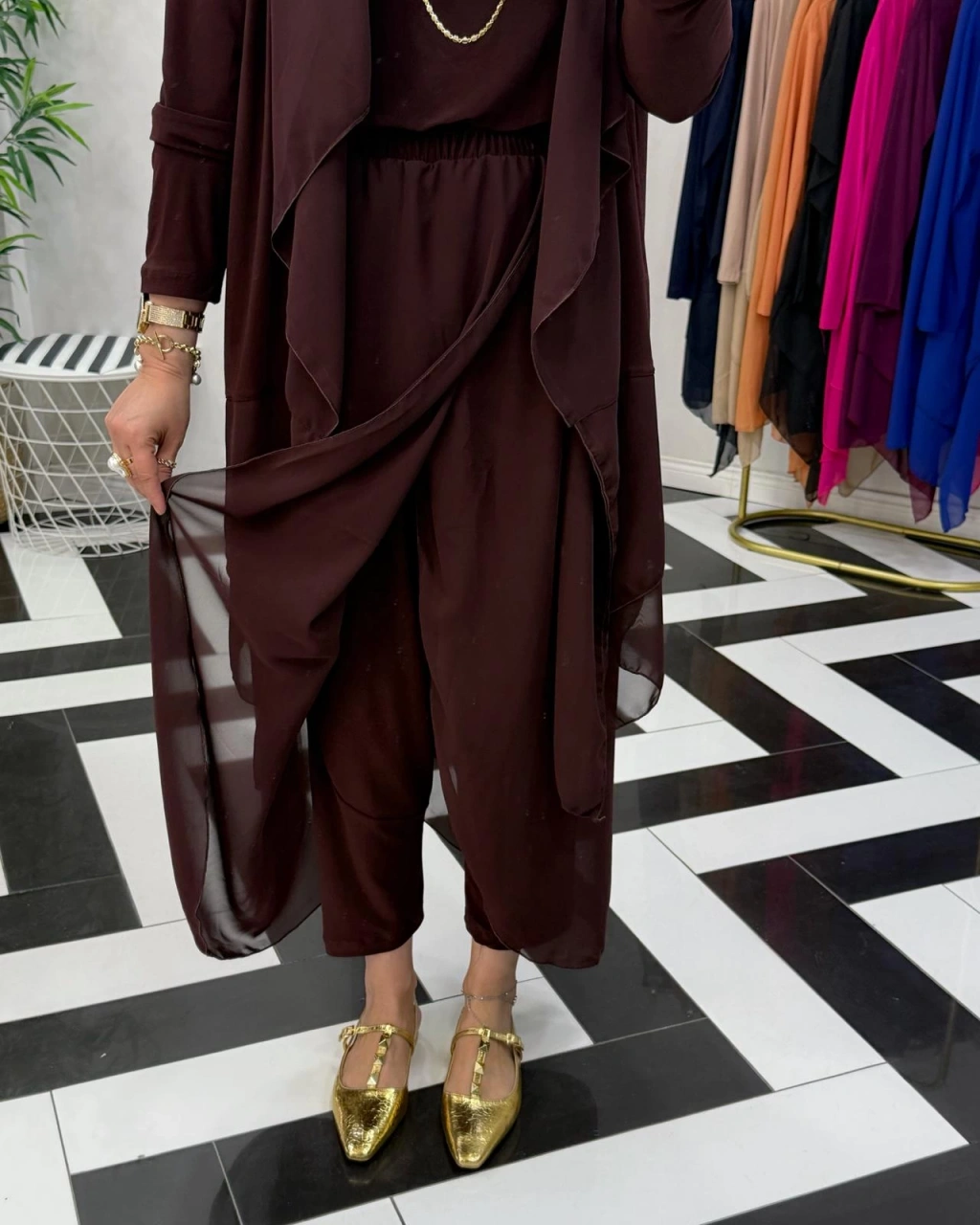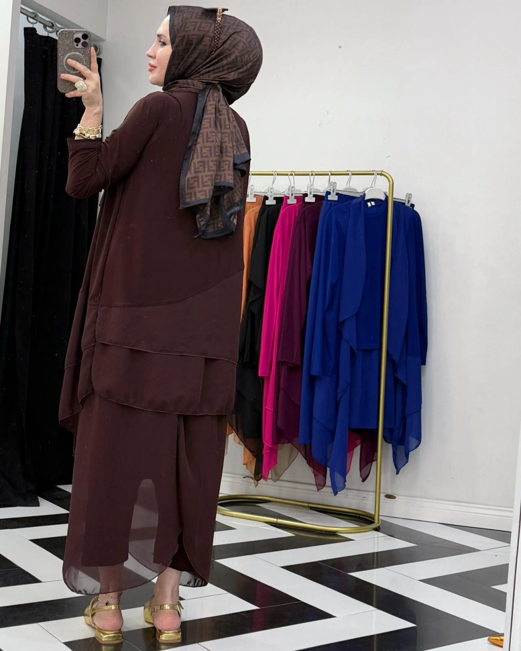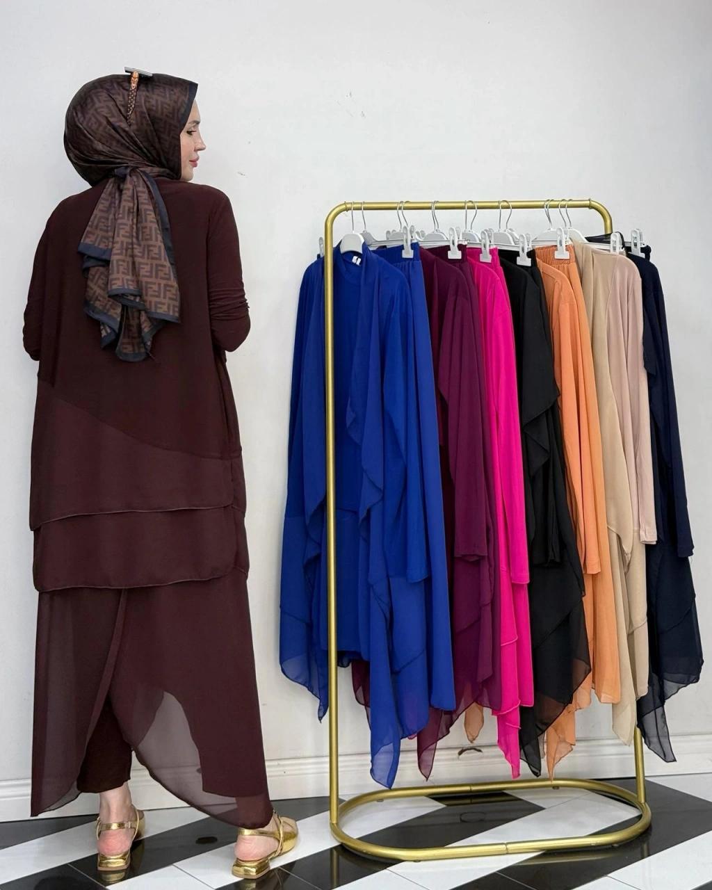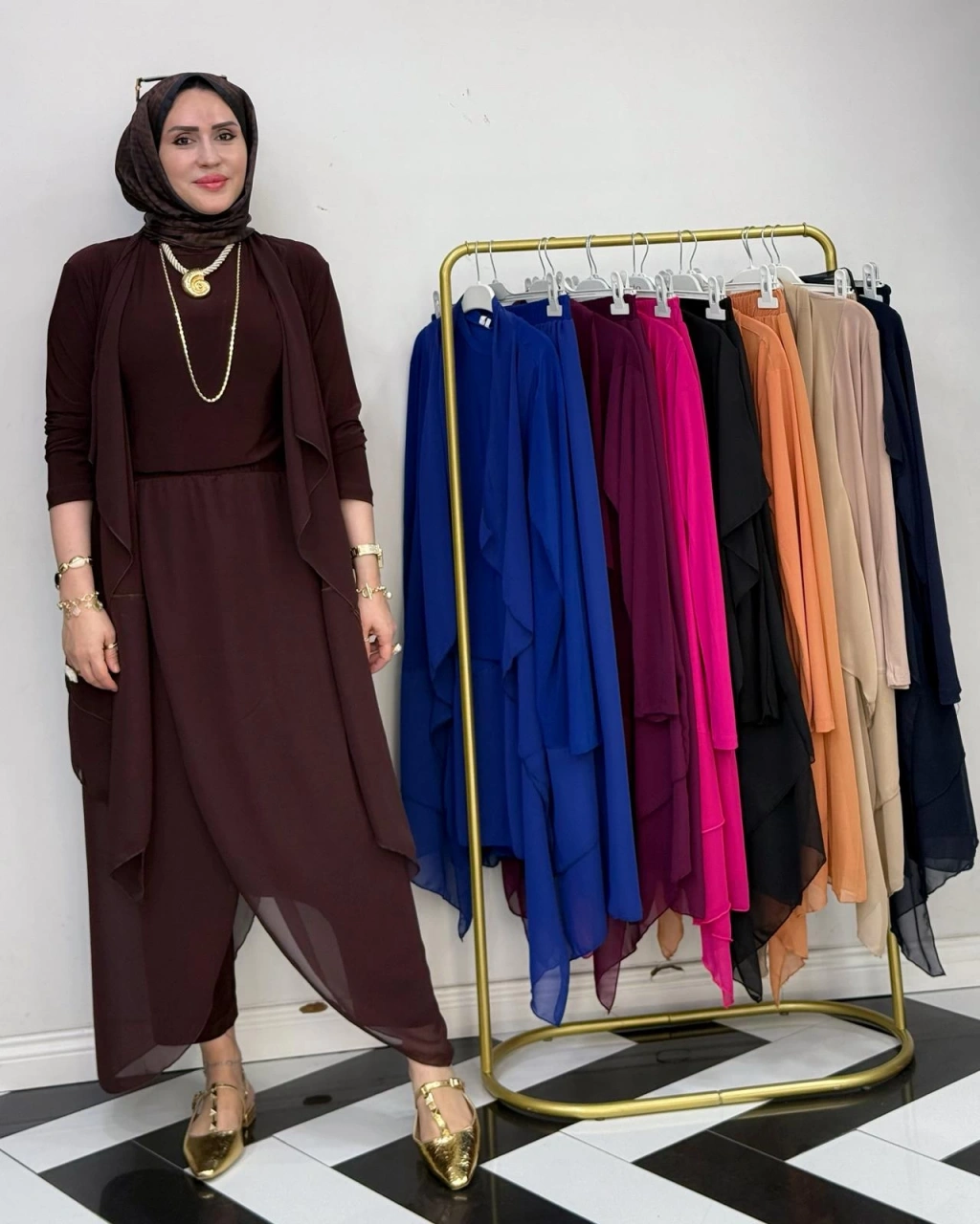 3’lü Takım Şık Tesettür Elbise – Candy Kumaş Kahverengi