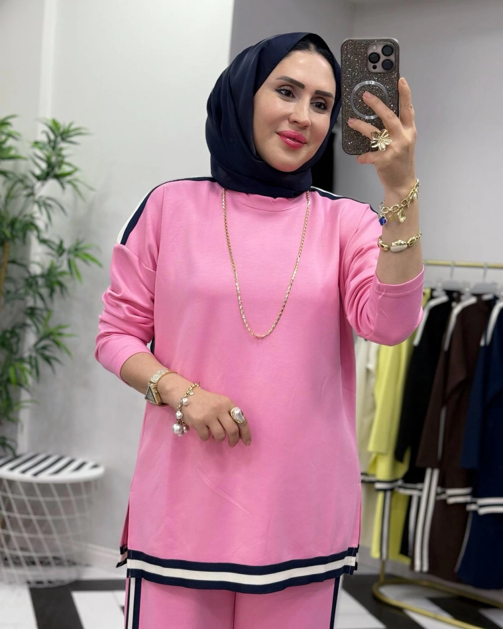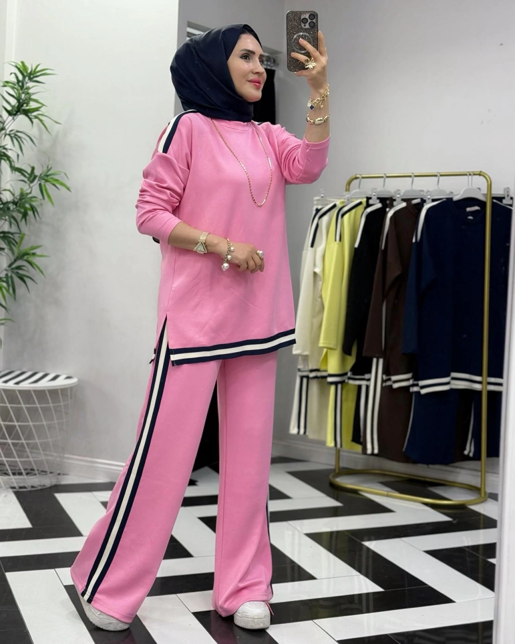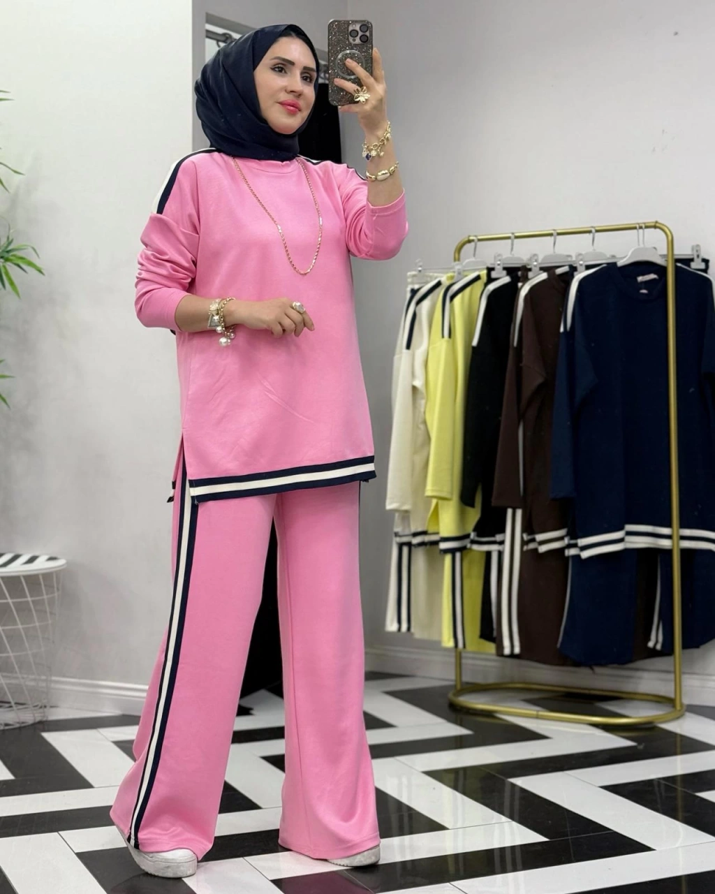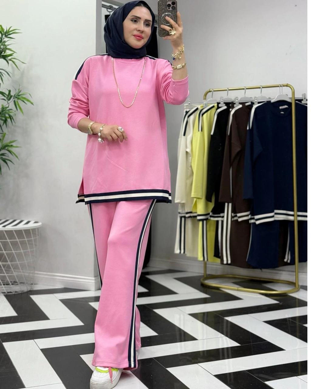 Yılan Desen Scuba Tunik & Pamuk Saten Pantolon Takım
