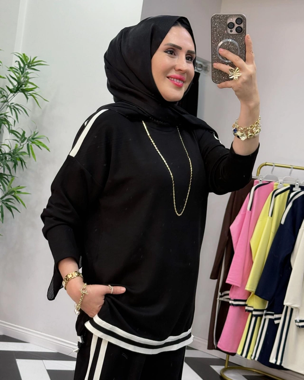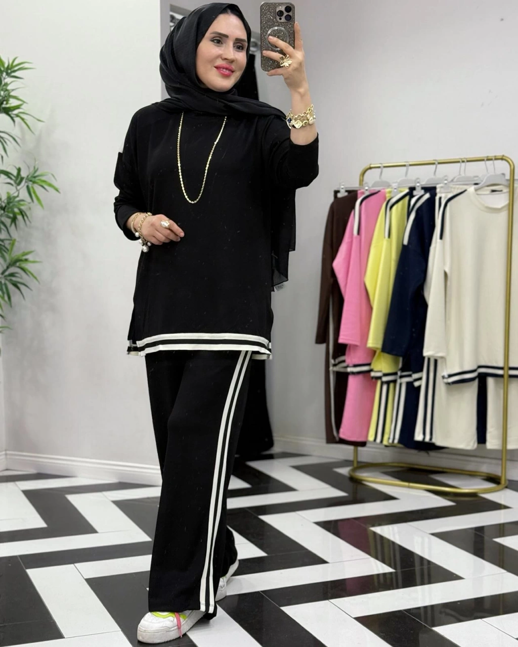 Yılan Desen Scuba Tunik & Pamuk Saten Pantolon Takım