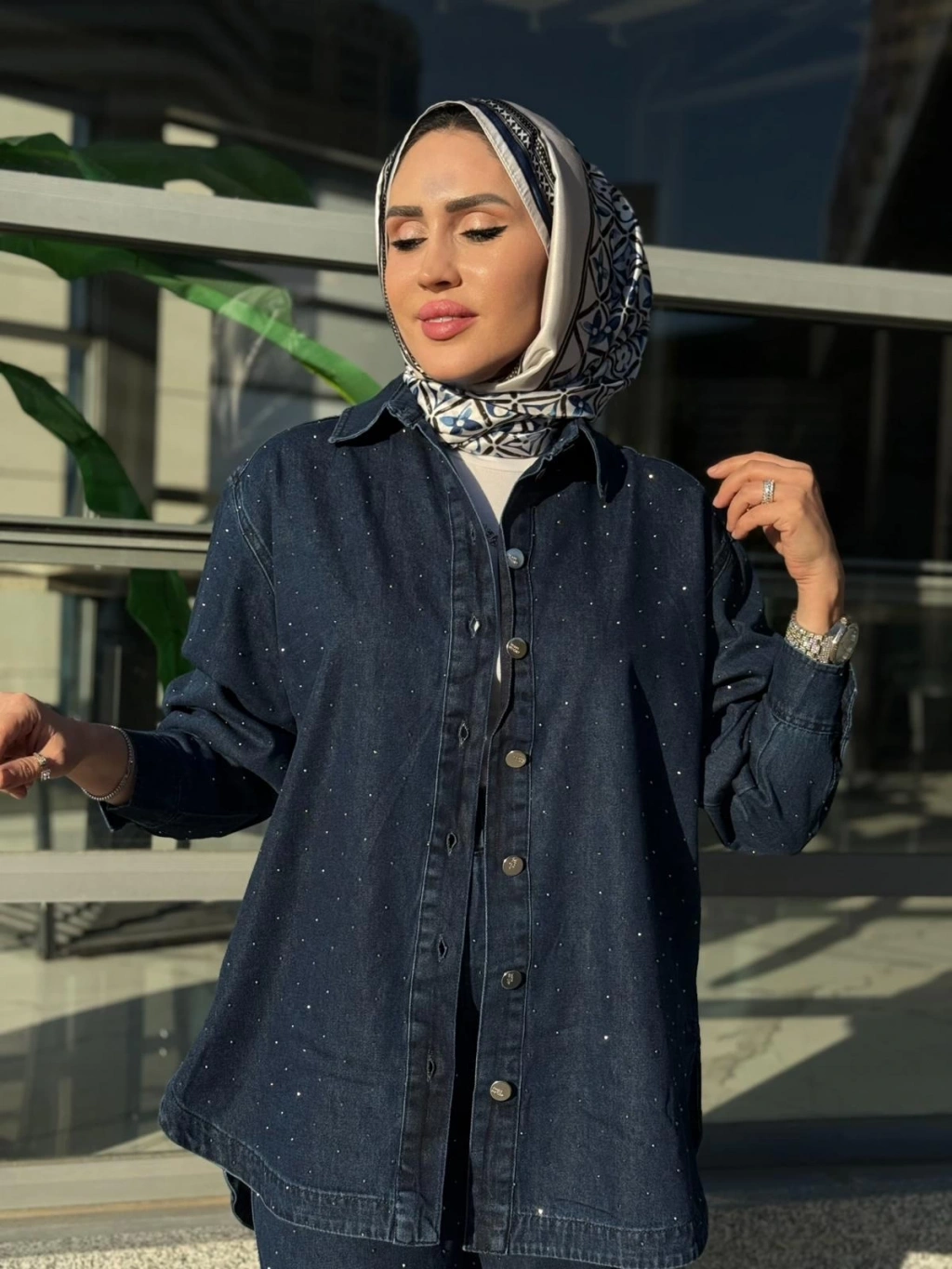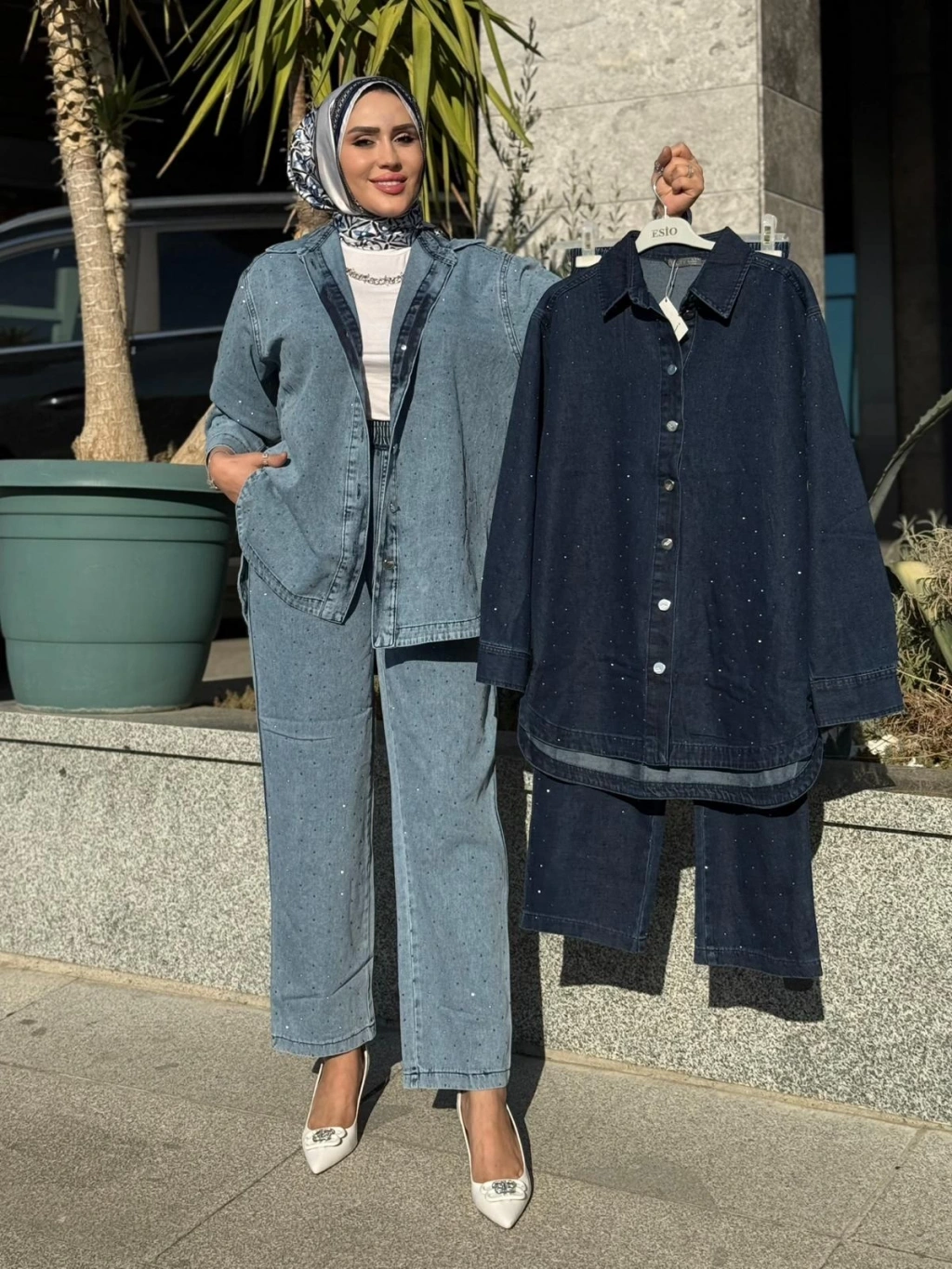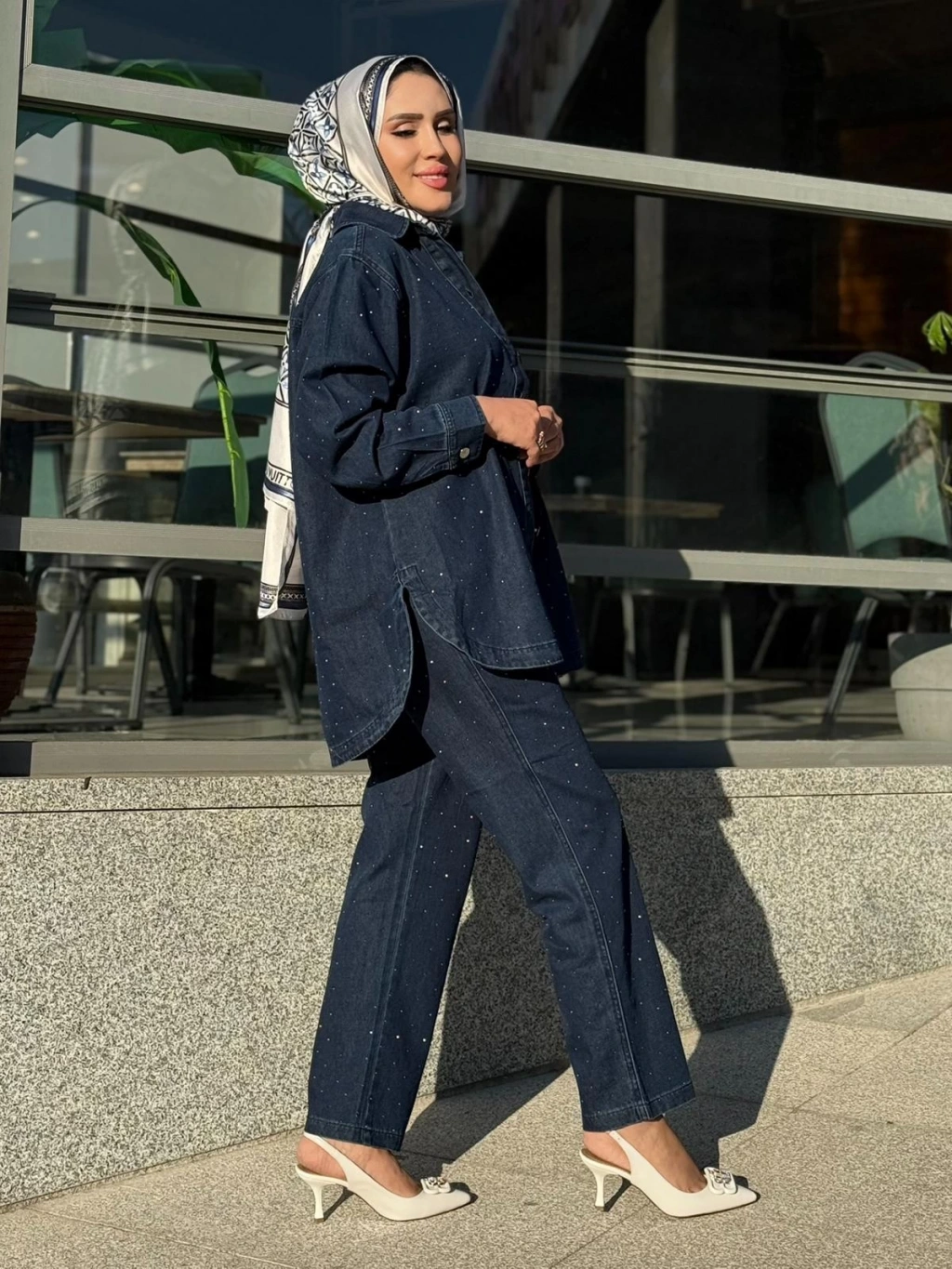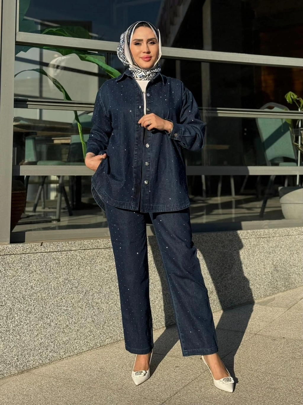 Yeni Sezon Spor Taşlı Kot Takım Koyu Renk