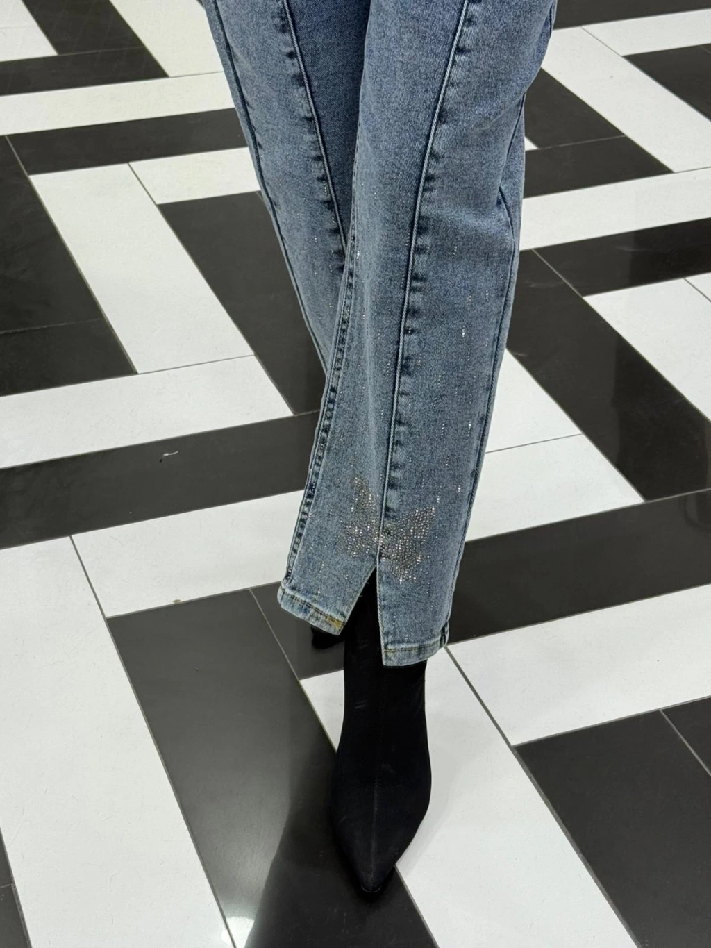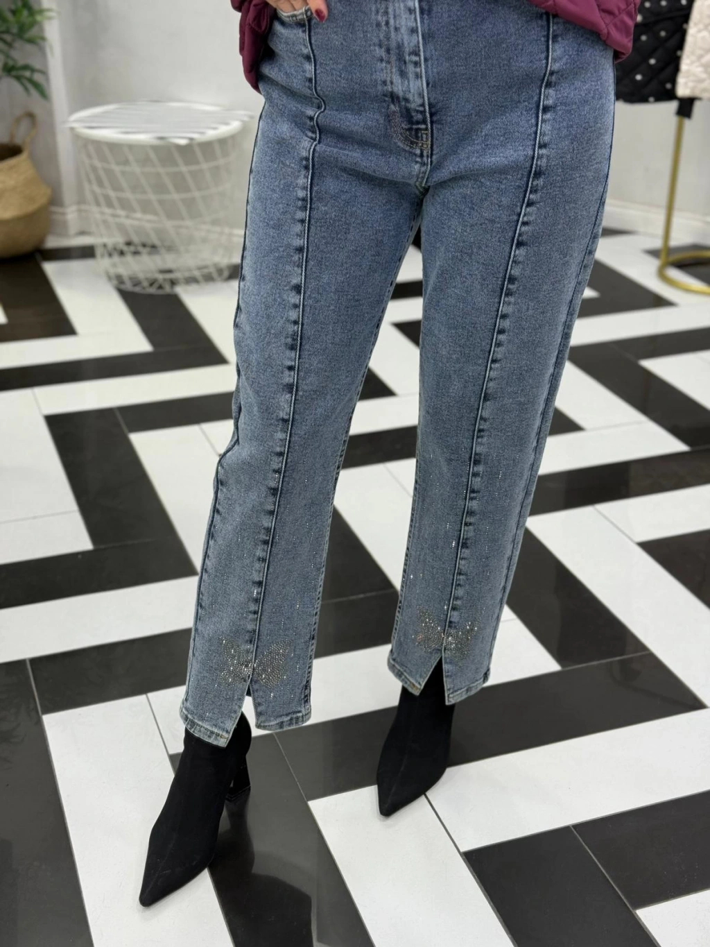 Beli lastikli rahat kalıp tasarım Paça kısmında zarif taş süsleme detaylı Esnek yapısı sayesinde konforlu kullanım Günlük ve şık kombinler için ideal