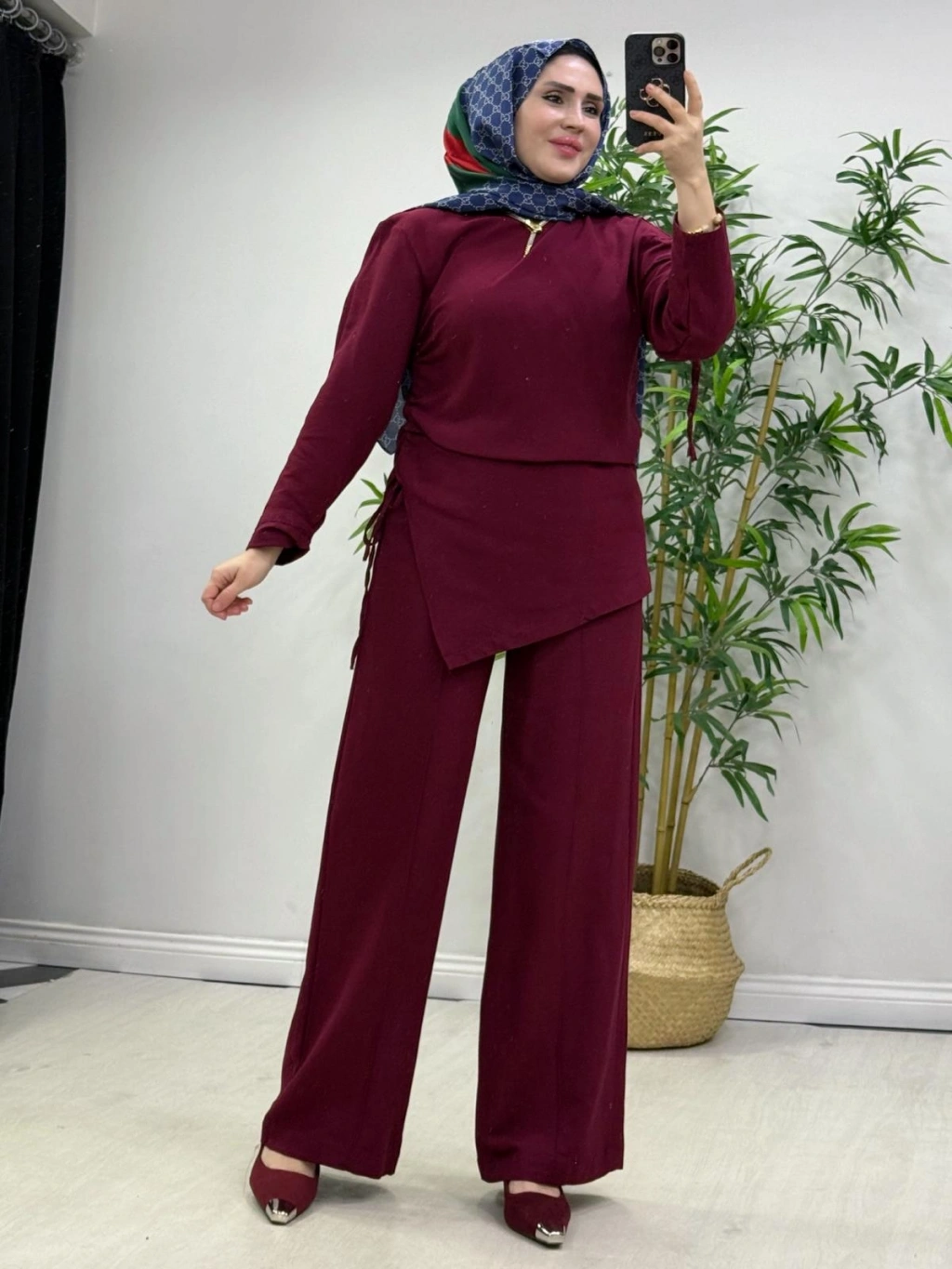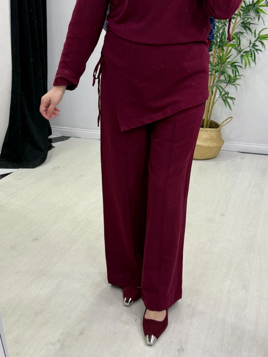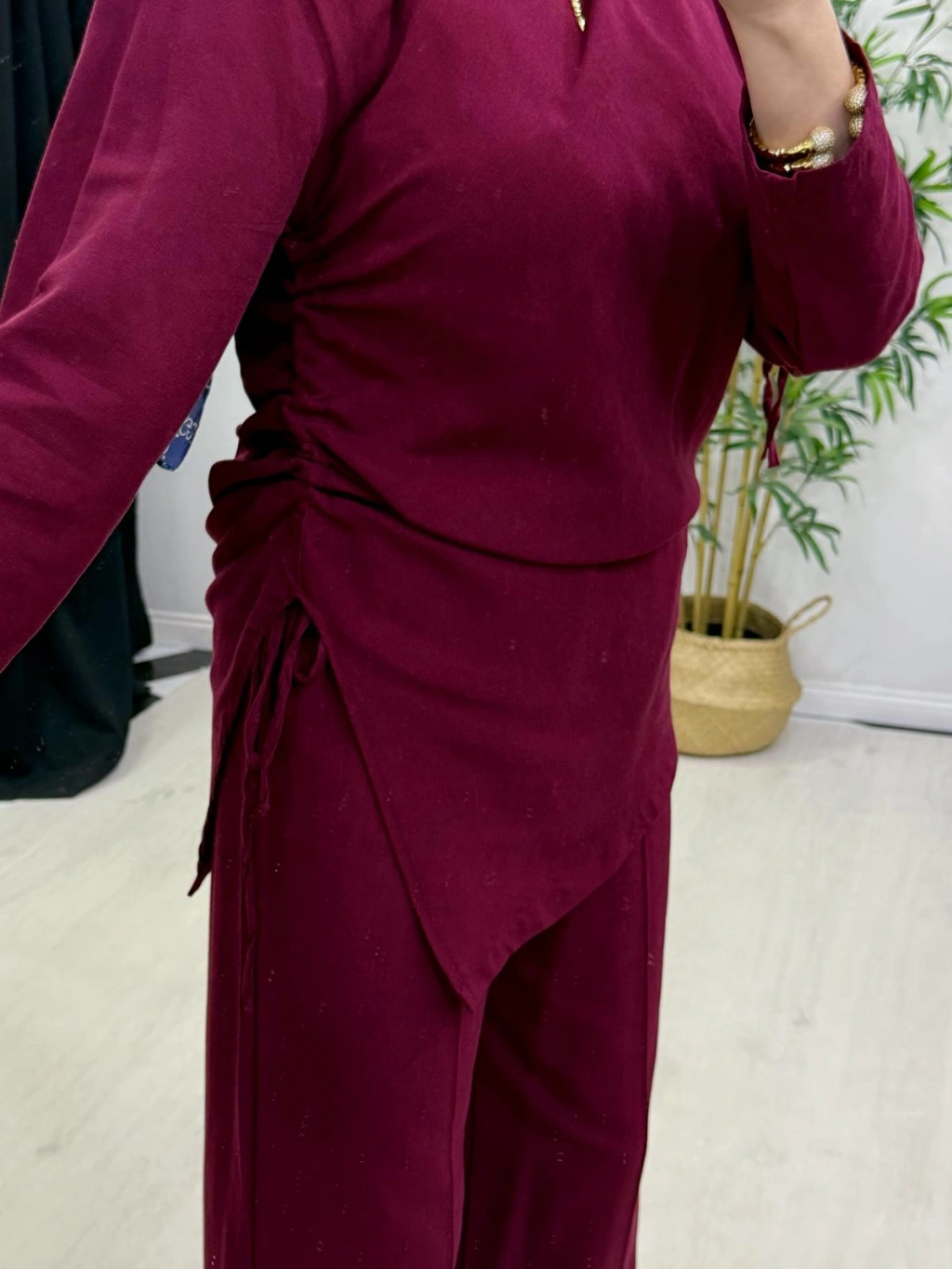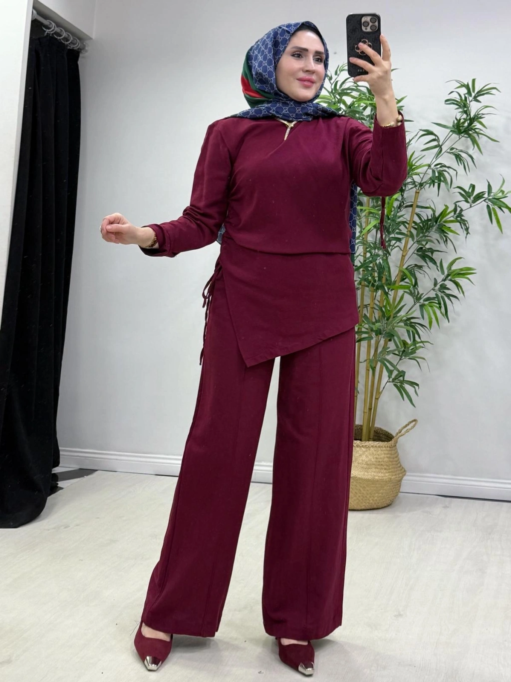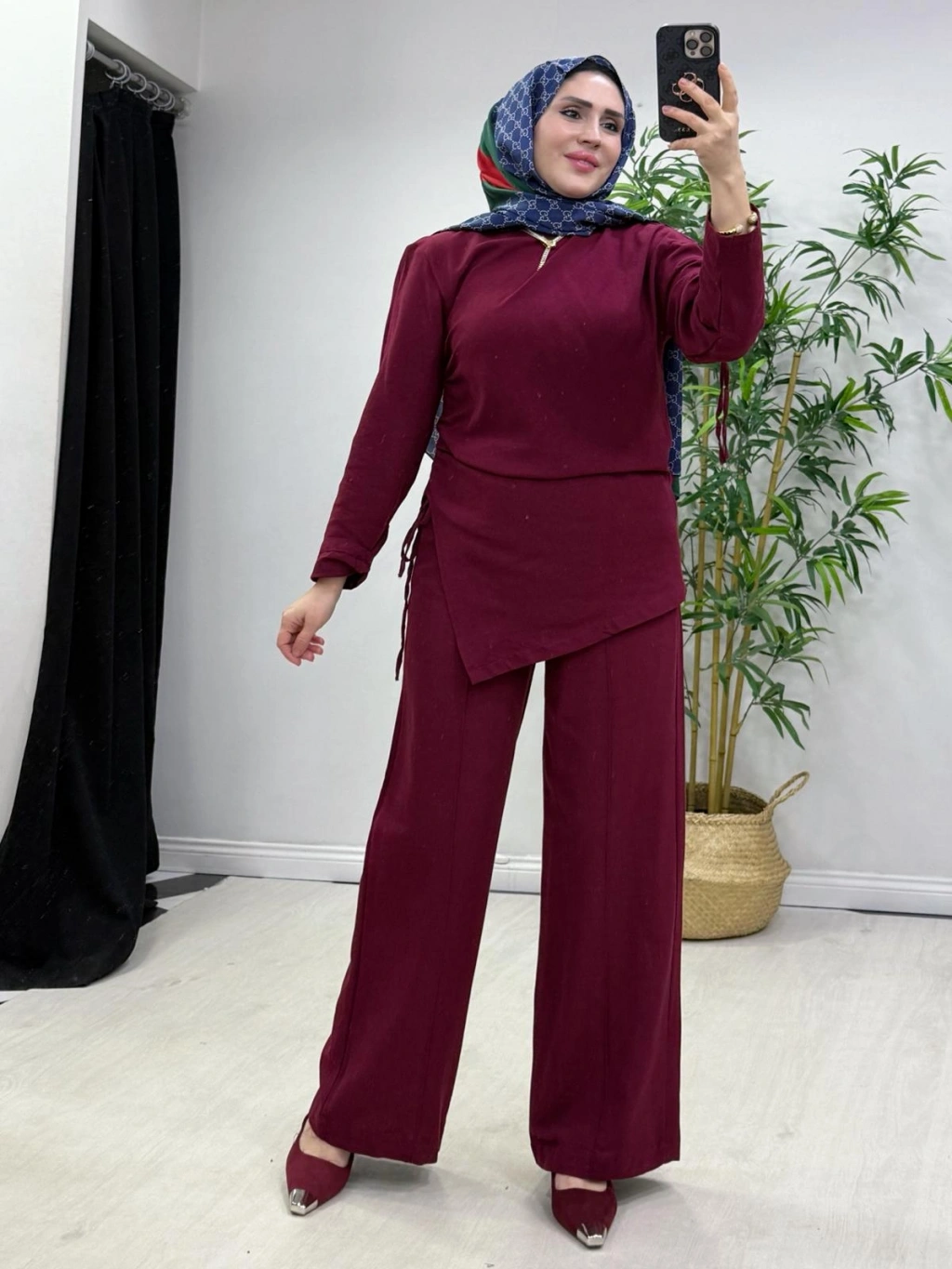 Yeni Sezon Tasarım Model Ham Keten Pamuklu Takım Bordo