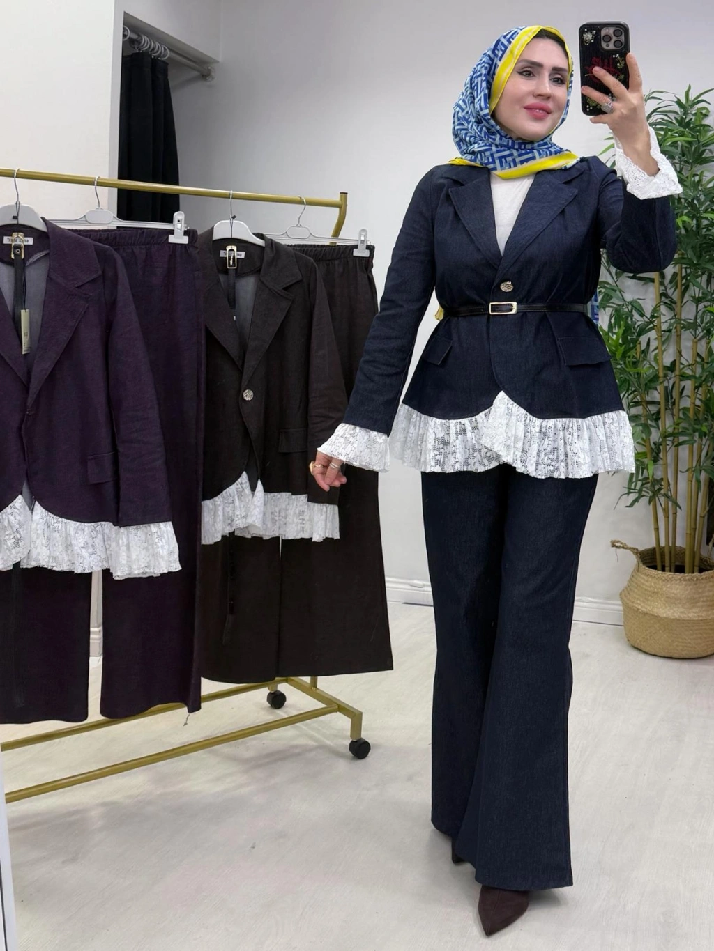 Yeni Sezon Tencel Kot Tasarım Takım Lacivert