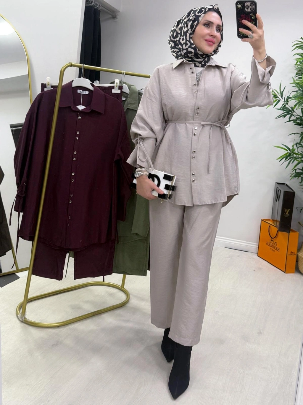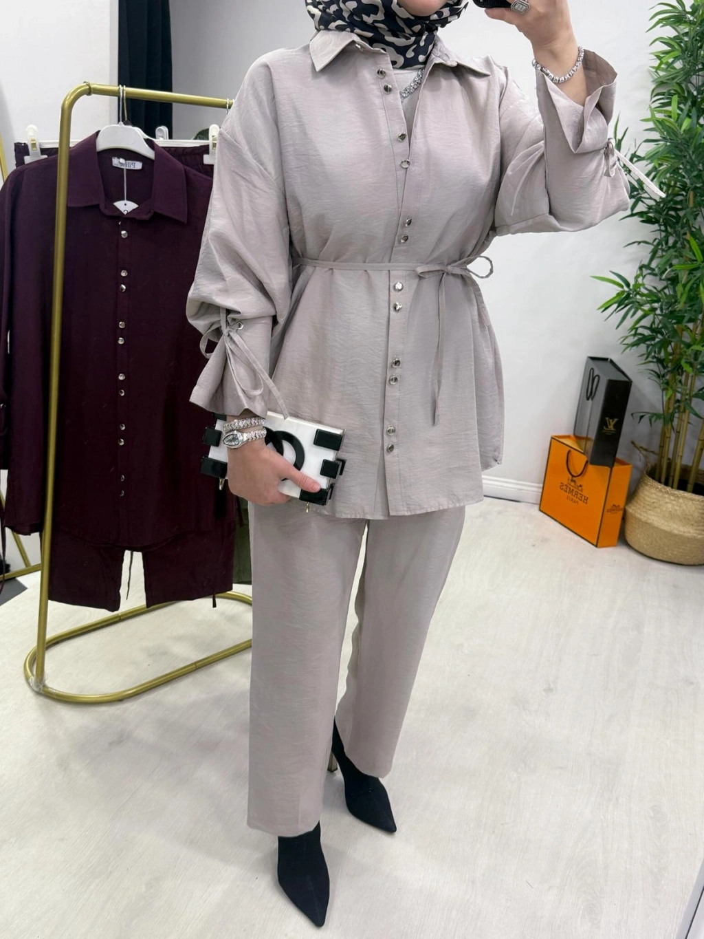Özellikler Pantolon beli lastikli rahat kesim dökümlü duruş