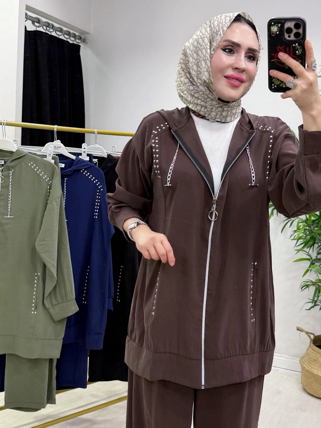 Kurdele Detaylı Modal Takım Haki Yeşil