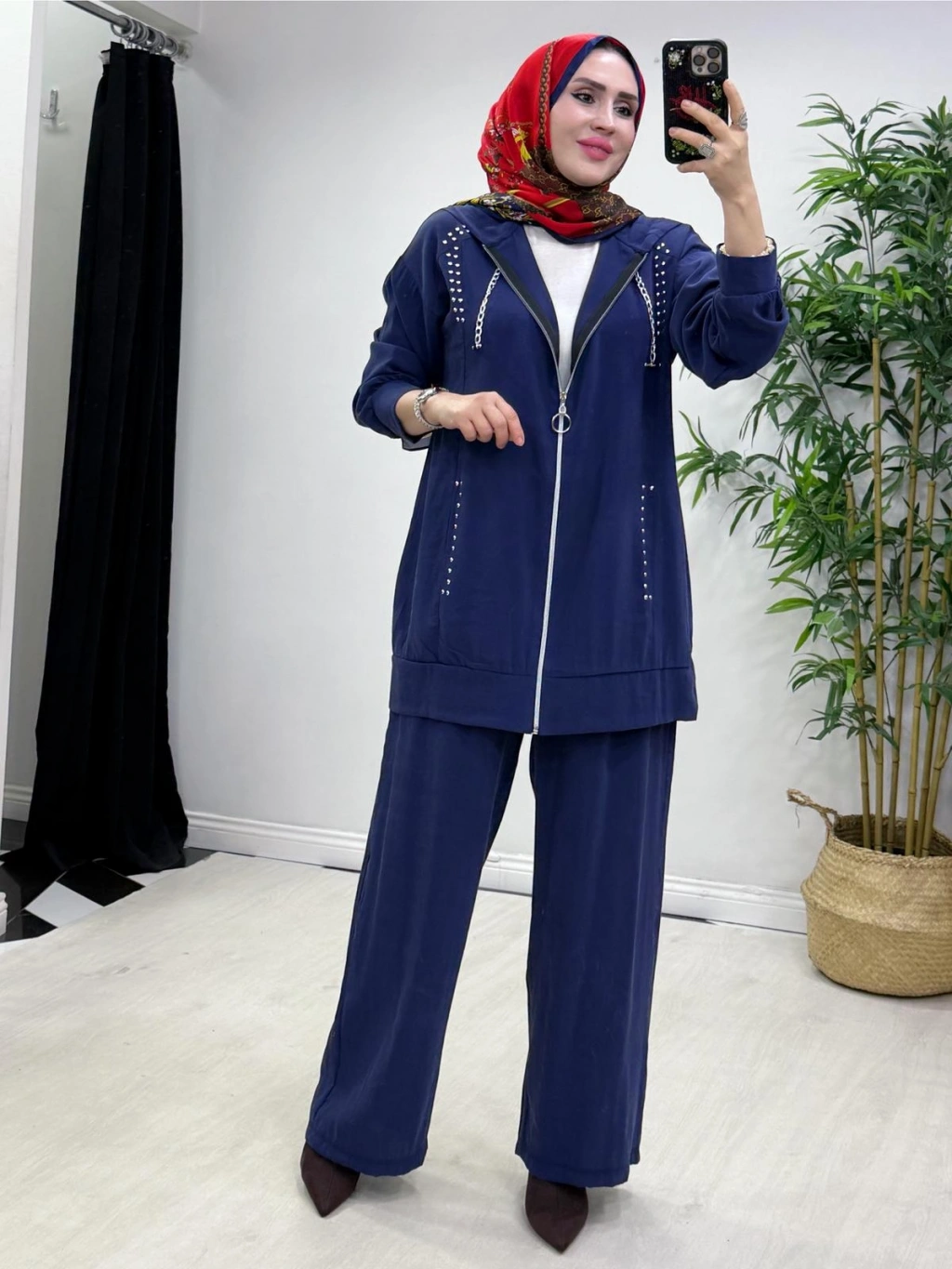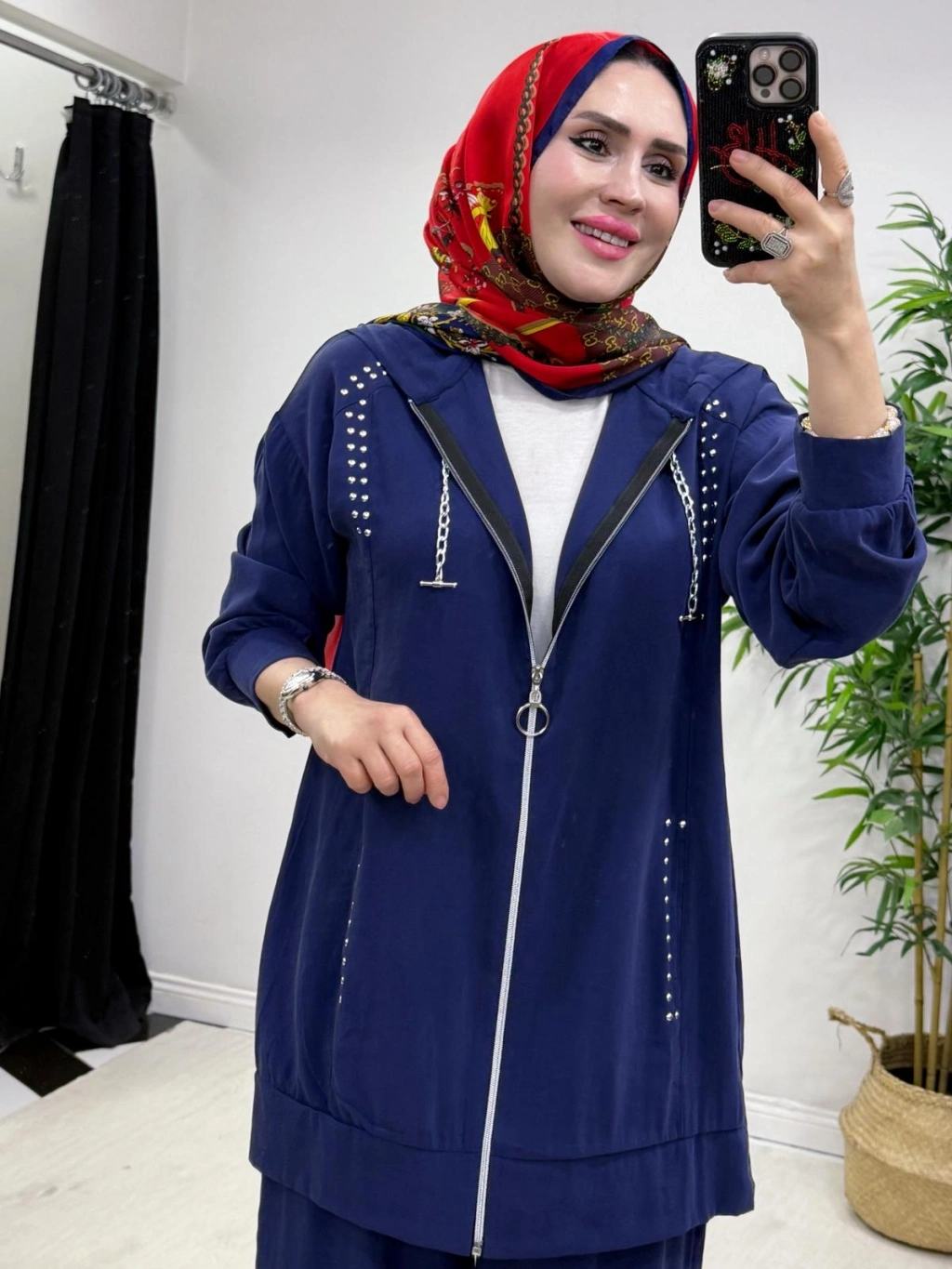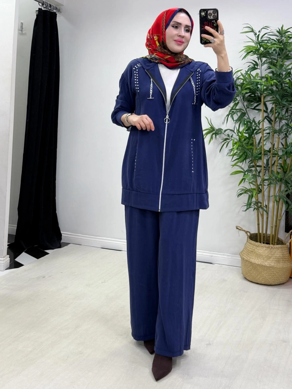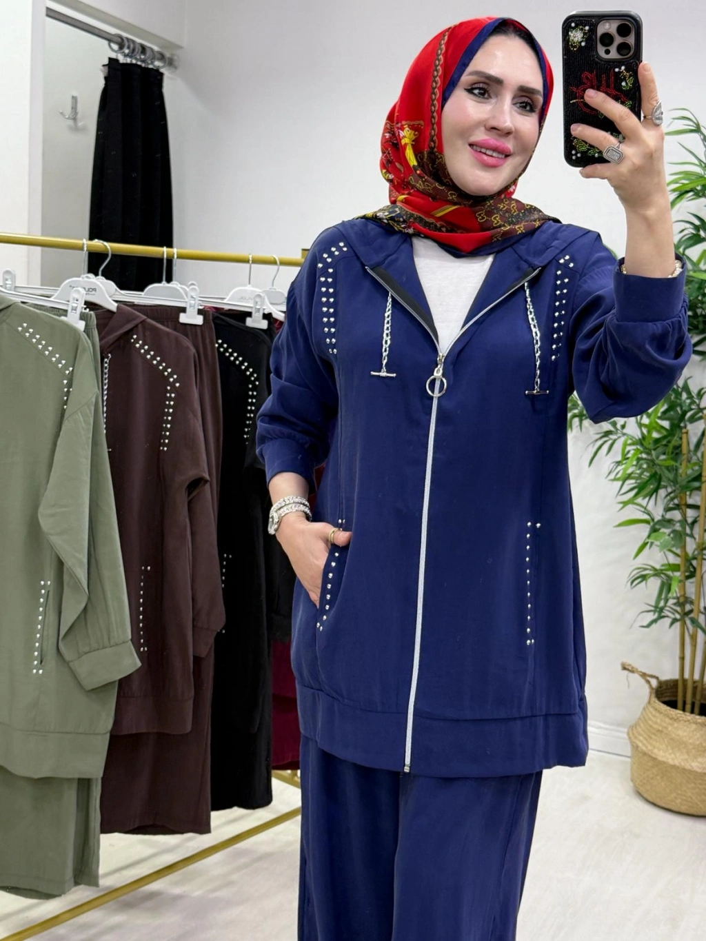 Kurdele Detaylı Modal Takım Haki Yeşil