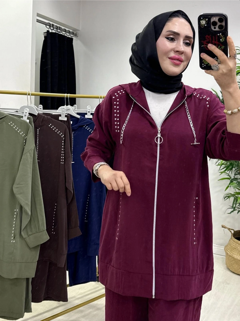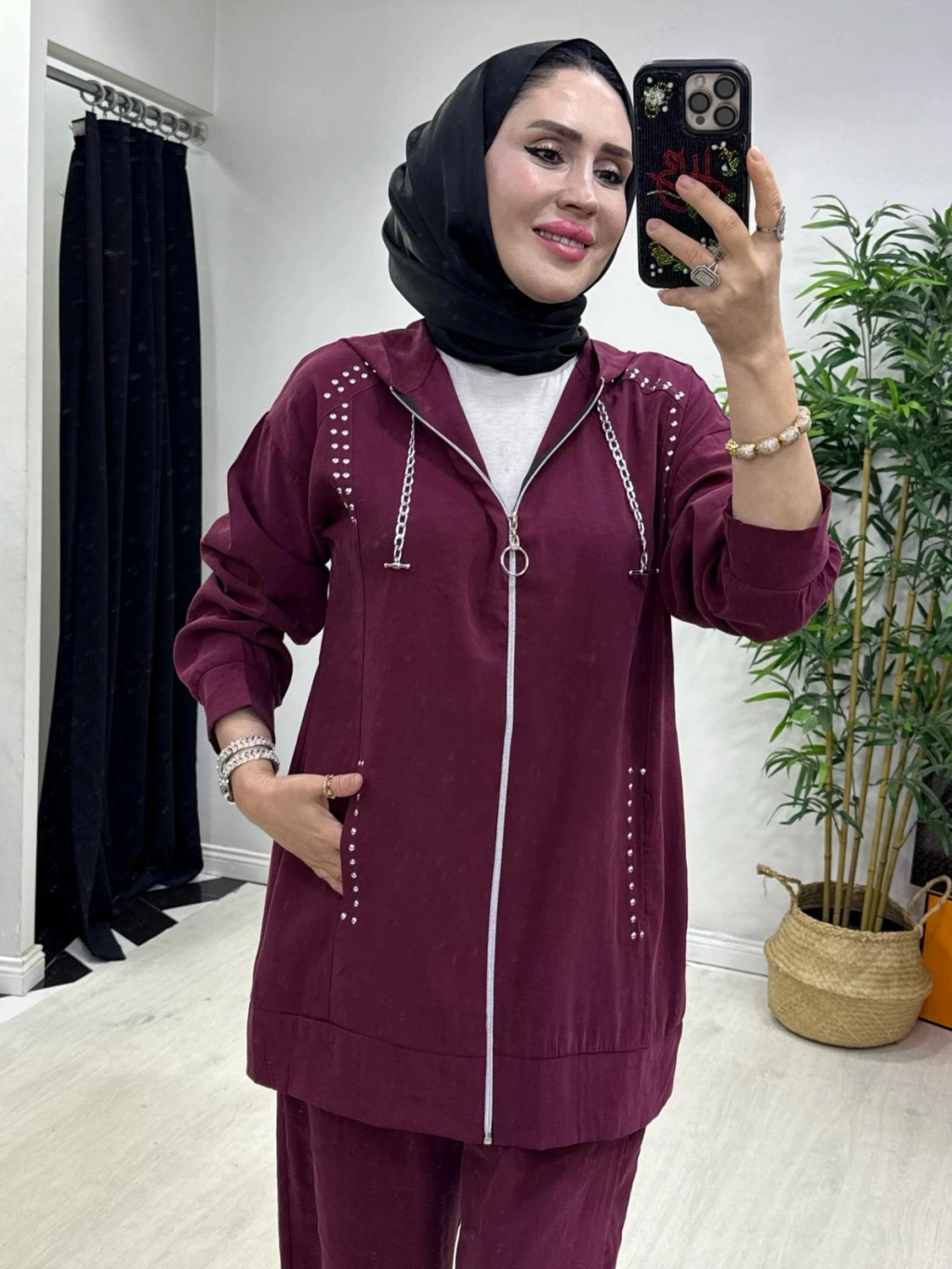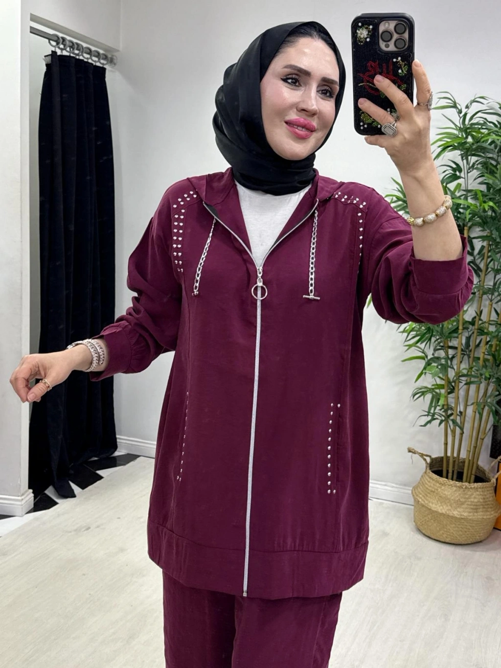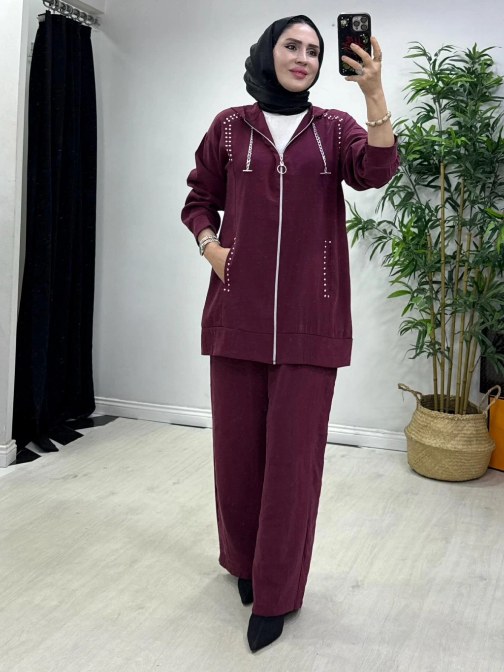 Zımba Detaylı Takım Mürdüm